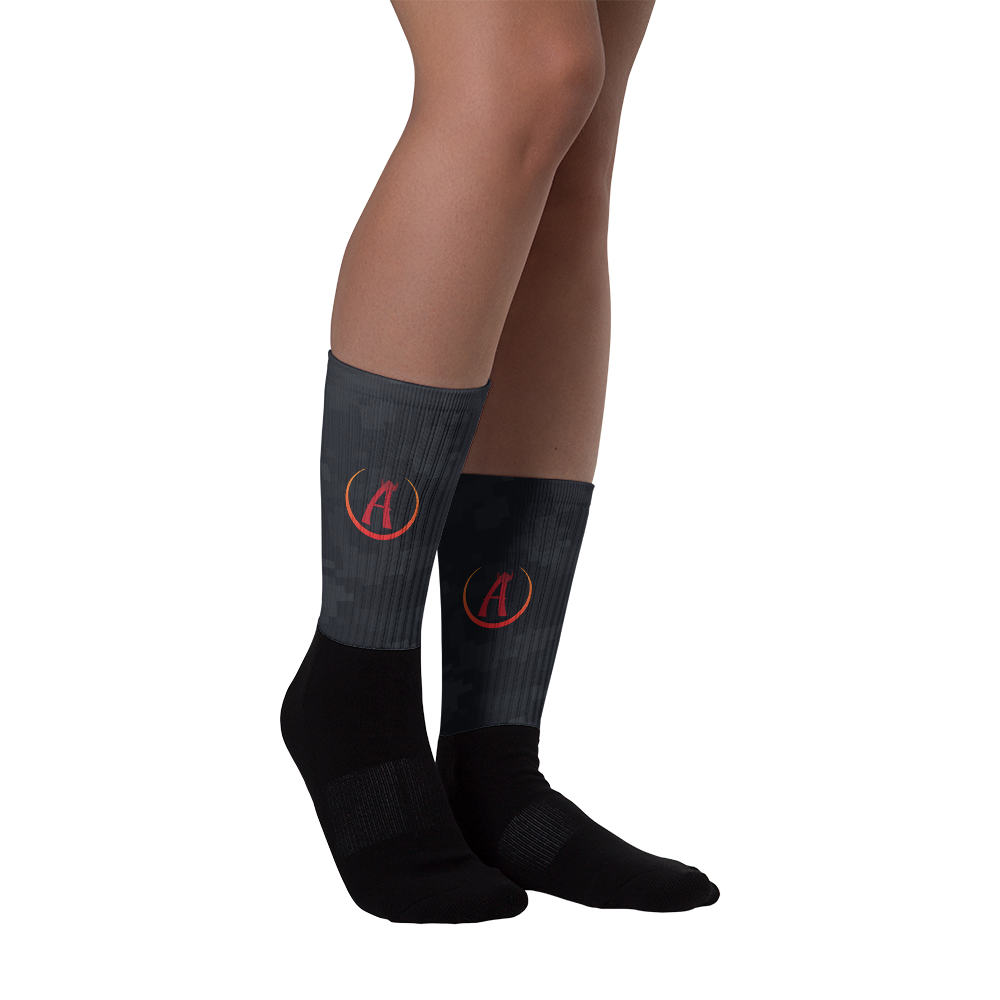 These socks are extra comfortable thanks to their cushioned bottom. The foot is black with artwork printed along the leg with crisp, bold colors that won't fade.