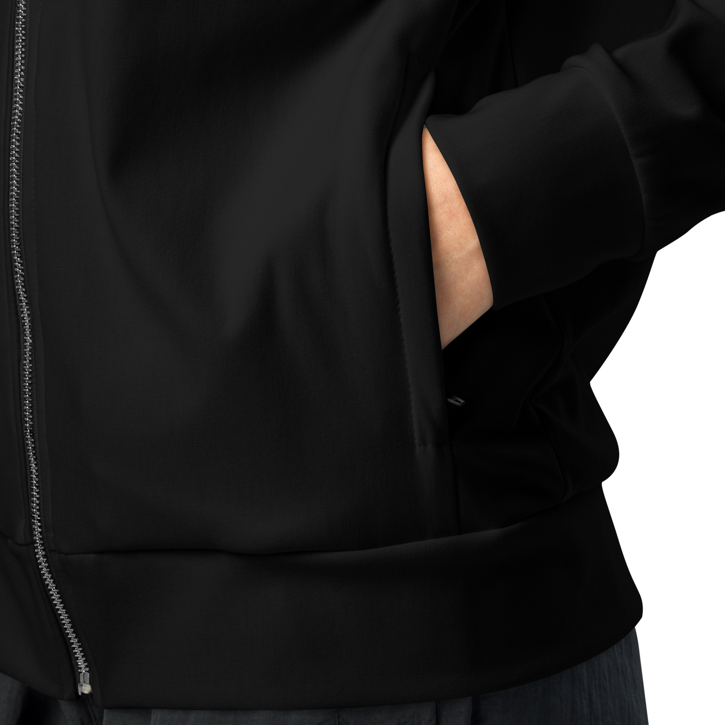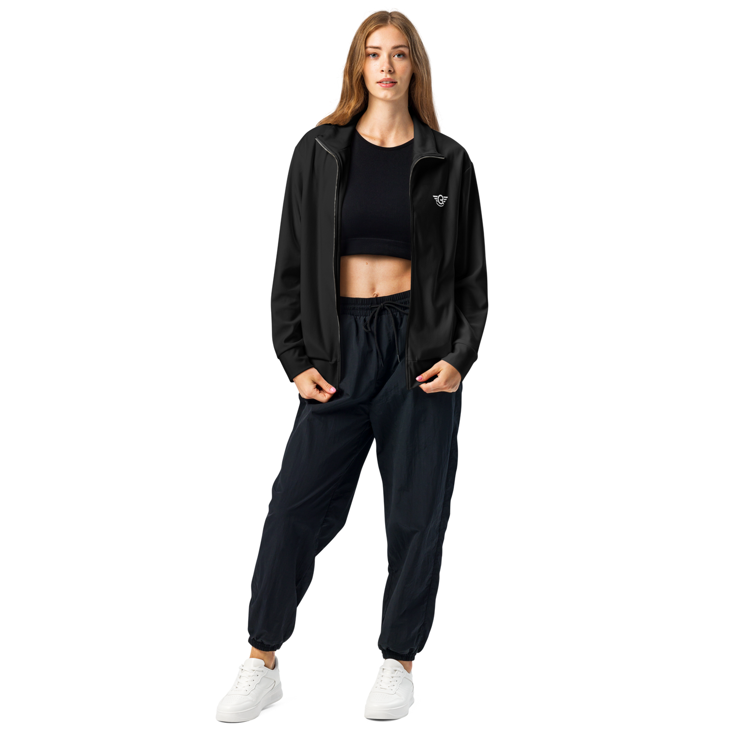 Stay warm and trendy with this zip-up track jacket—perfect for workouts, outdoor activities, and everyday wear. It’s made from recycled materials, has brushed fleece inside for warmth, and zippered pockets.