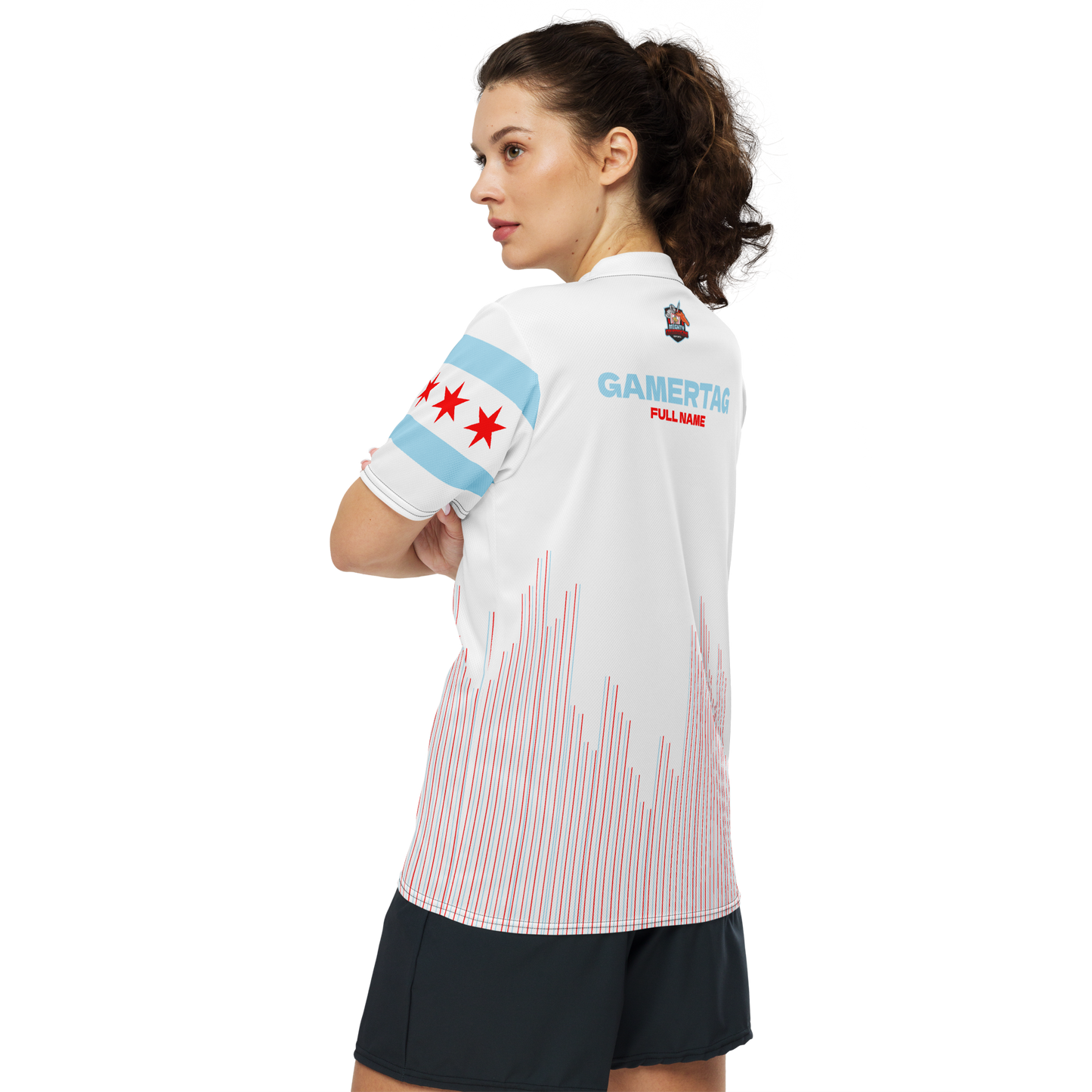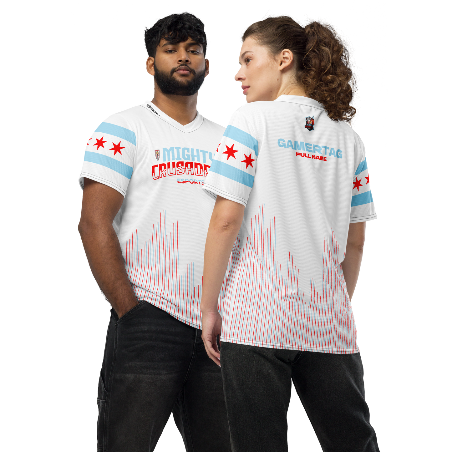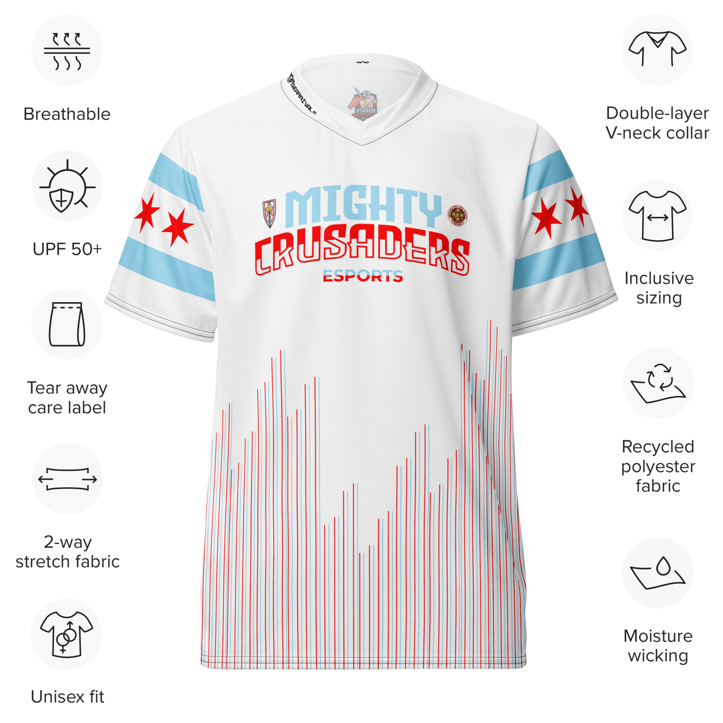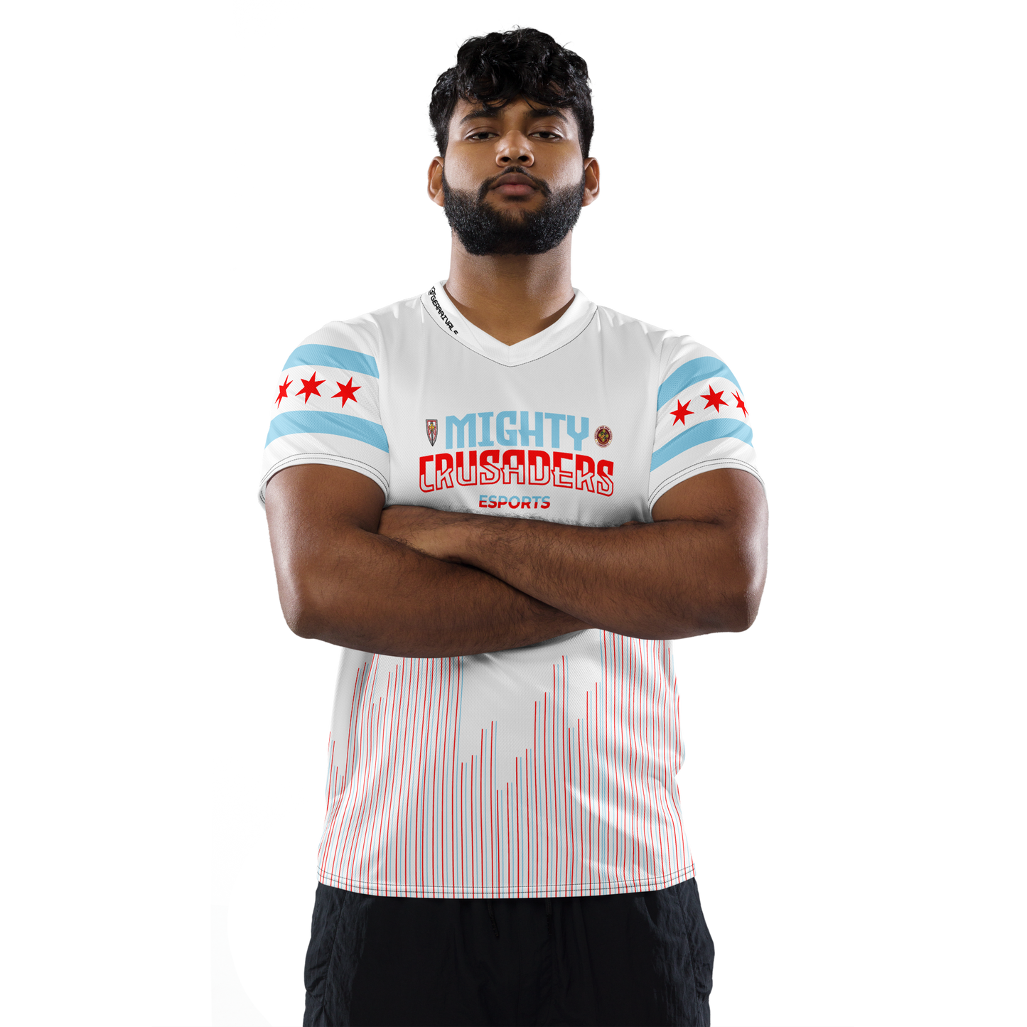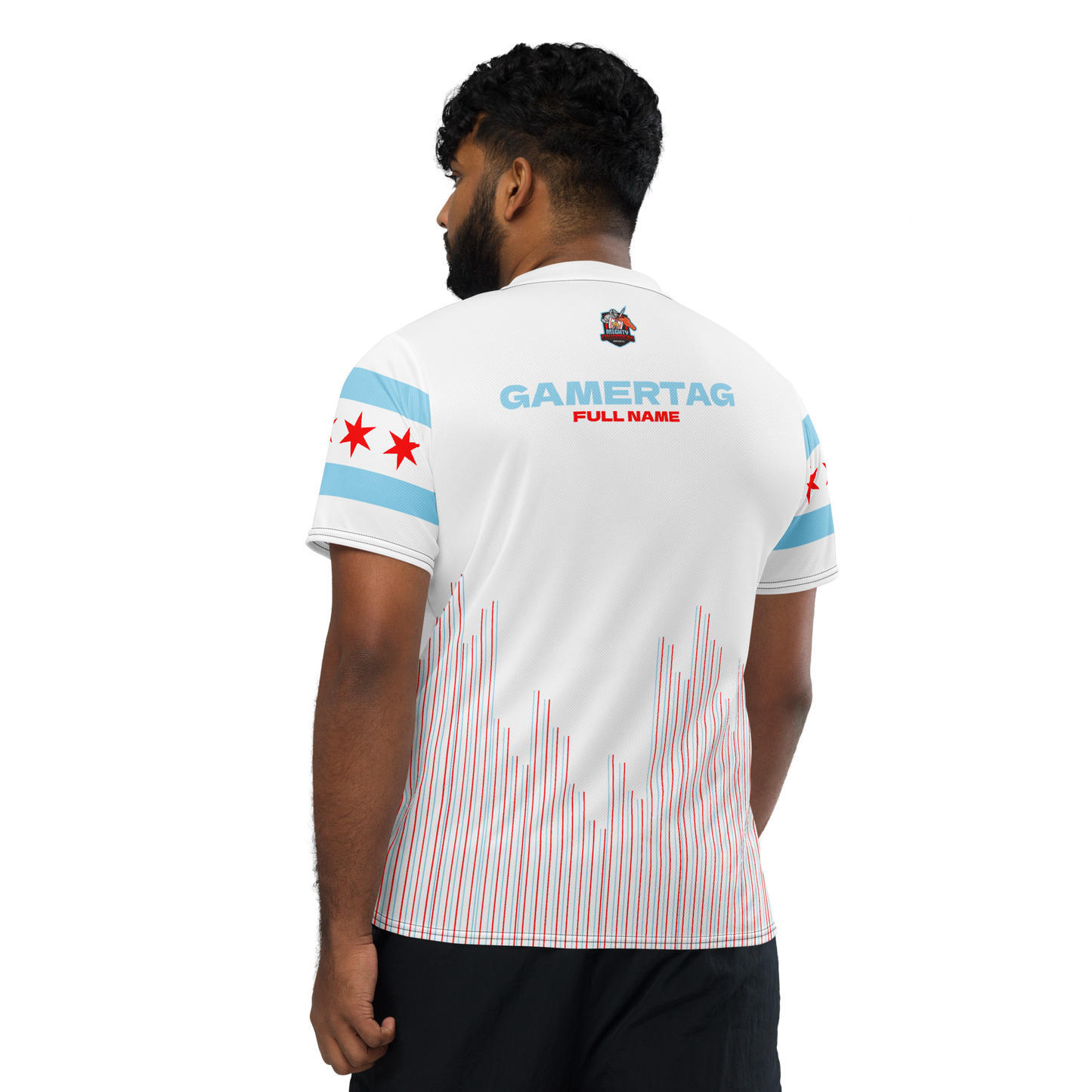 Looking for the perfect sports jersey? We have you covered—made of 100% recycled polyester fabric, this shirt is breathable, moisture-wicking, and has a double-layered v-neck collar that creates a premium look.