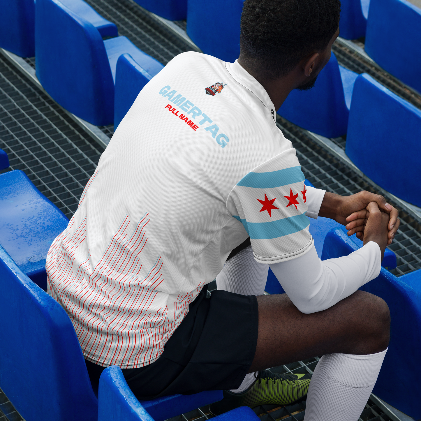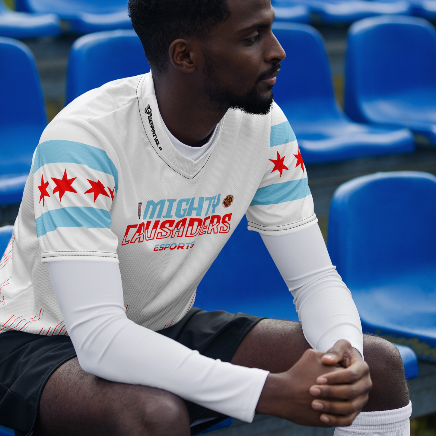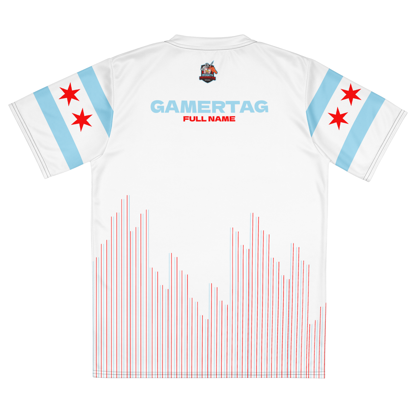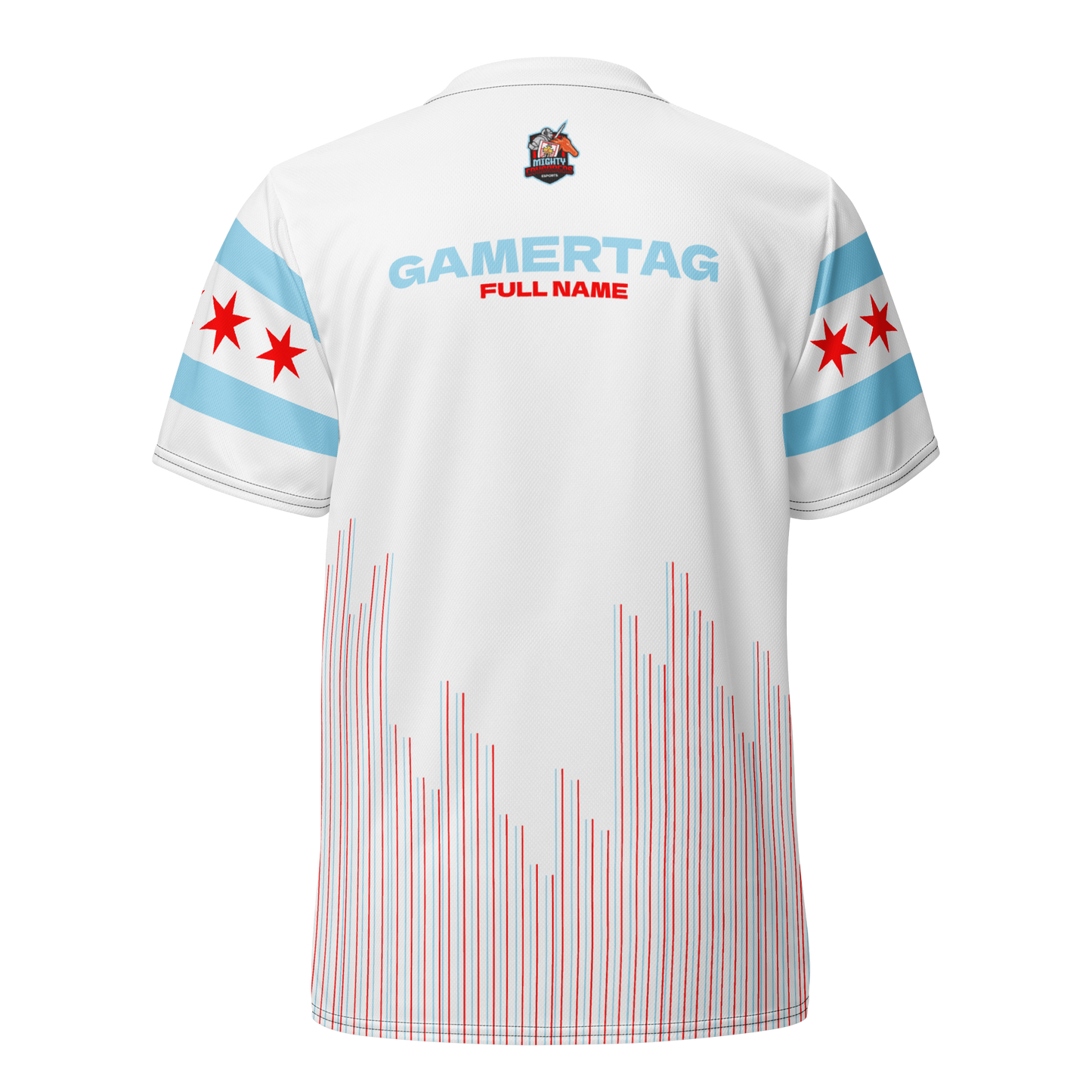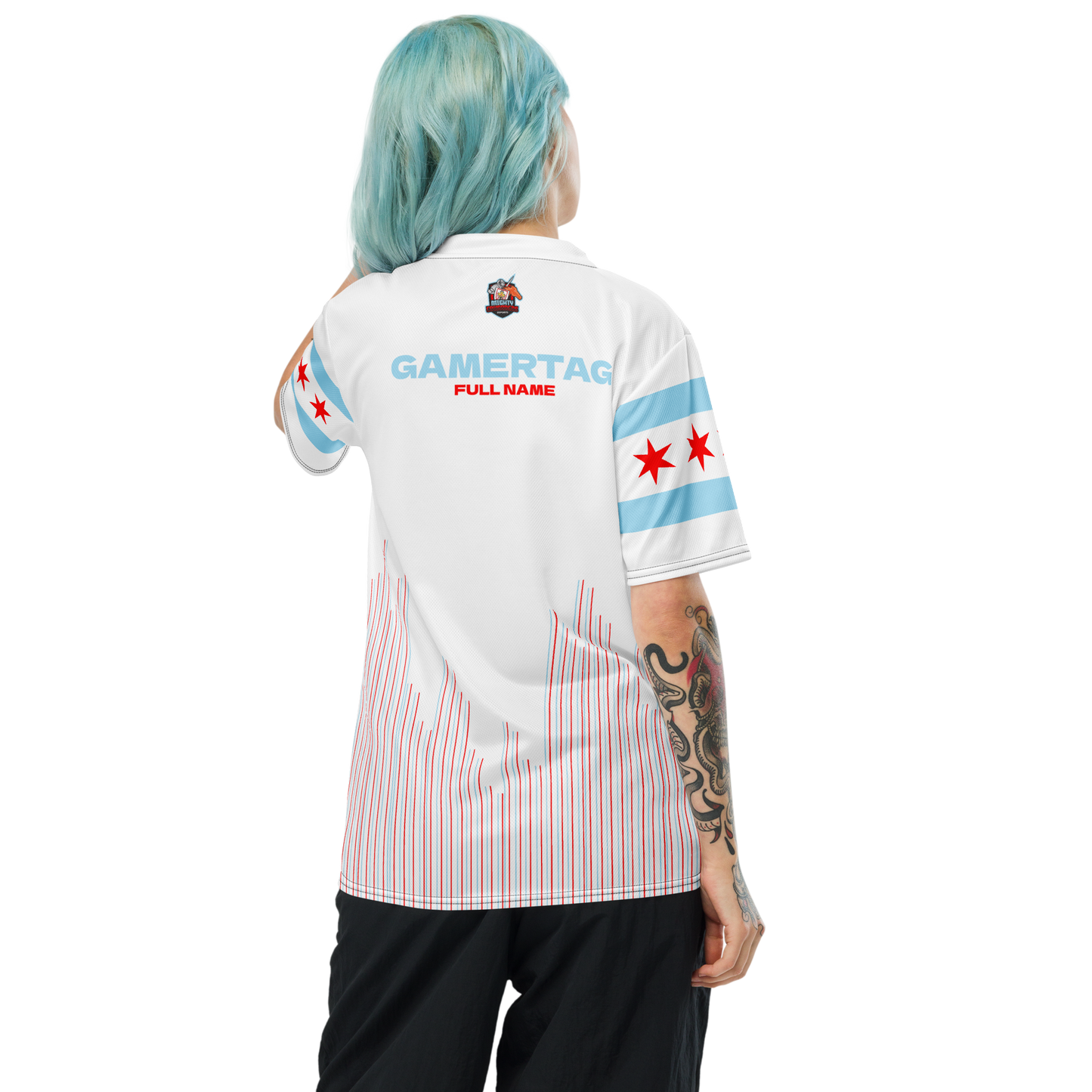 Looking for the perfect sports jersey? We have you covered—made of 100% recycled polyester fabric, this shirt is breathable, moisture-wicking, and has a double-layered v-neck collar that creates a premium look.
