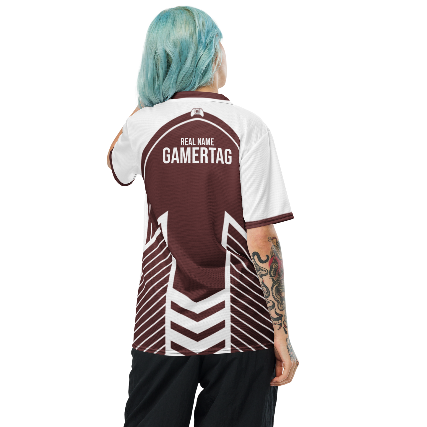 Looking for the perfect sports jersey? We have you covered—made of 100% recycled polyester fabric, this shirt is breathable, moisture-wicking, and has a double-layered v-neck collar that creates a premium look.