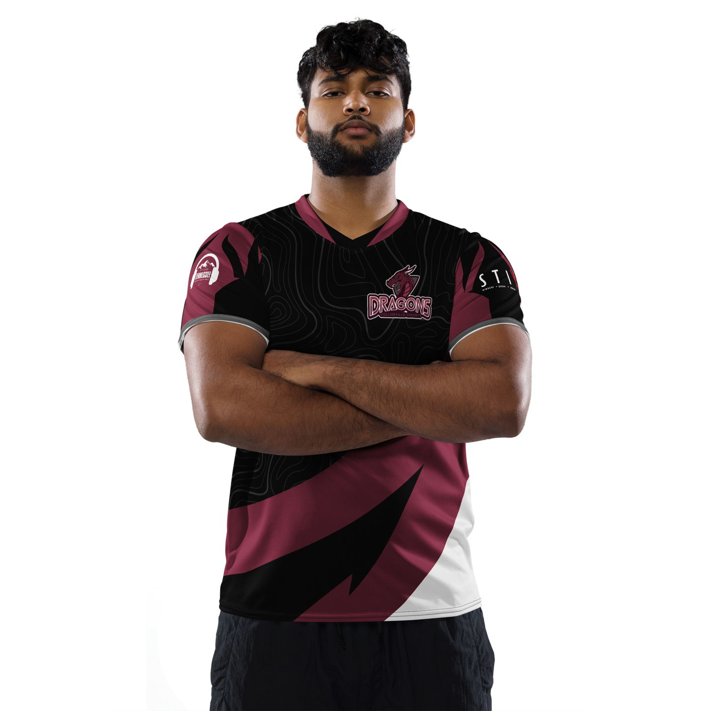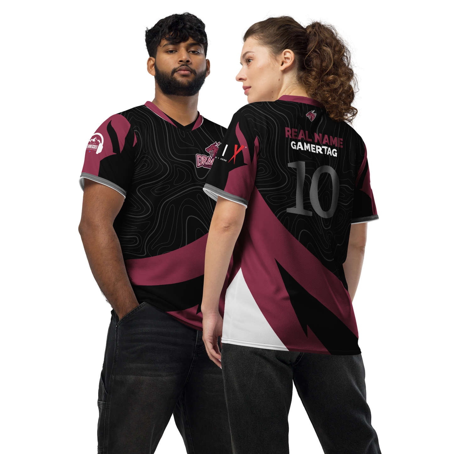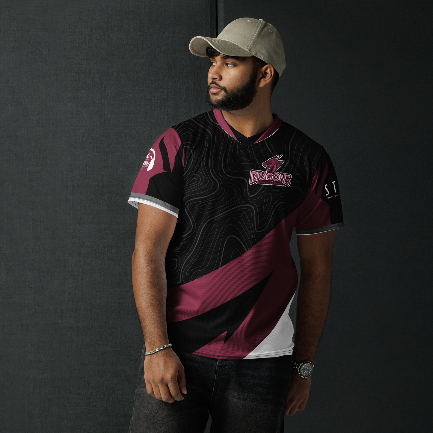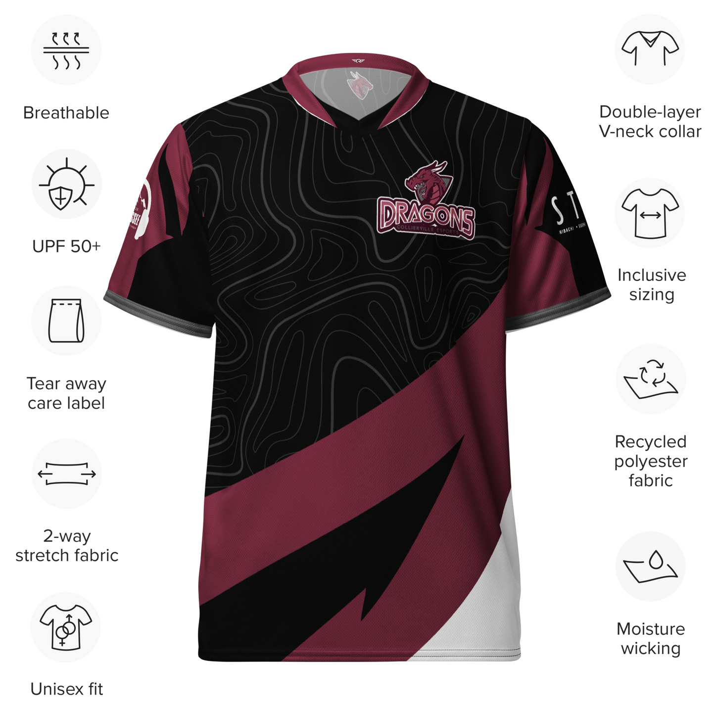 Looking for the perfect sports jersey? We have you covered—made of 100% recycled polyester fabric, this shirt is breathable, moisture-wicking, and has a double-layered v-neck collar that creates a premium look.