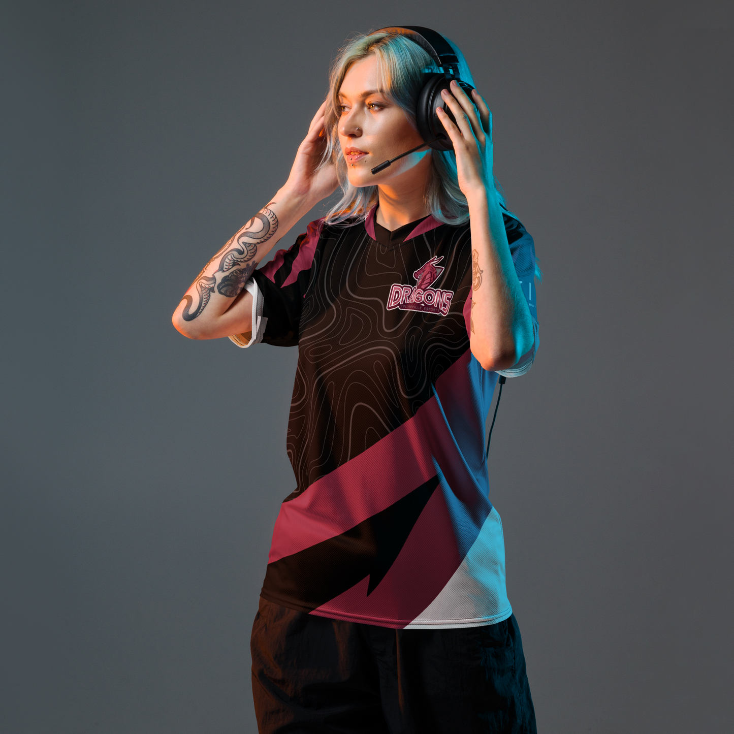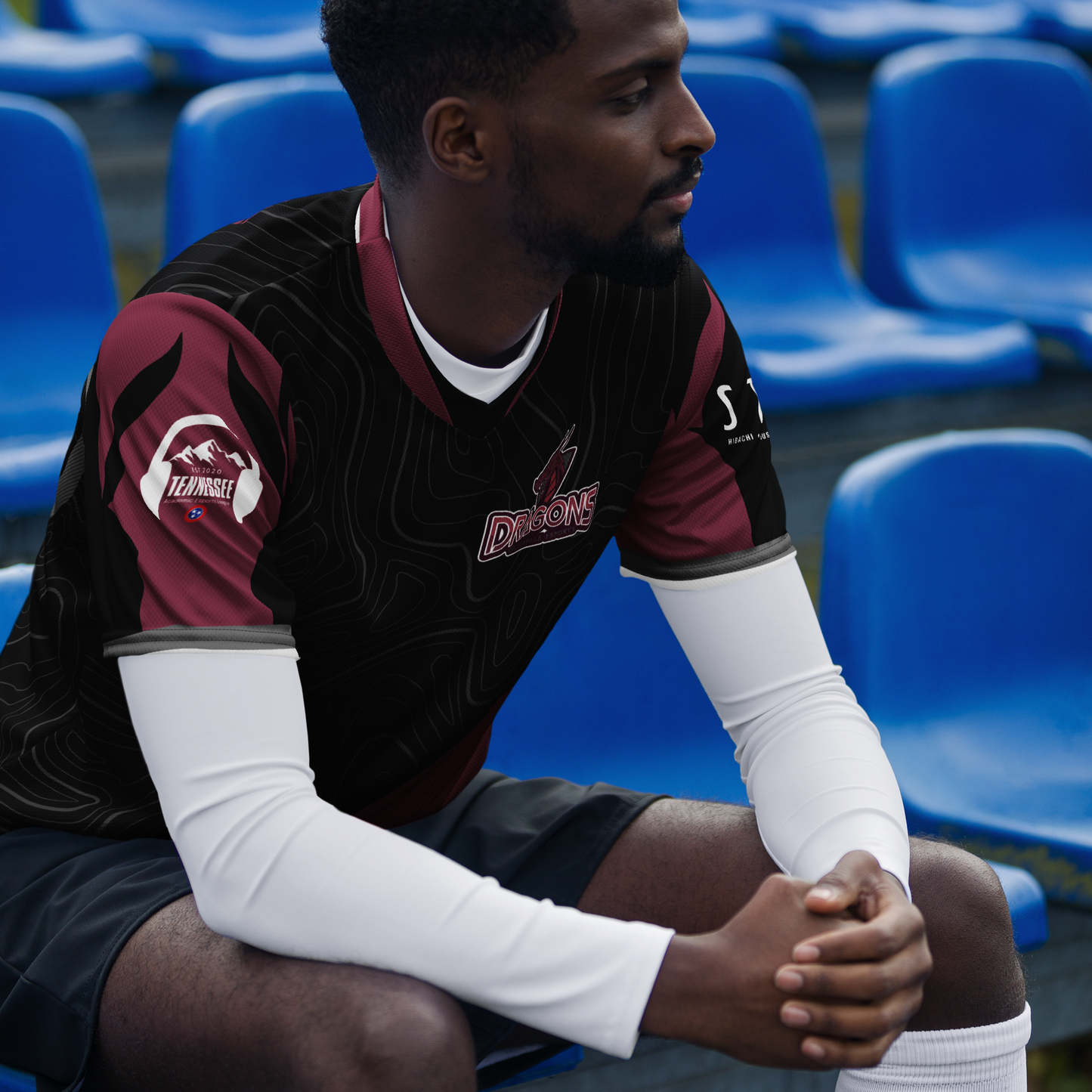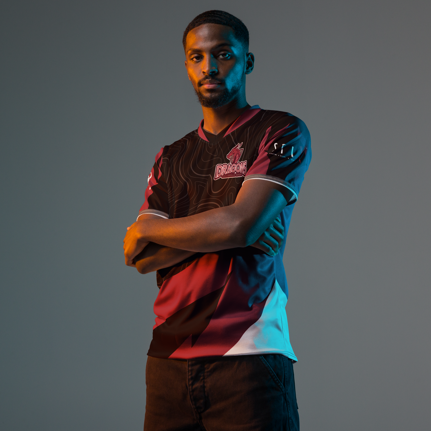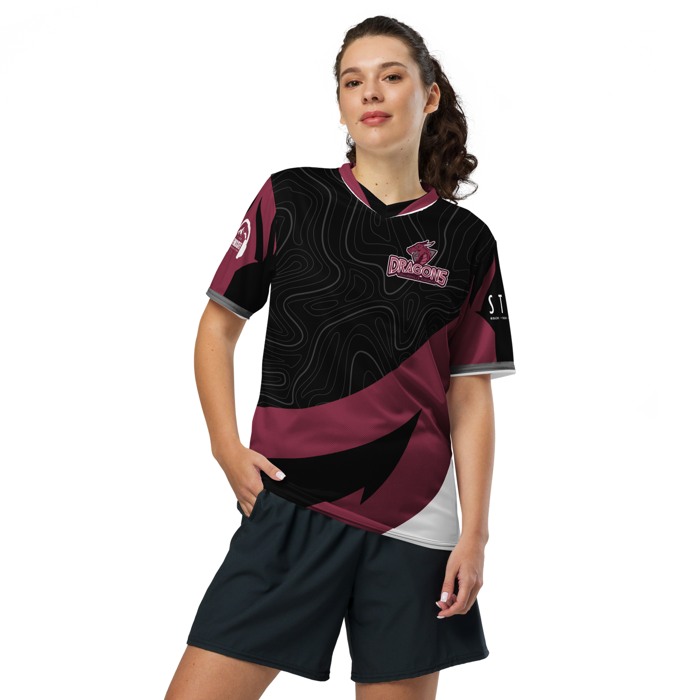 Looking for the perfect sports jersey? We have you covered—made of 100% recycled polyester fabric, this shirt is breathable, moisture-wicking, and has a double-layered v-neck collar that creates a premium look.