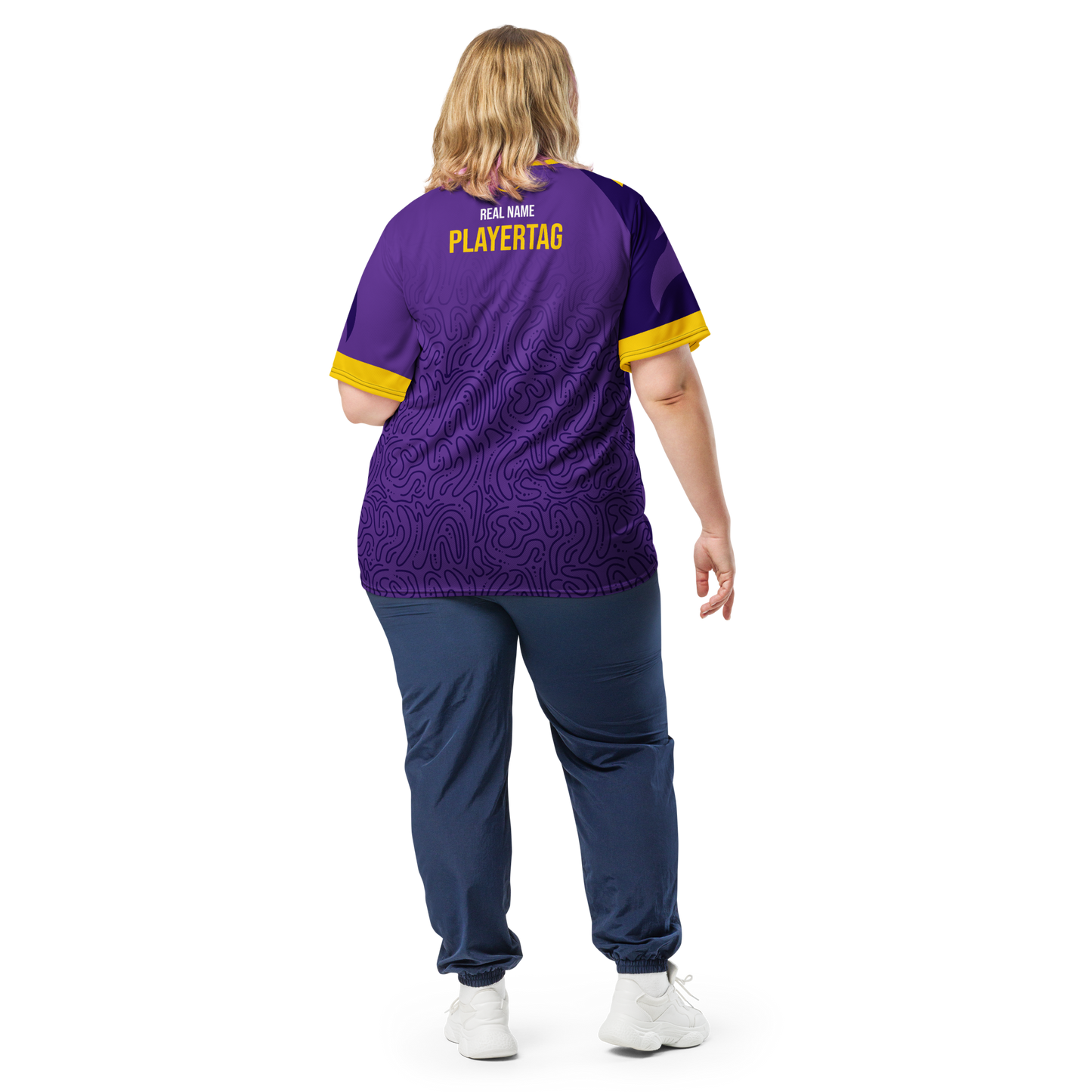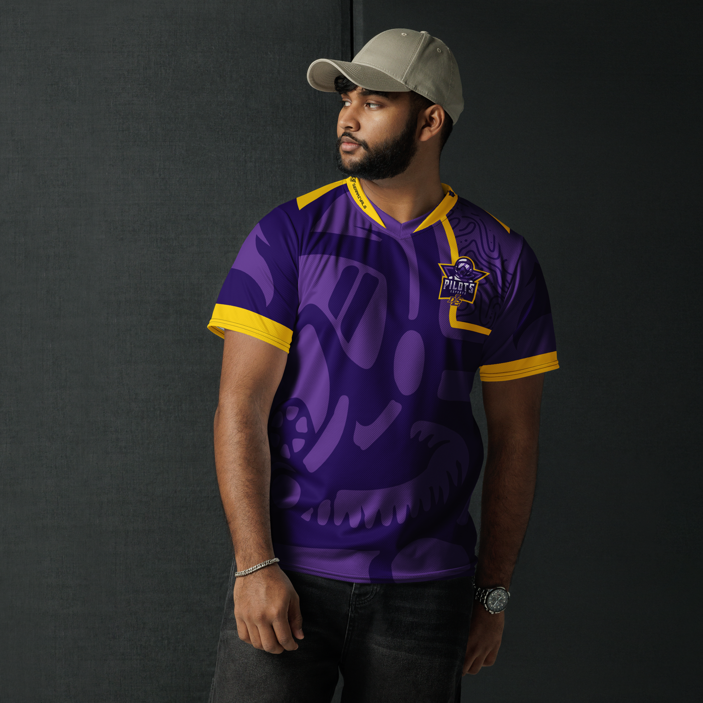 Looking for the perfect sports jersey? We have you covered—made of 100% recycled polyester fabric, this shirt is breathable, moisture-wicking, and has a double-layered v-neck collar that creates a premium look.