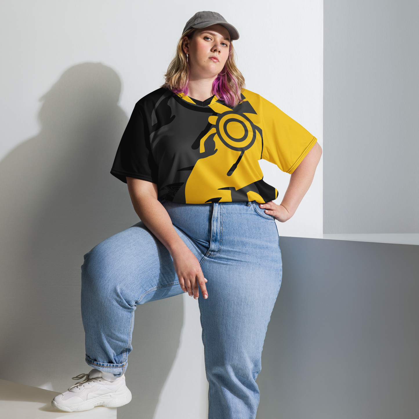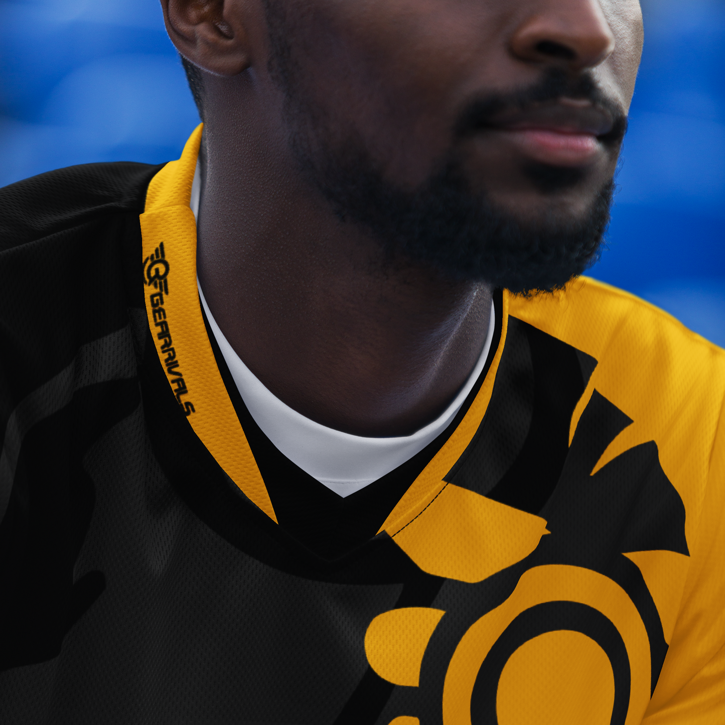 Looking for the perfect sports jersey? We have you covered—made of 100% recycled polyester fabric, this shirt is breathable, moisture-wicking, and has a double-layered v-neck collar that creates a premium look.