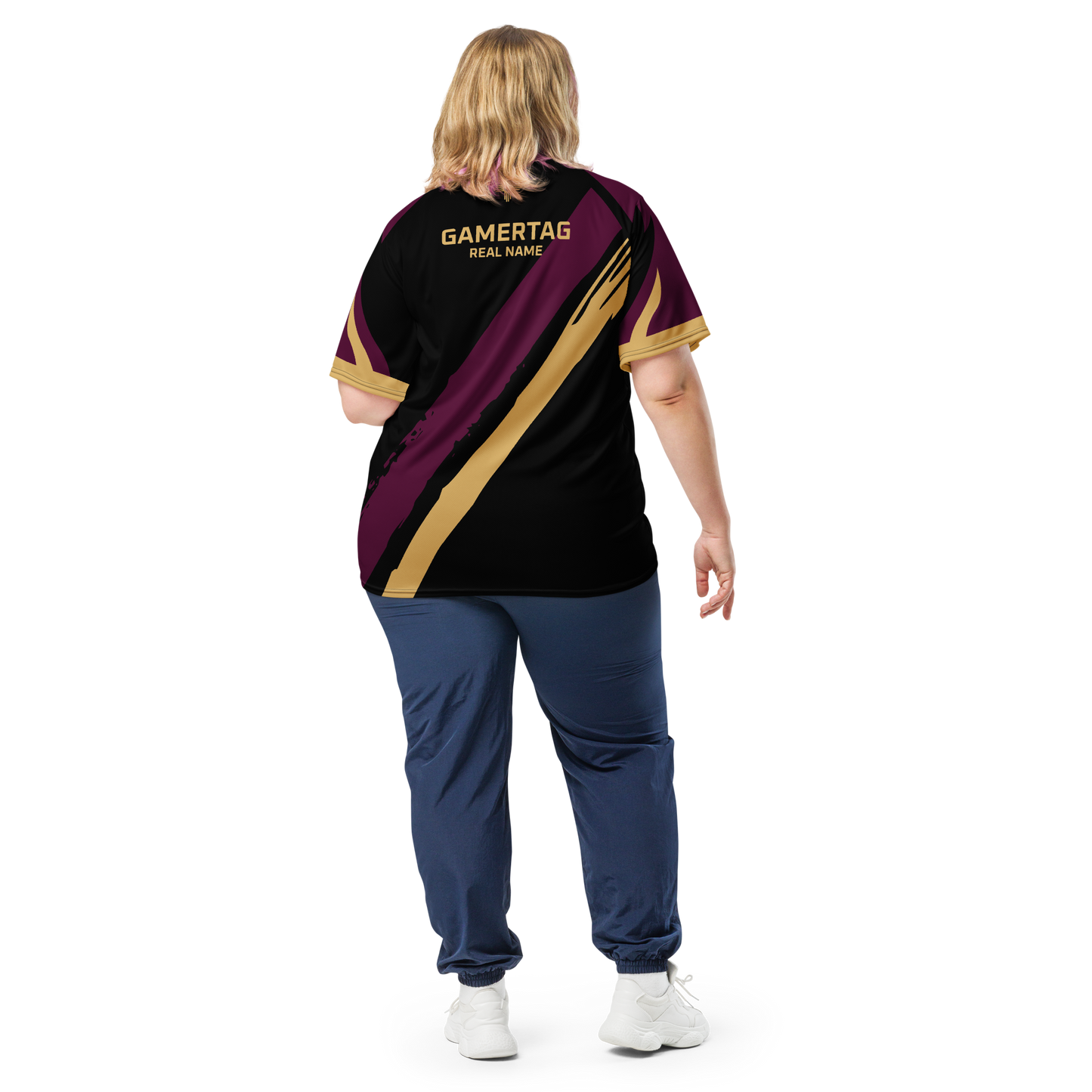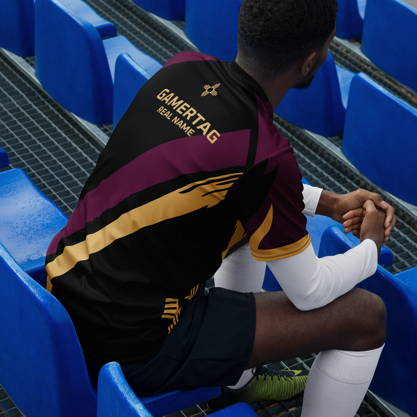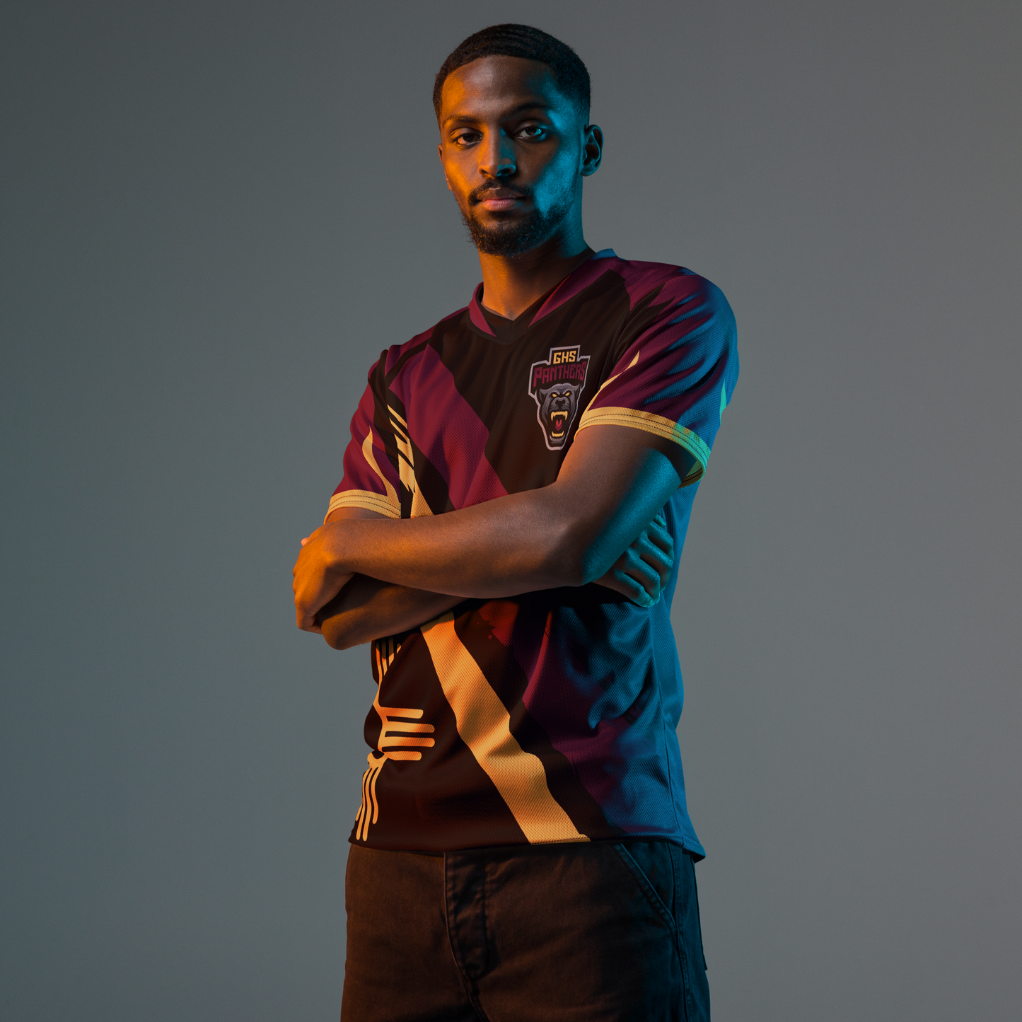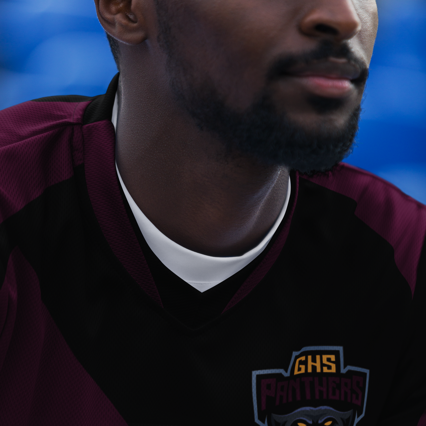 Looking for the perfect sports jersey? We have you covered—made of 100% recycled polyester fabric, this shirt is breathable, moisture-wicking, and has a double-layered v-neck collar that creates a premium look.
