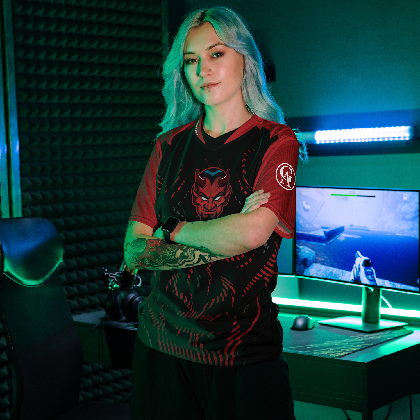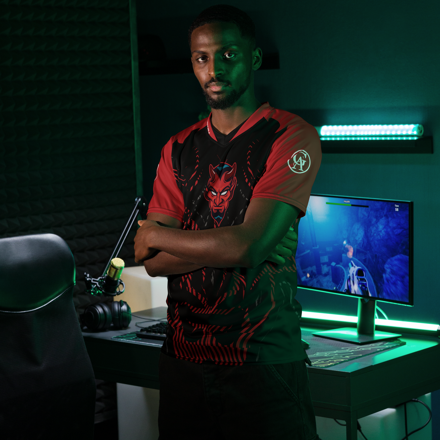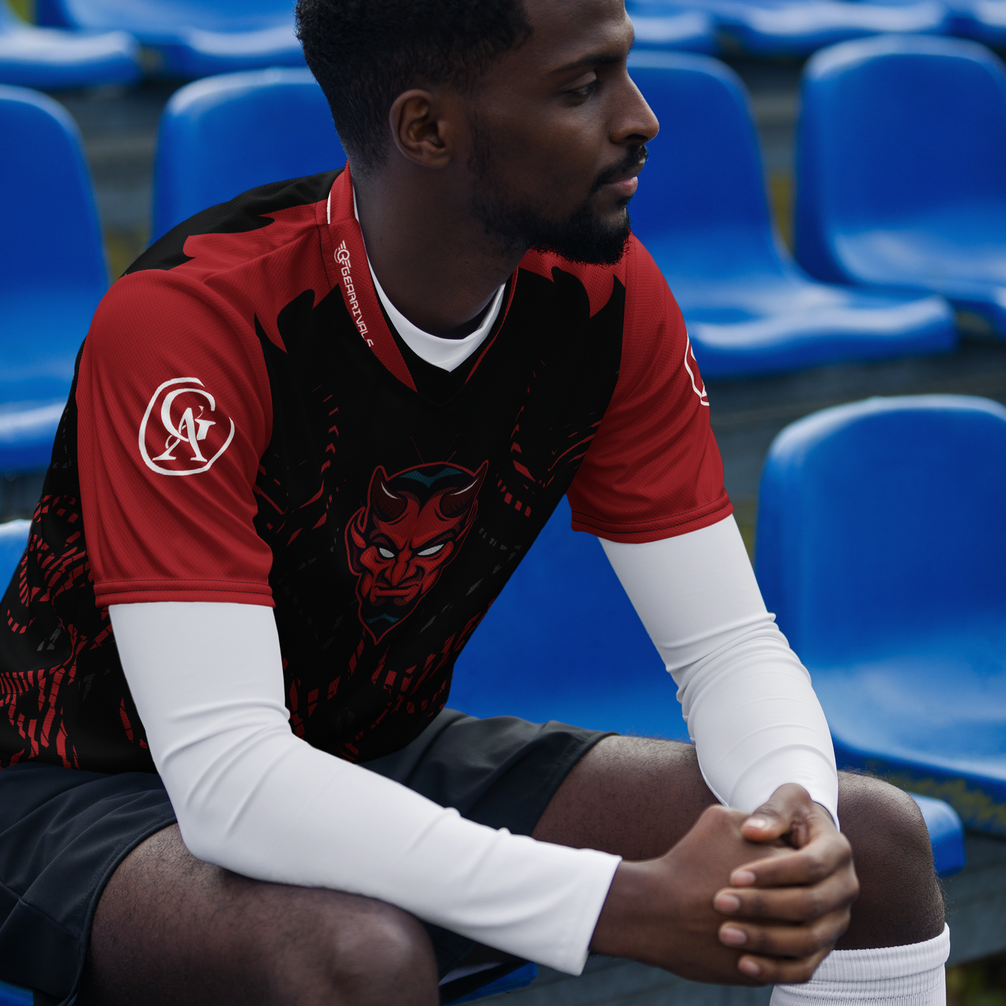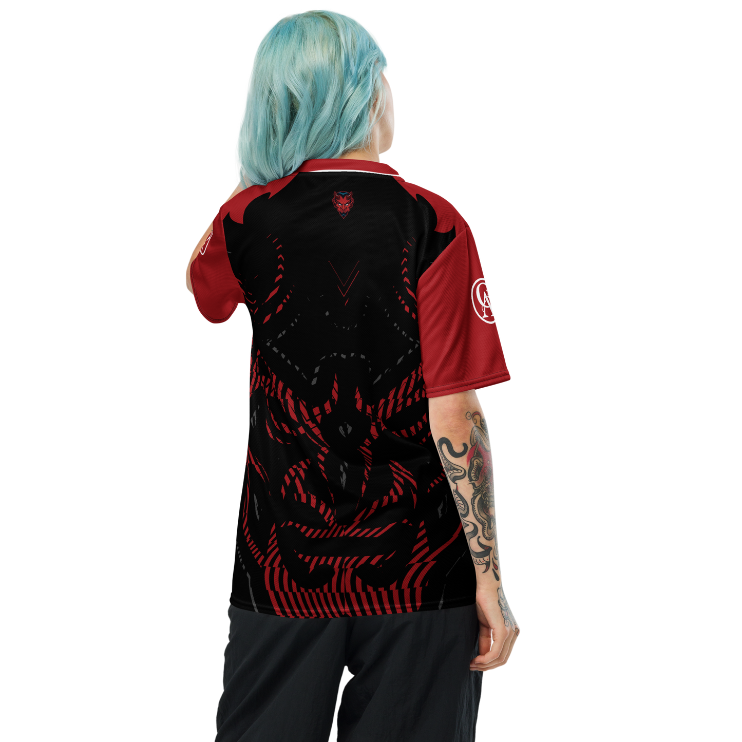 Looking for the perfect sports jersey? We have you covered—made of 100% recycled polyester fabric, this shirt is breathable, moisture-wicking, and has a double-layered v-neck collar that creates a premium look.