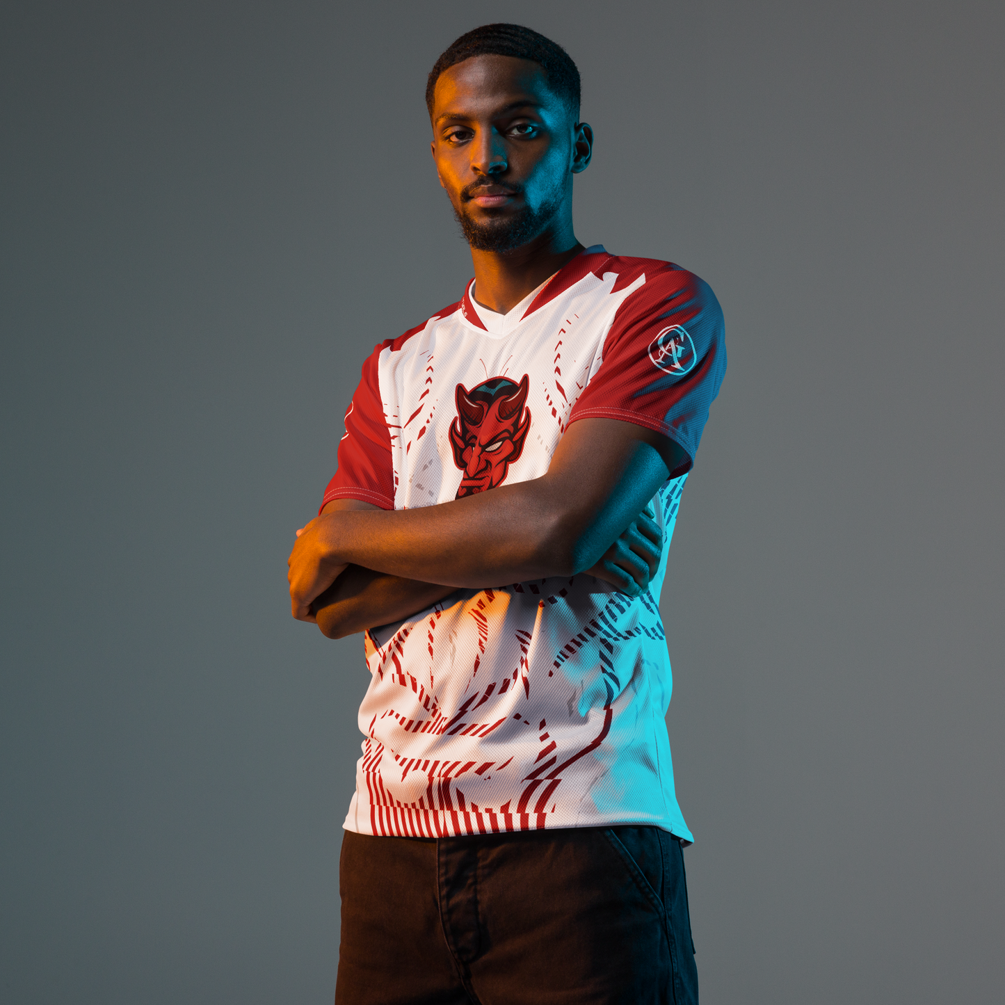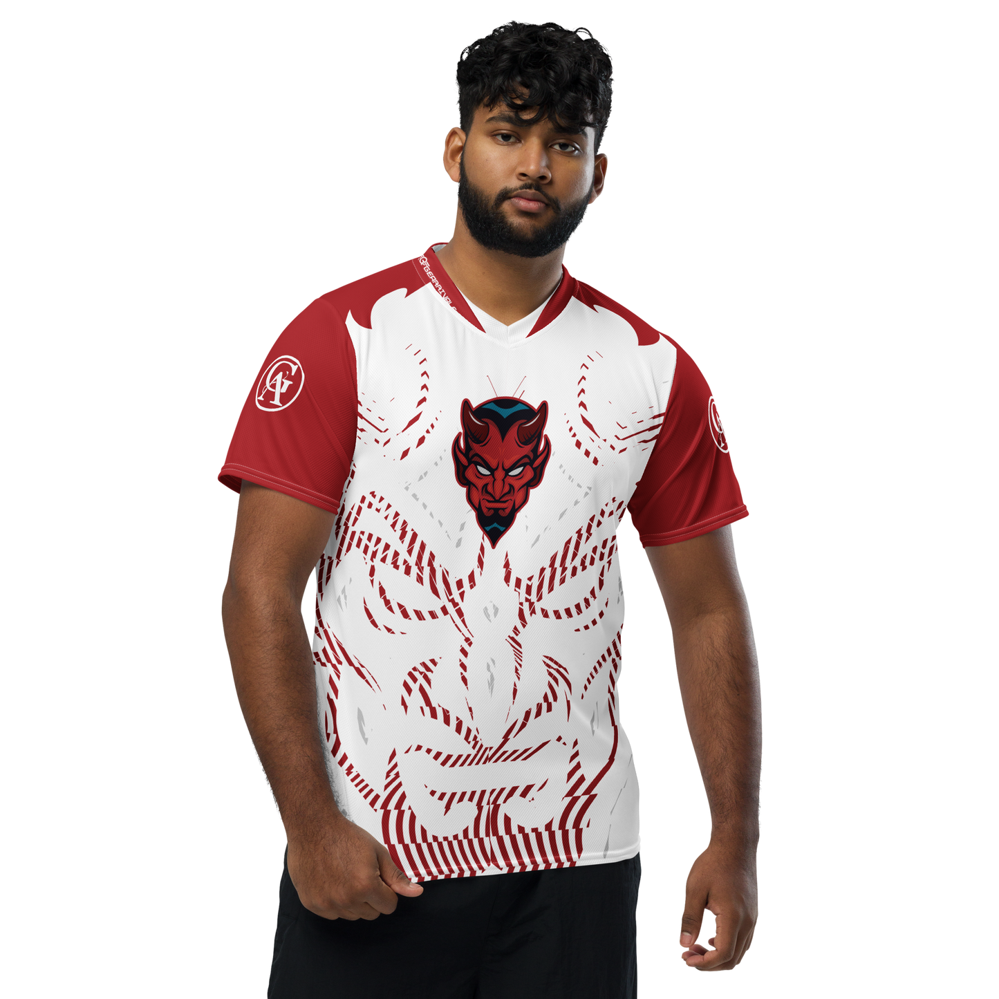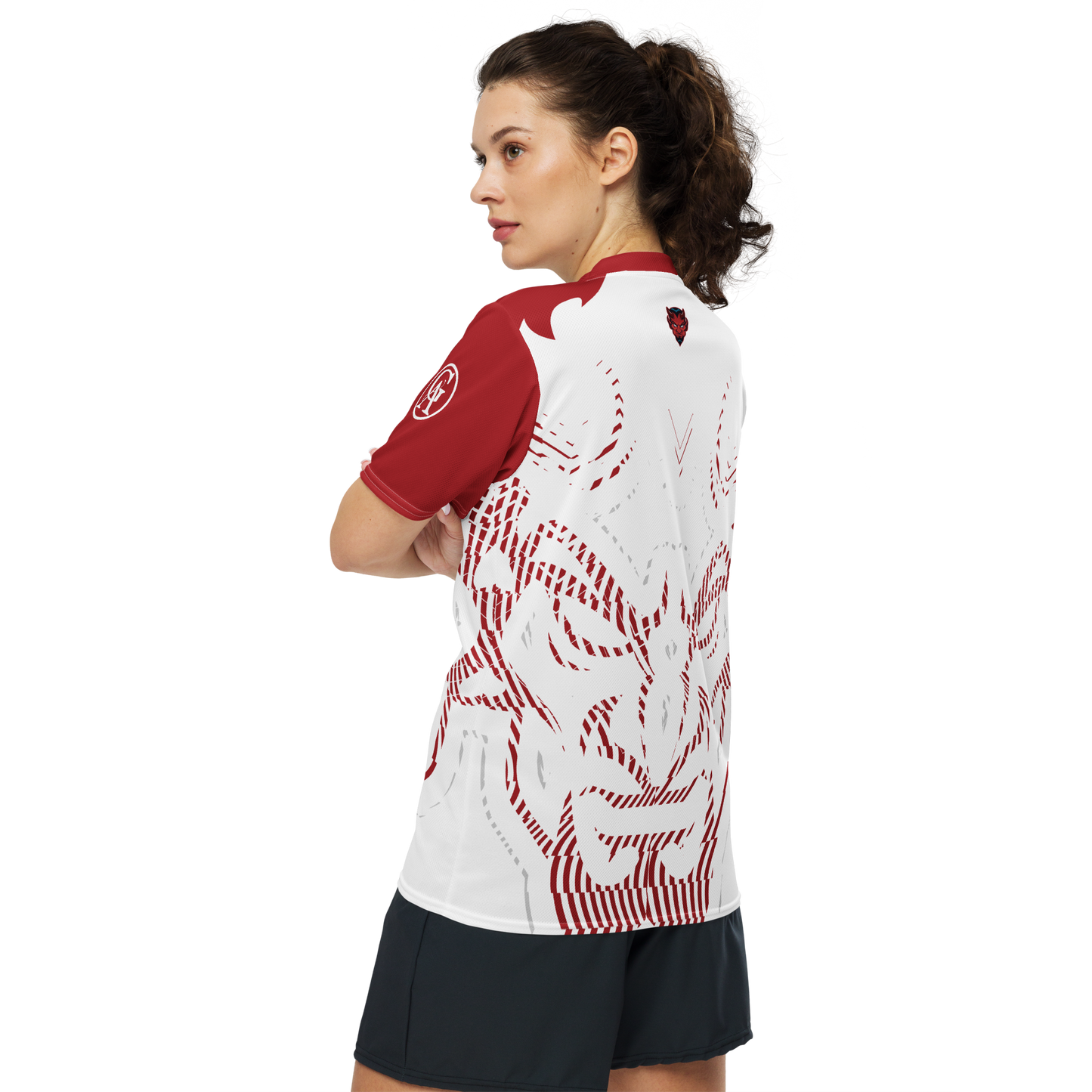 Looking for the perfect sports jersey? We have you covered—made of 100% recycled polyester fabric, this shirt is breathable, moisture-wicking, and has a double-layered v-neck collar that creates a premium look.