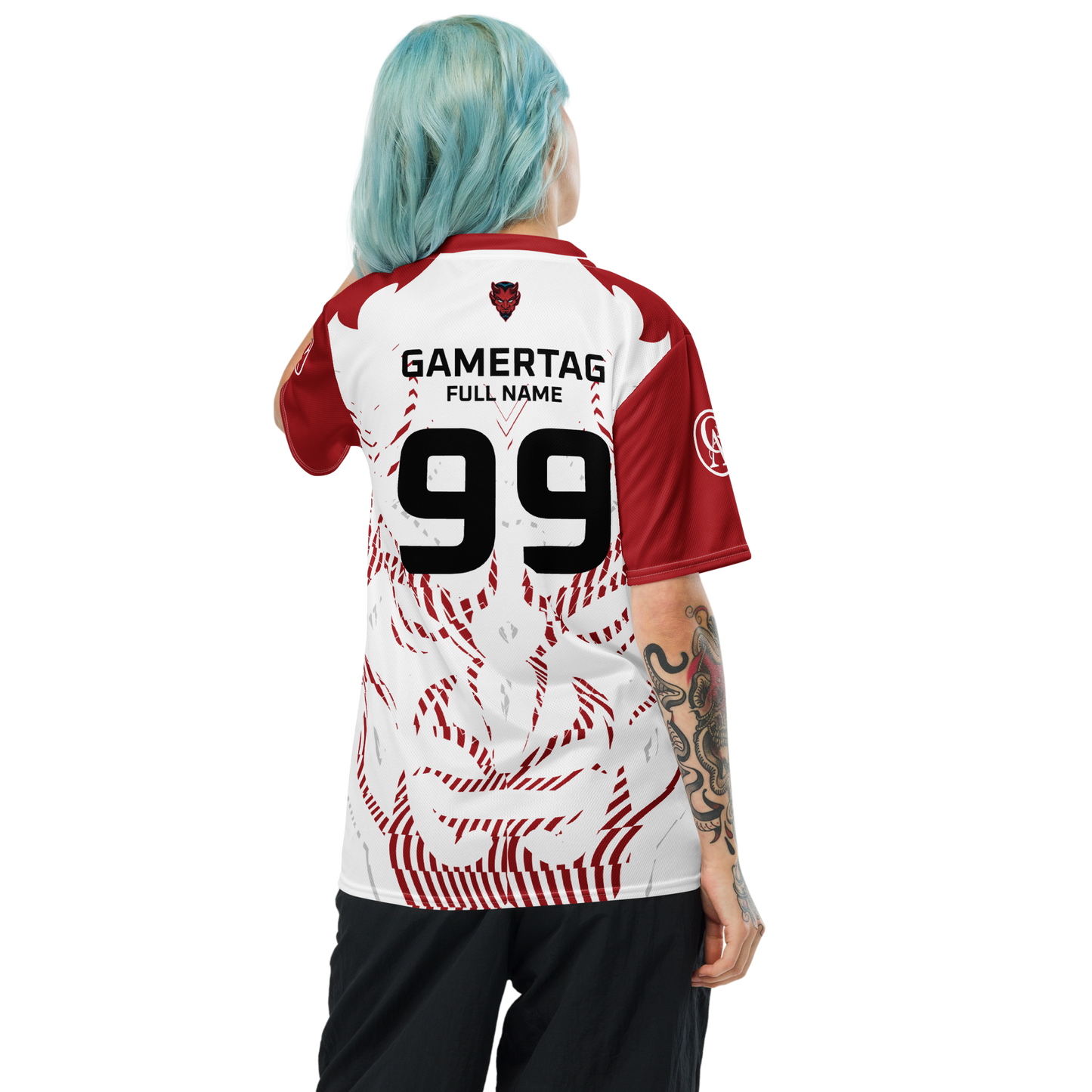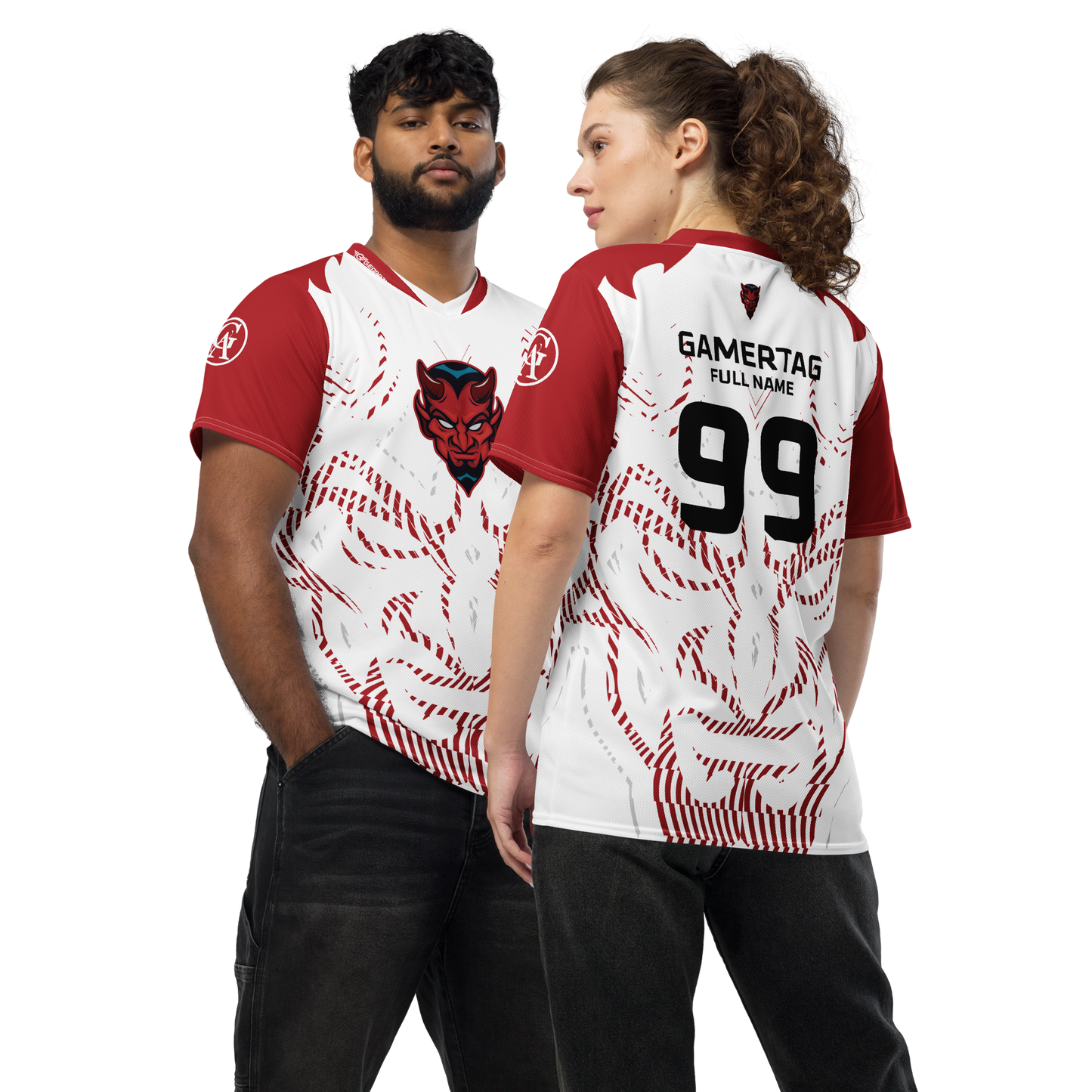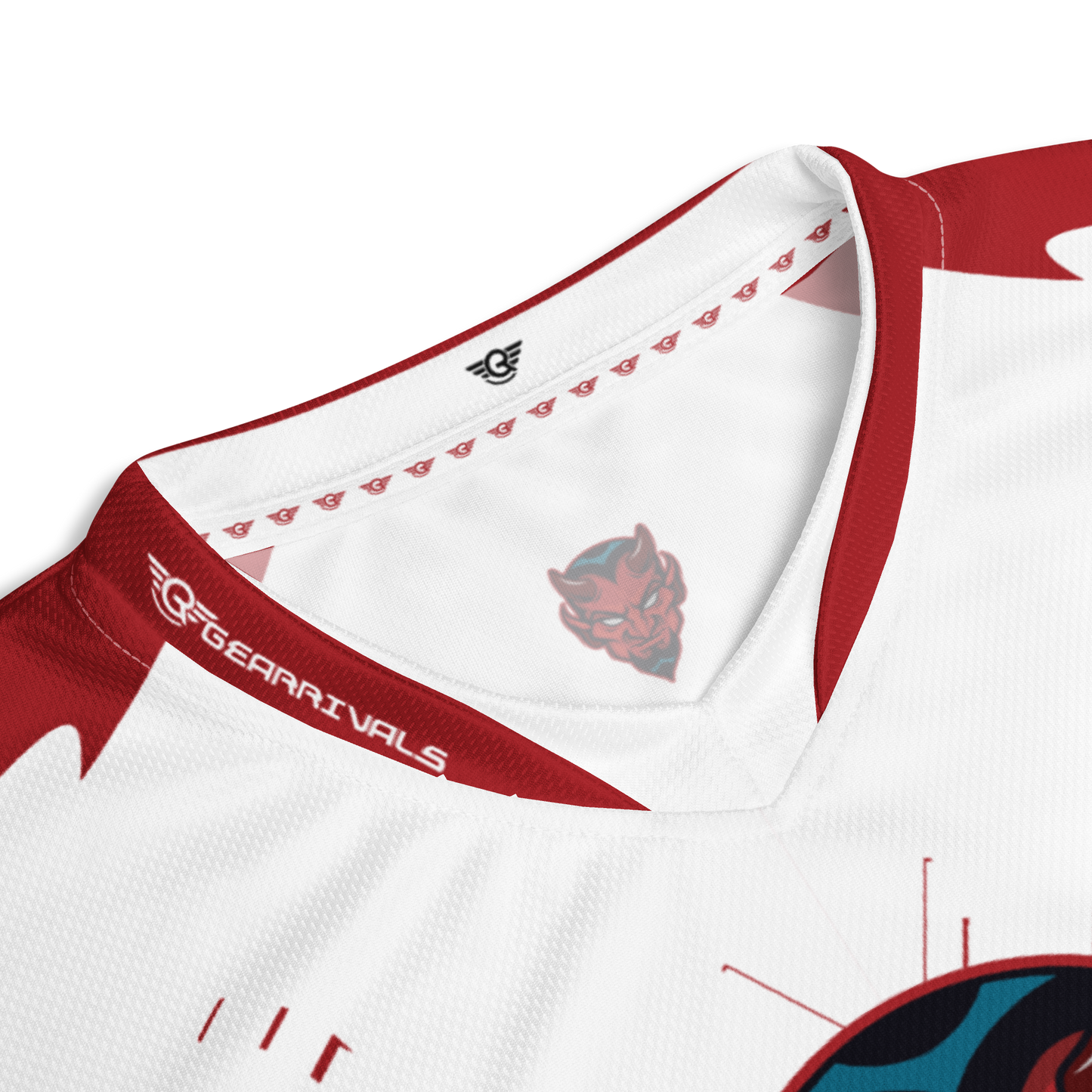 Looking for the perfect sports jersey? We have you covered—made of 100% recycled polyester fabric, this shirt is breathable, moisture-wicking, and has a double-layered v-neck collar that creates a premium look.