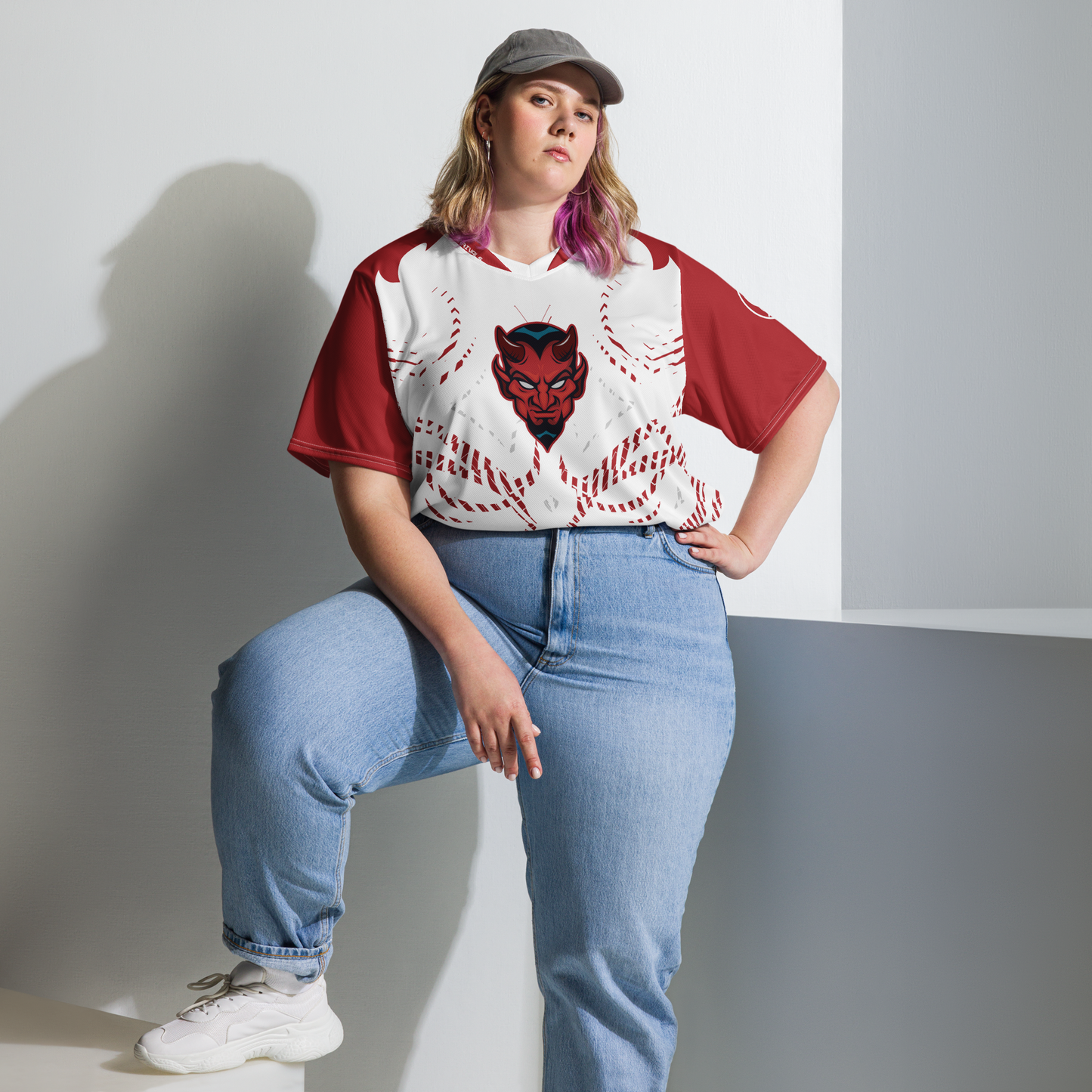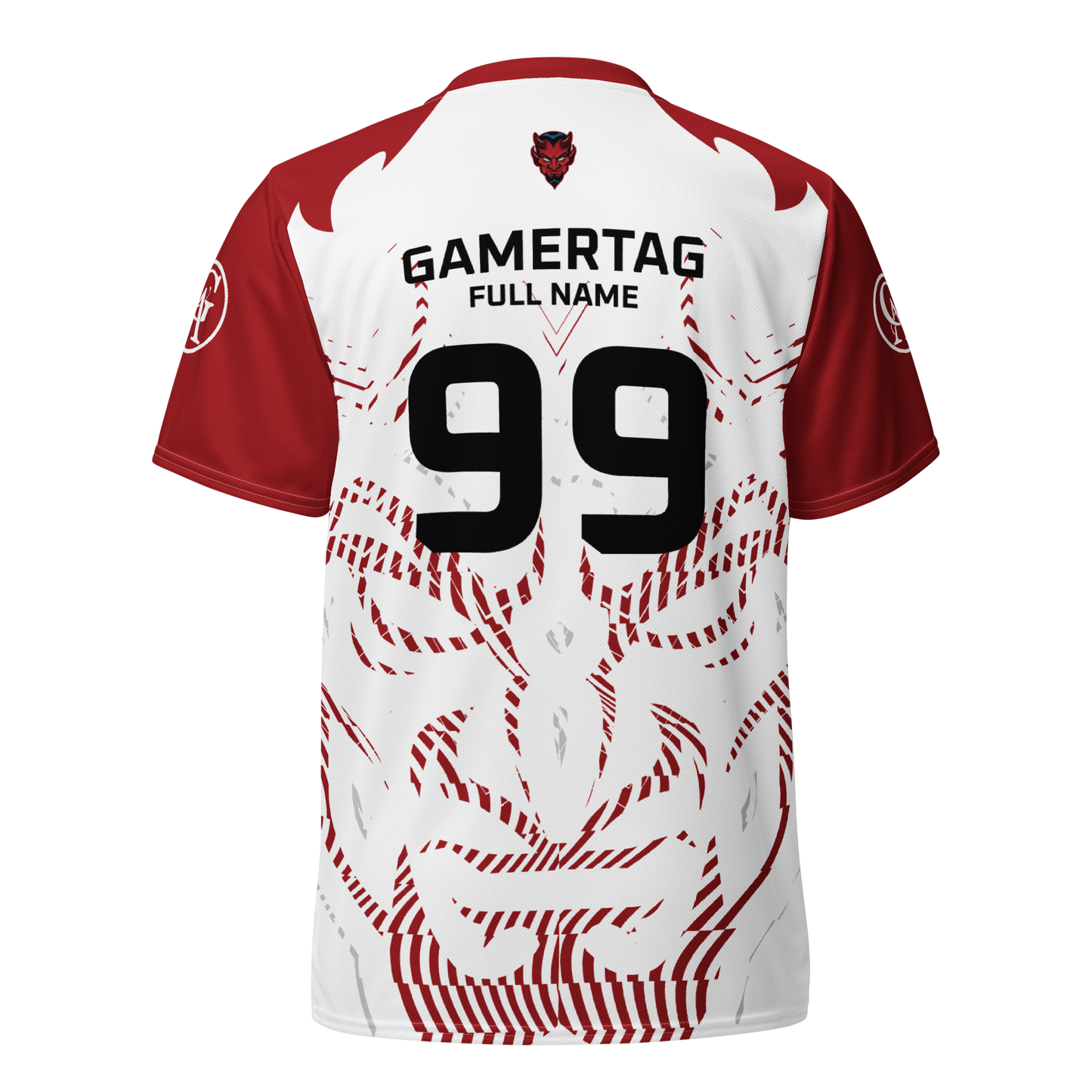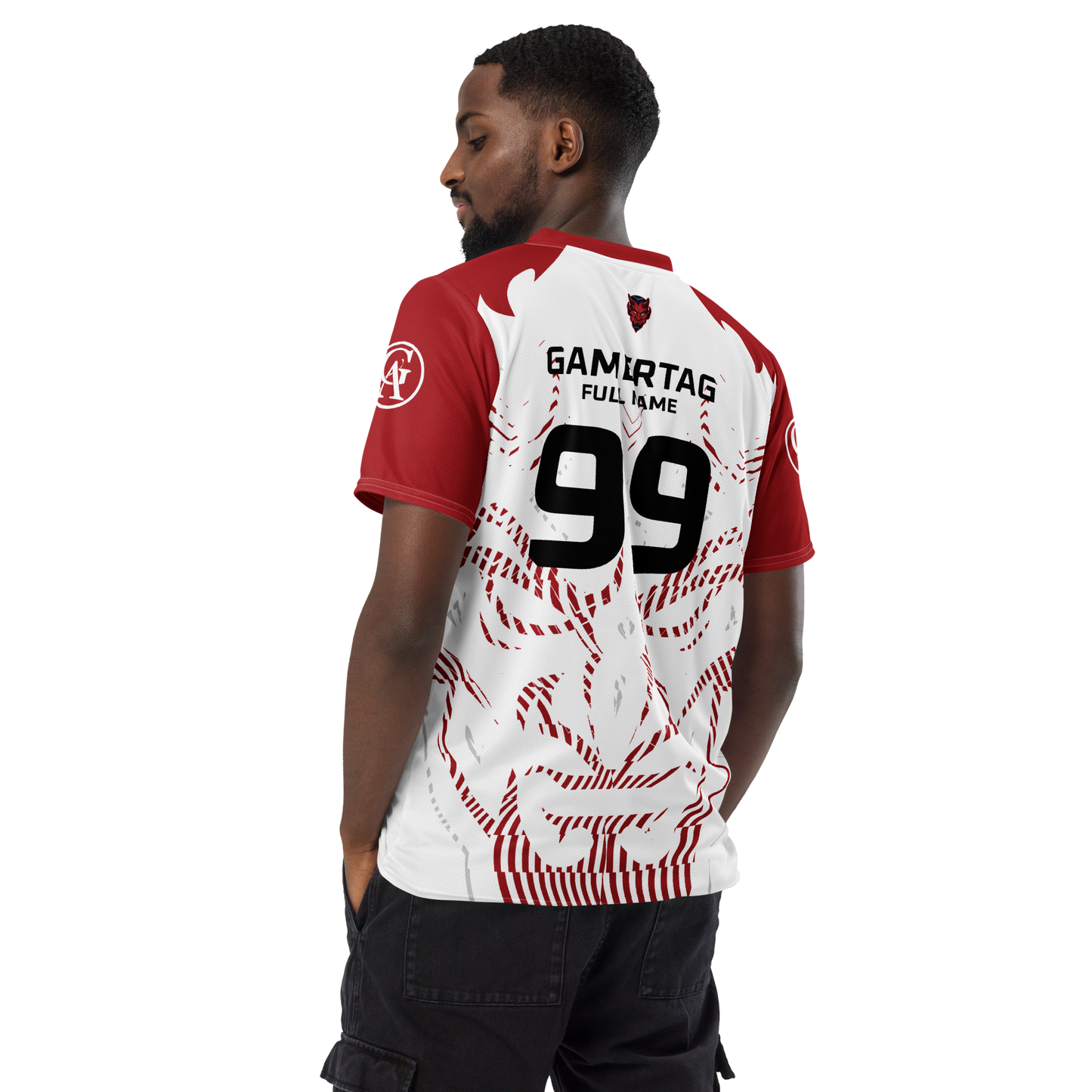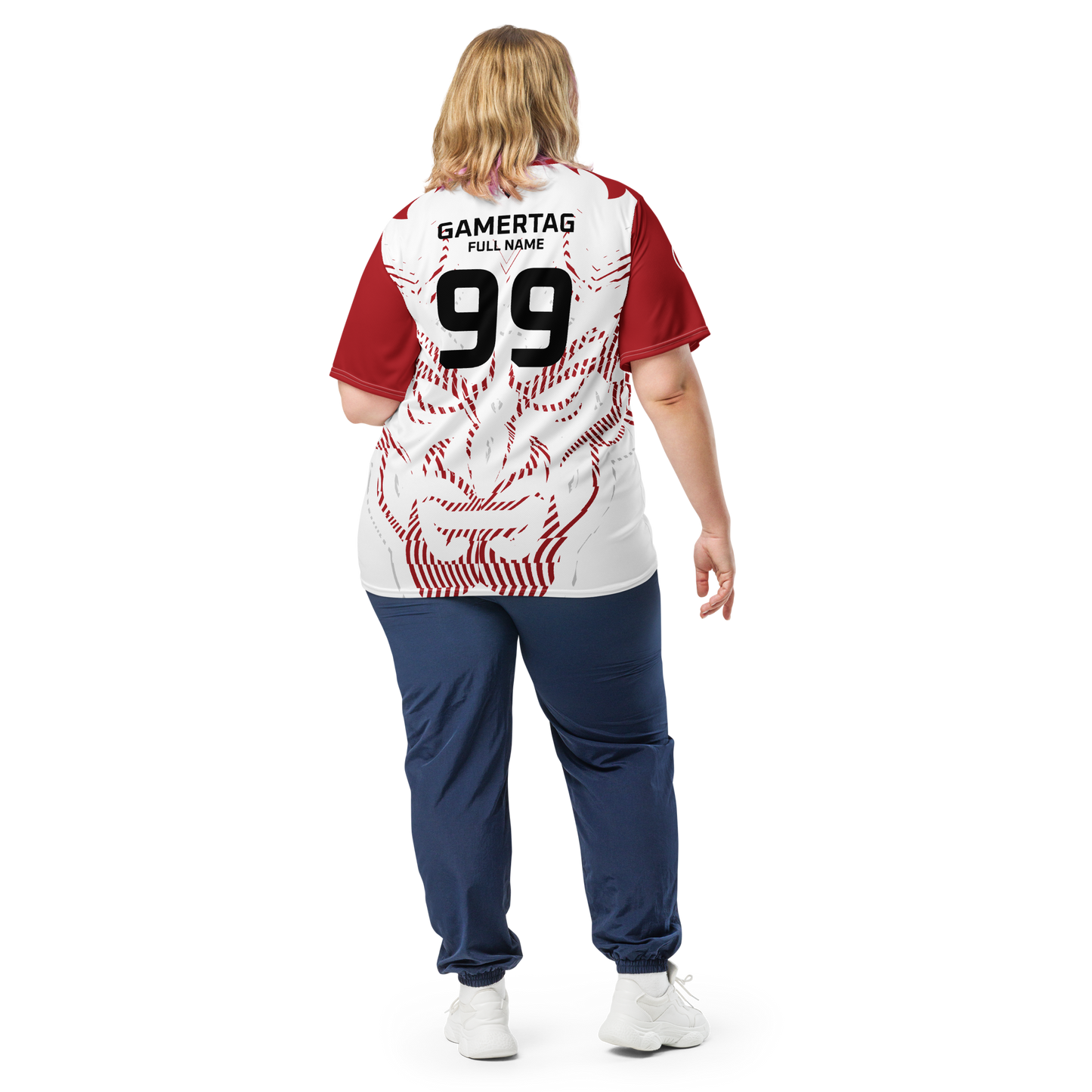 Looking for the perfect sports jersey? We have you covered—made of 100% recycled polyester fabric, this shirt is breathable, moisture-wicking, and has a double-layered v-neck collar that creates a premium look.