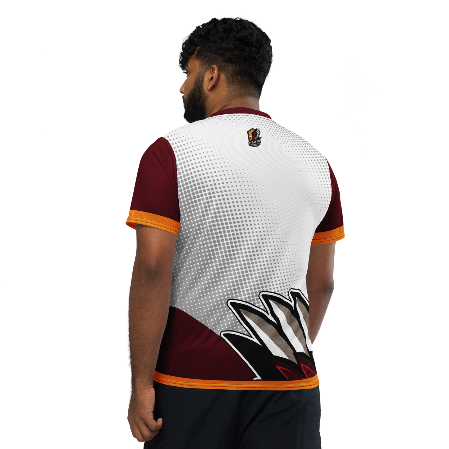 Looking for the perfect sports jersey? We have you covered—made of 100% recycled polyester fabric, this shirt is breathable, moisture-wicking, and has a double-layered v-neck collar that creates a premium look.