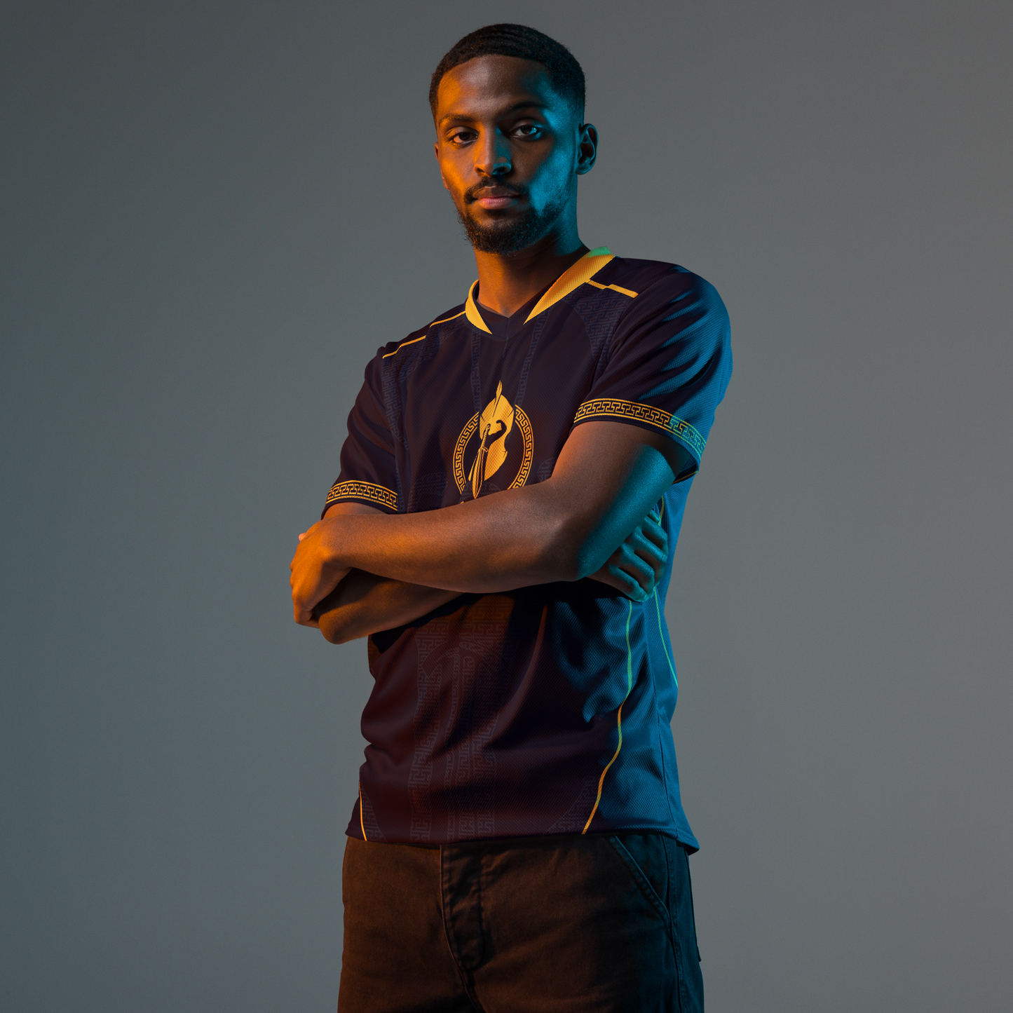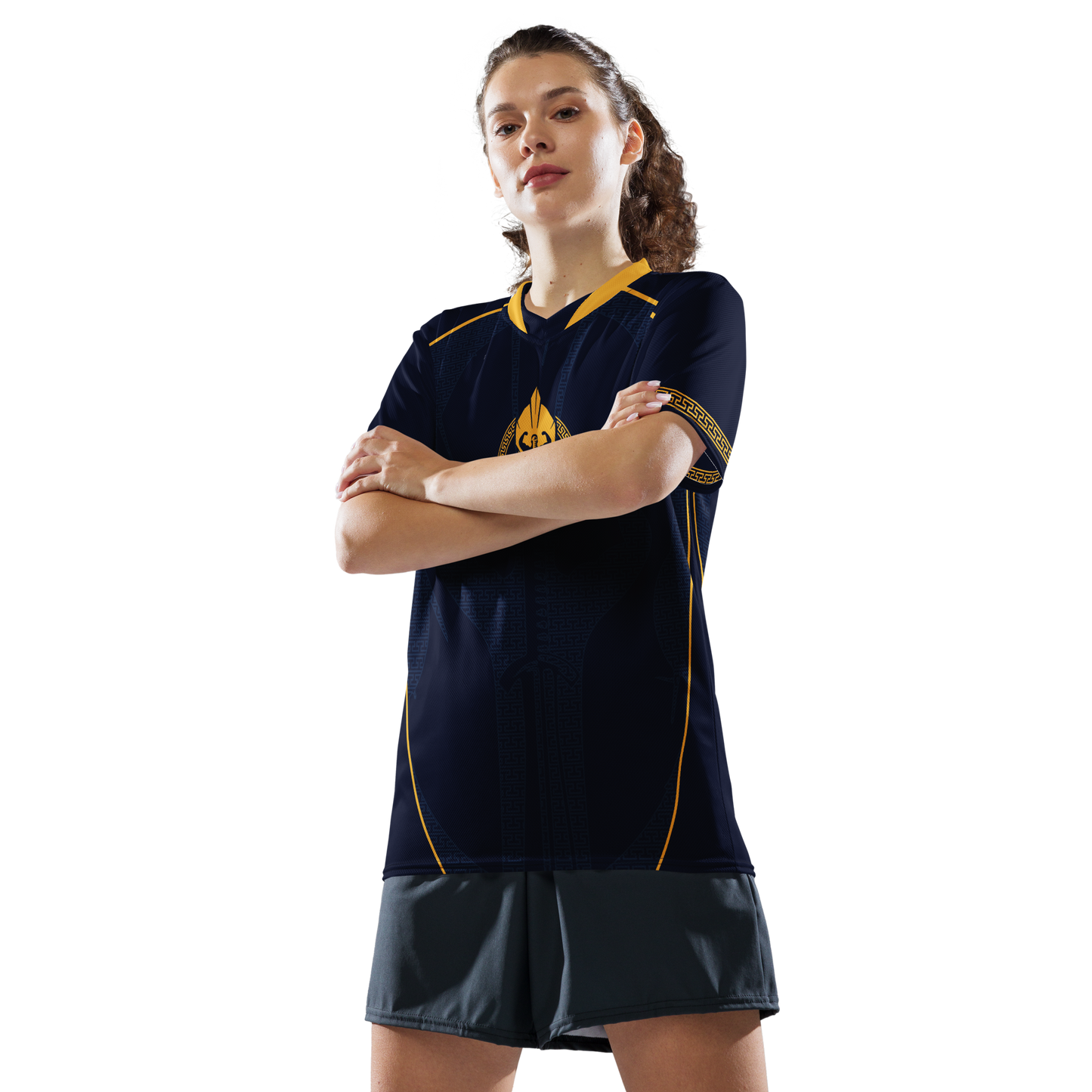 Looking for the perfect sports jersey? We have you covered—made of 100% recycled polyester fabric, this shirt is breathable, moisture-wicking, and has a double-layered v-neck collar that creates a premium look.