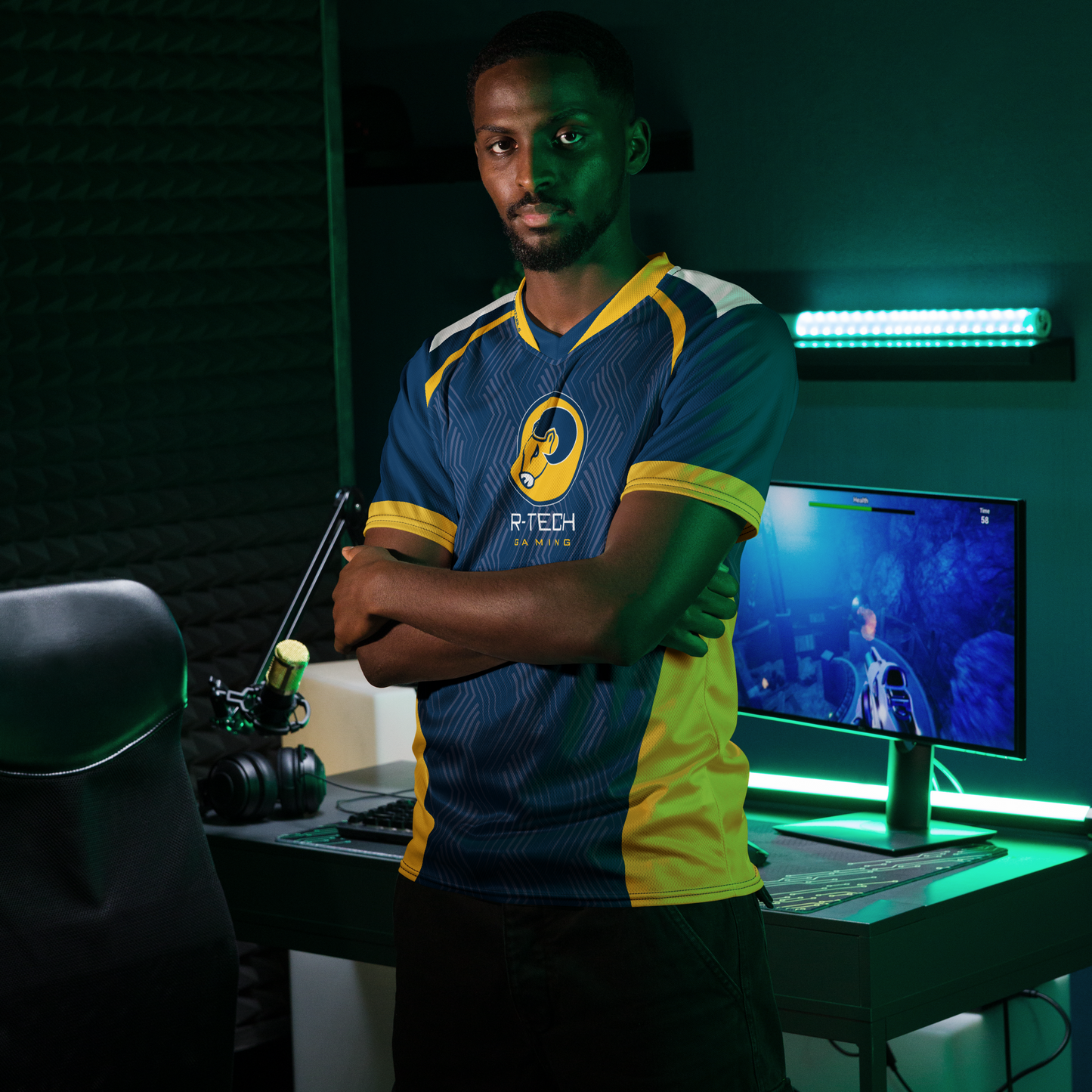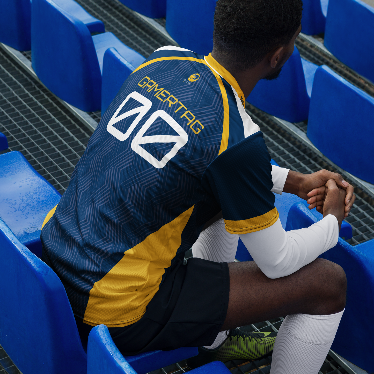 Looking for the perfect sports jersey? We have you covered—made of 100% recycled polyester fabric, this shirt is breathable, moisture-wicking, and has a double-layered v-neck collar that creates a premium look.