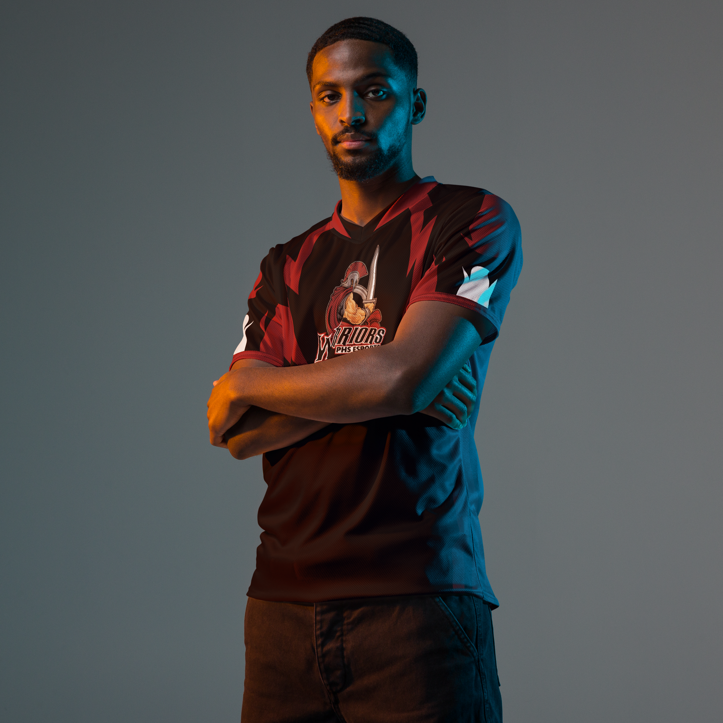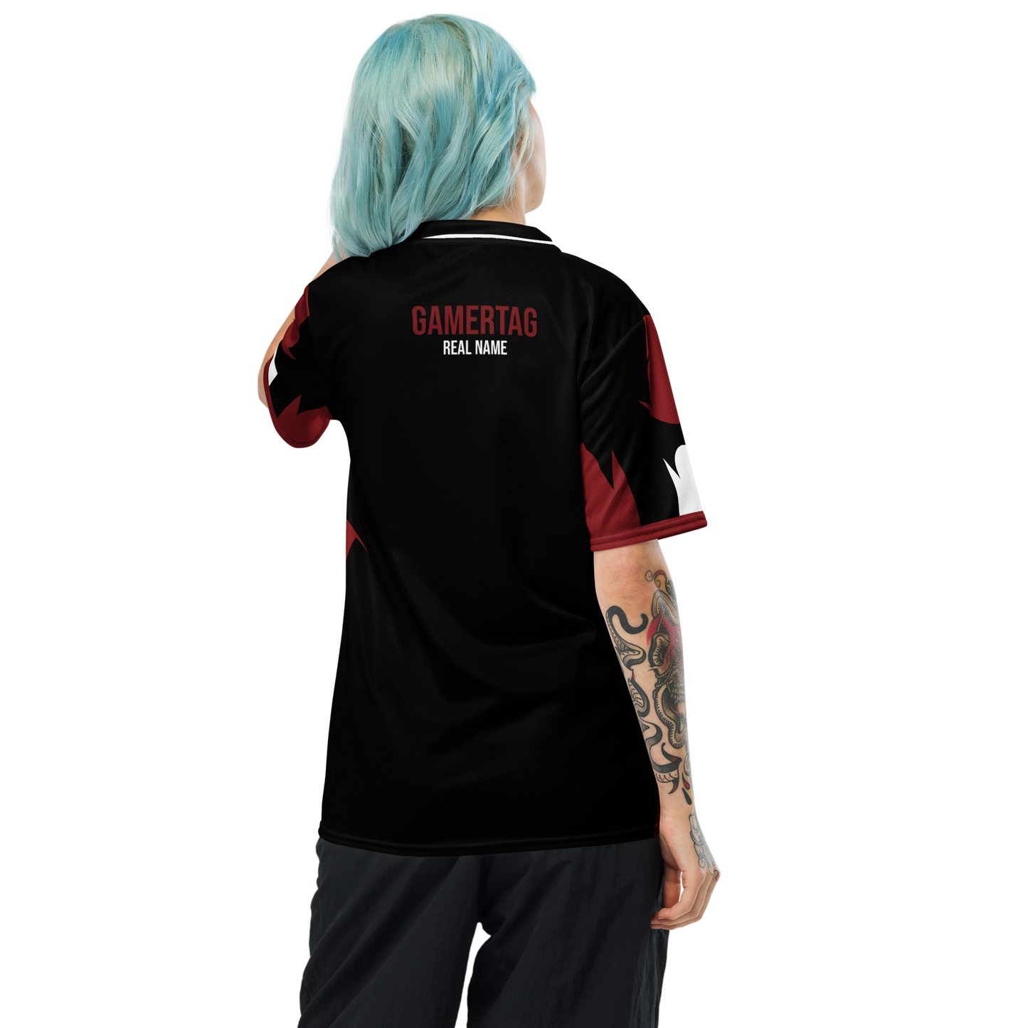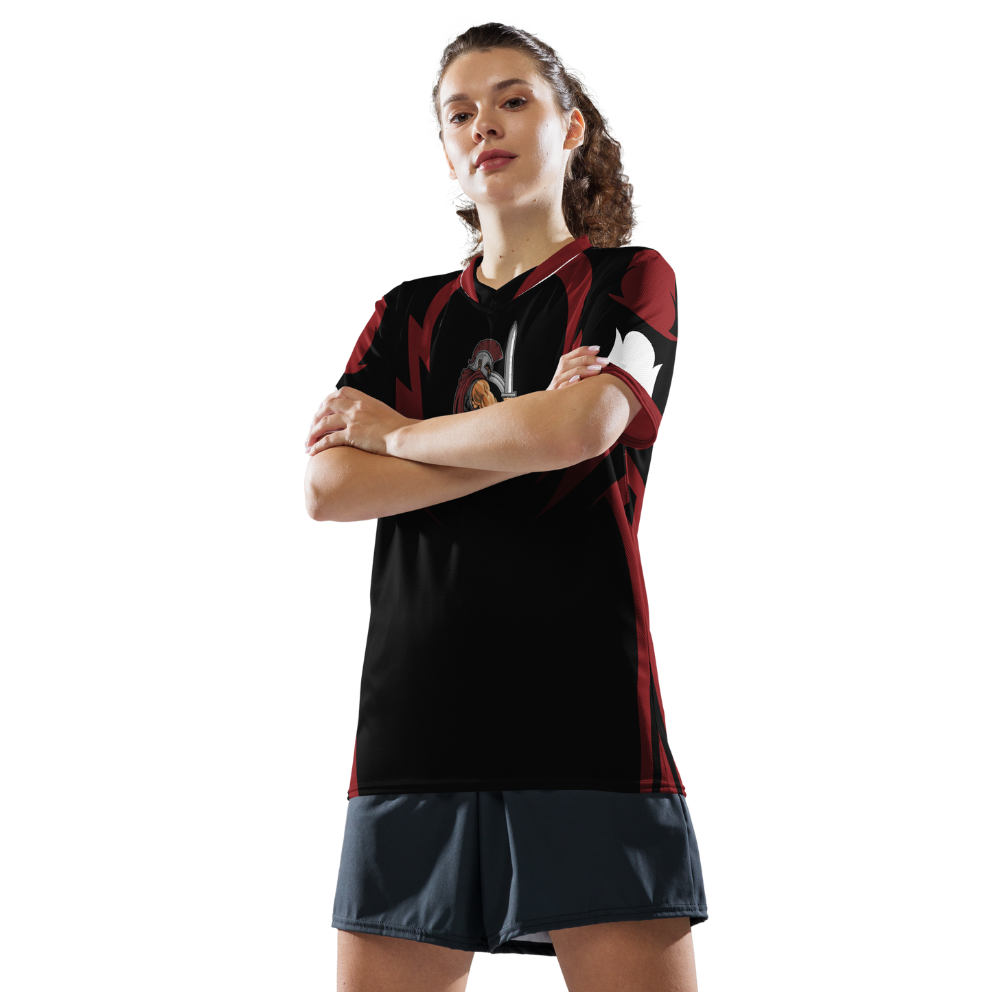 Looking for the perfect sports jersey? We have you covered—made of 100% recycled polyester fabric, this shirt is breathable, moisture-wicking, and has a double-layered v-neck collar that creates a premium look.