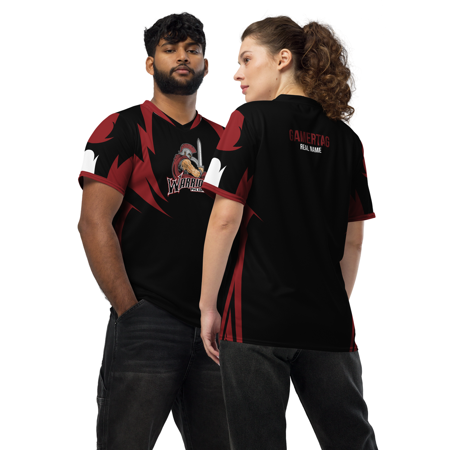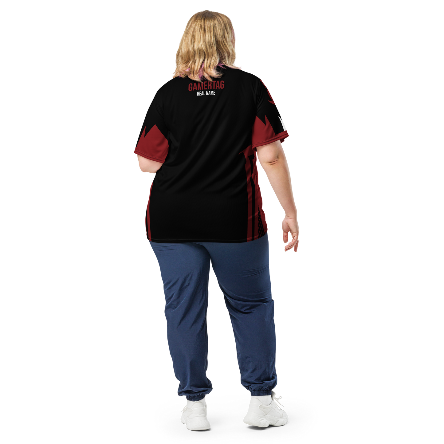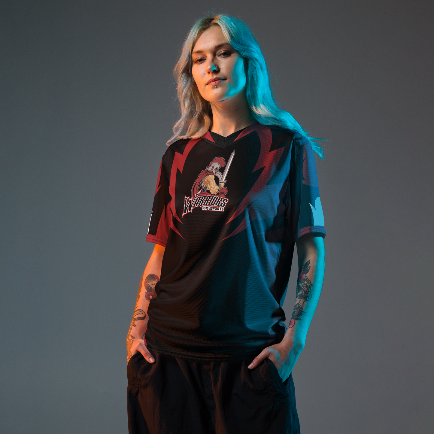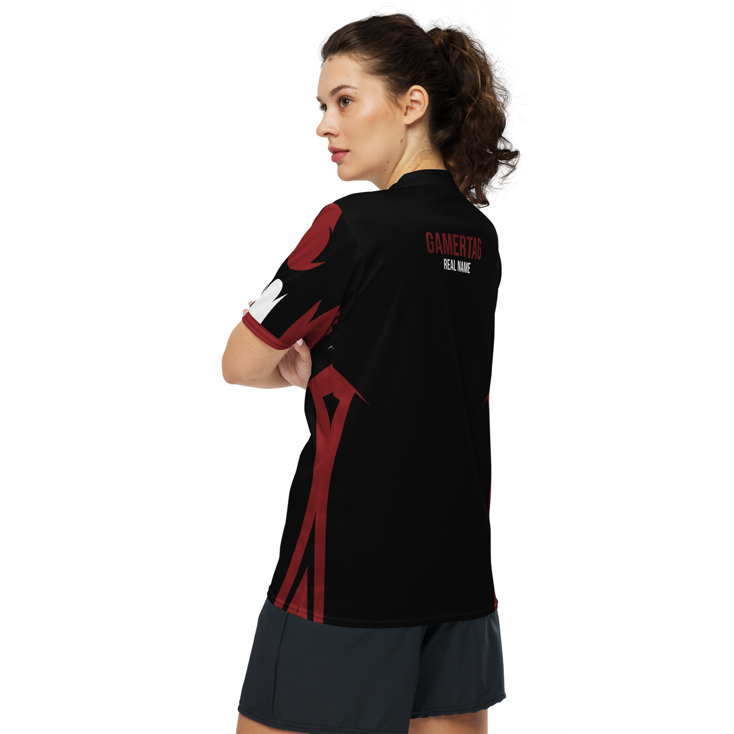 Looking for the perfect sports jersey? We have you covered—made of 100% recycled polyester fabric, this shirt is breathable, moisture-wicking, and has a double-layered v-neck collar that creates a premium look.
