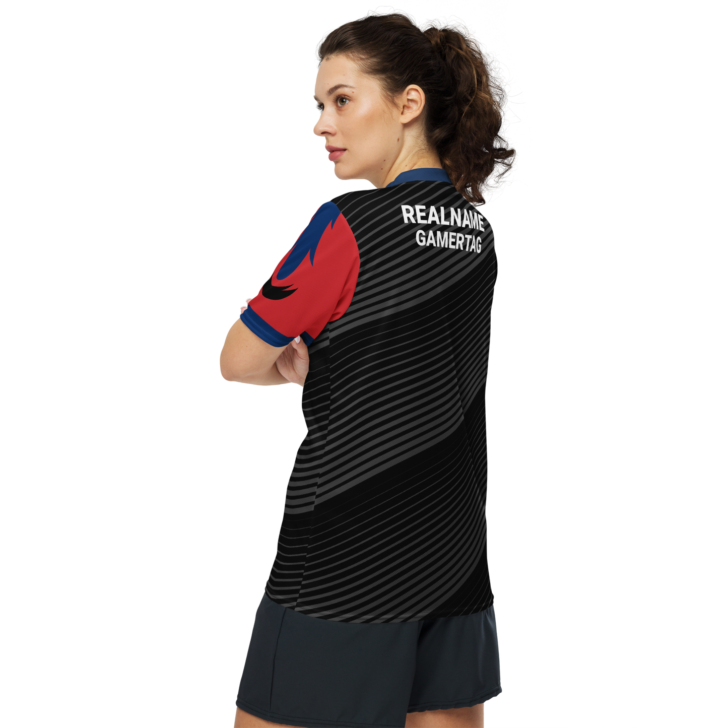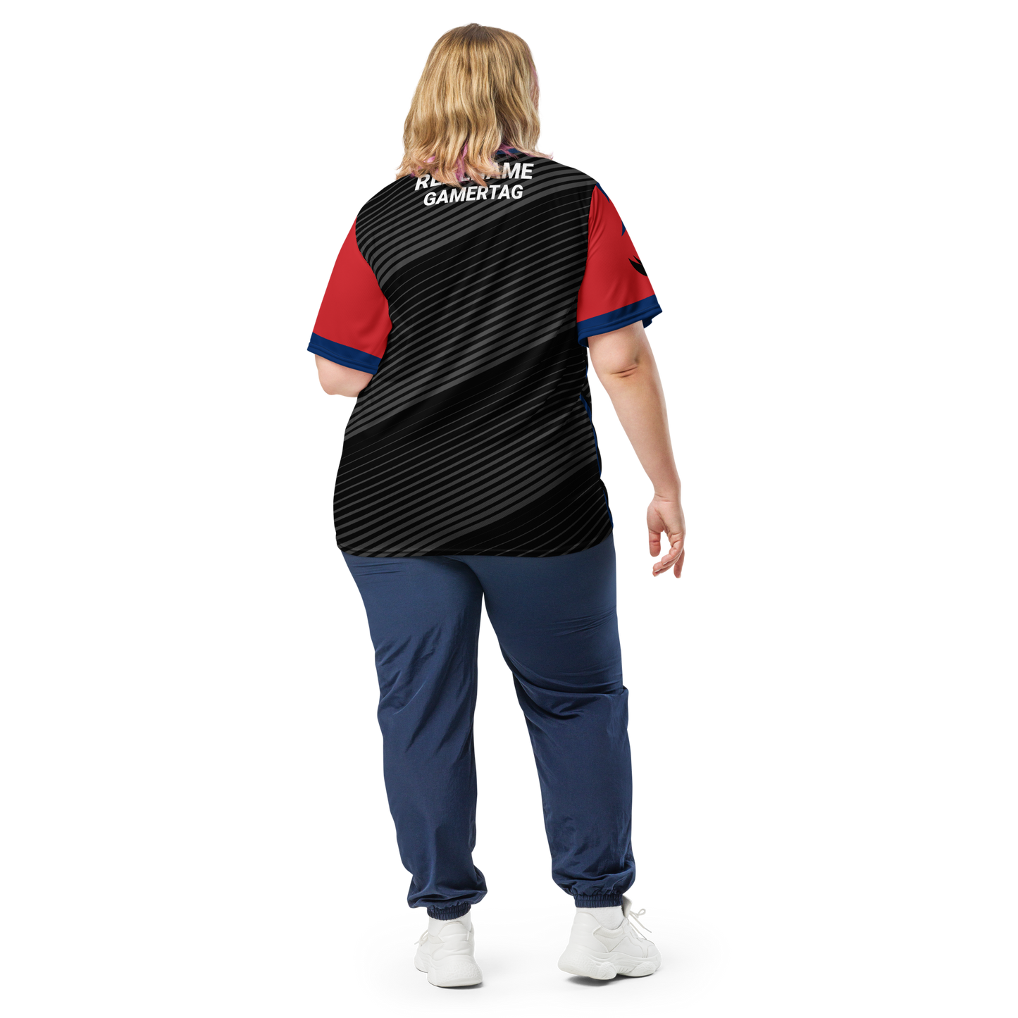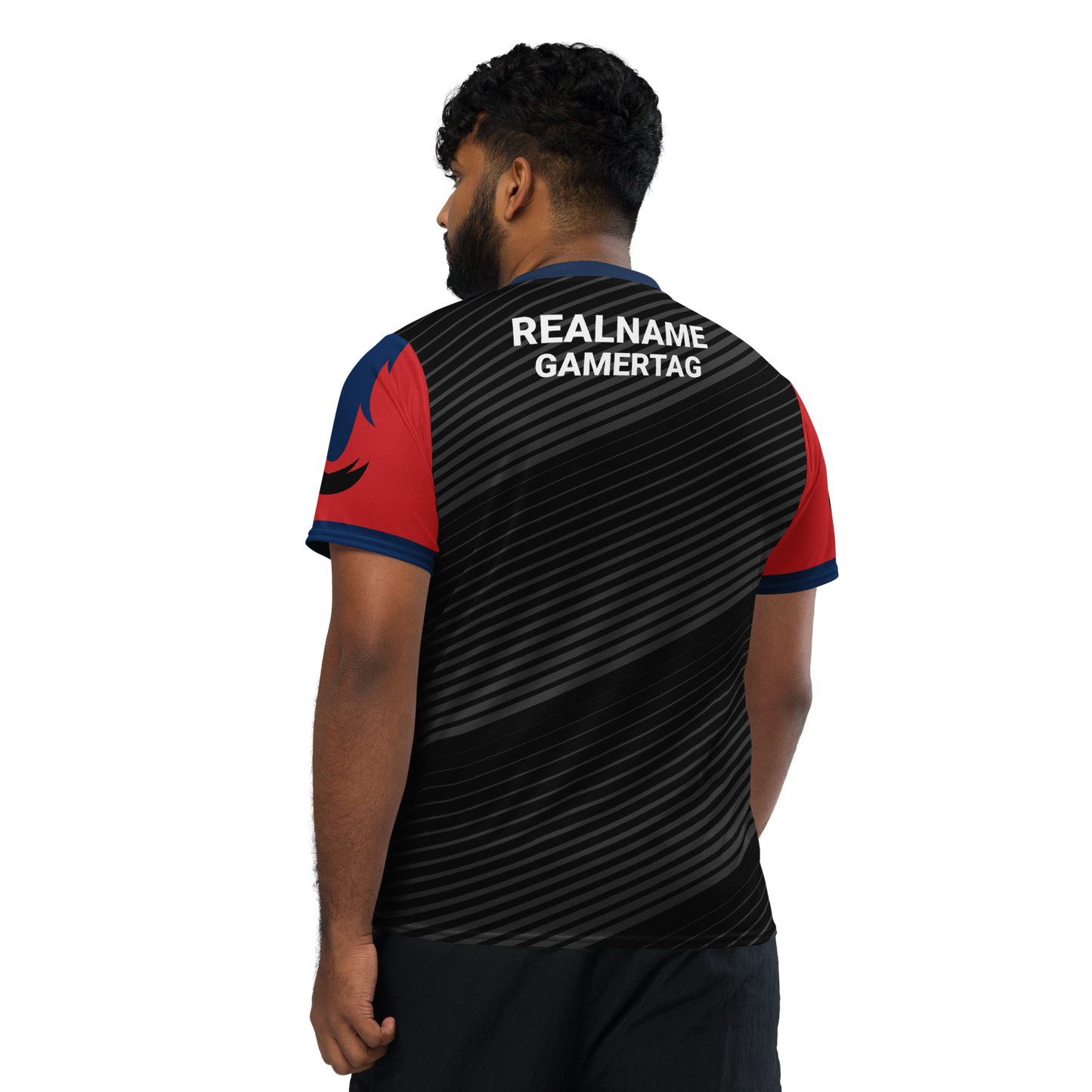 Looking for the perfect sports jersey? We have you covered—made of 100% recycled polyester fabric, this shirt is breathable, moisture-wicking, and has a double-layered v-neck collar that creates a premium look.