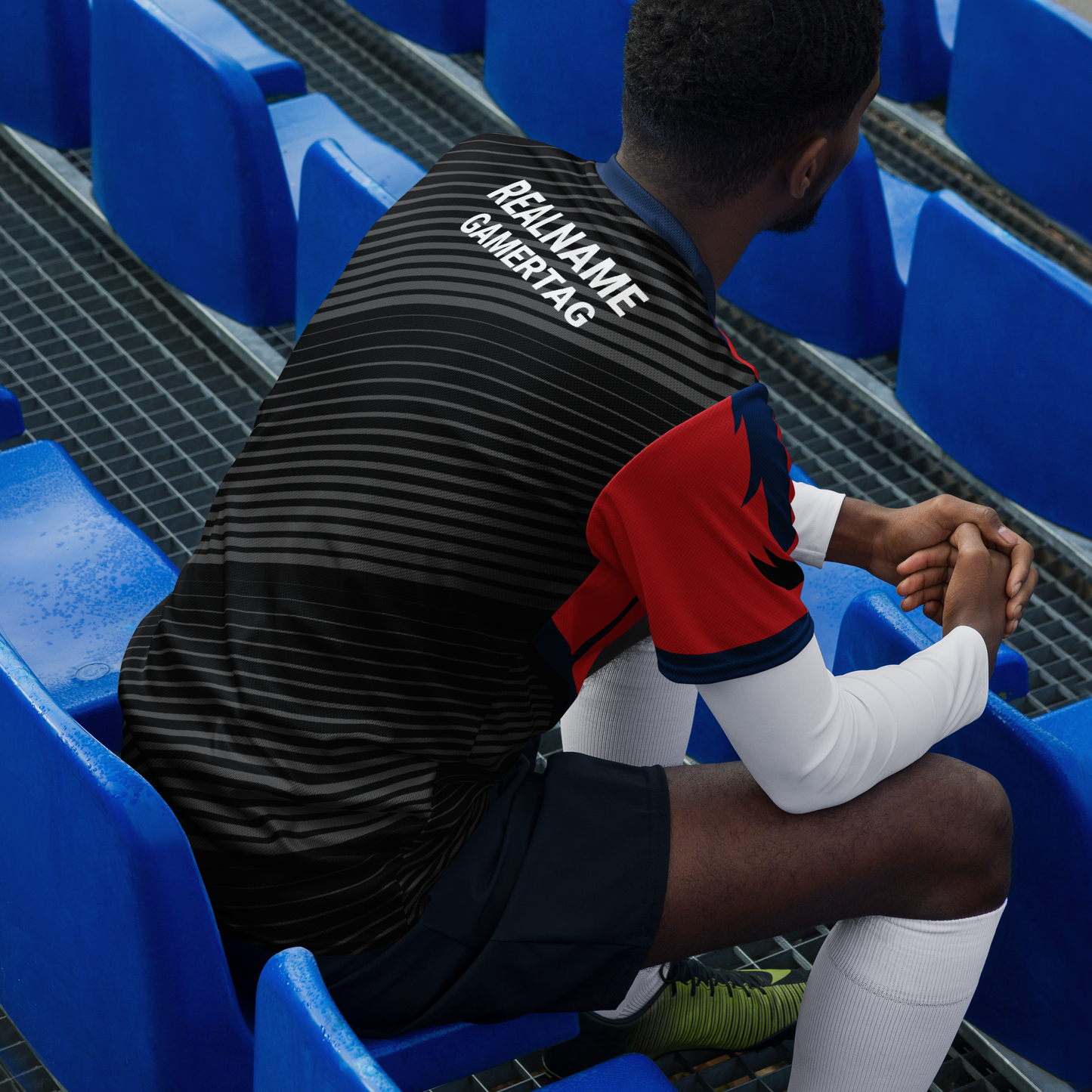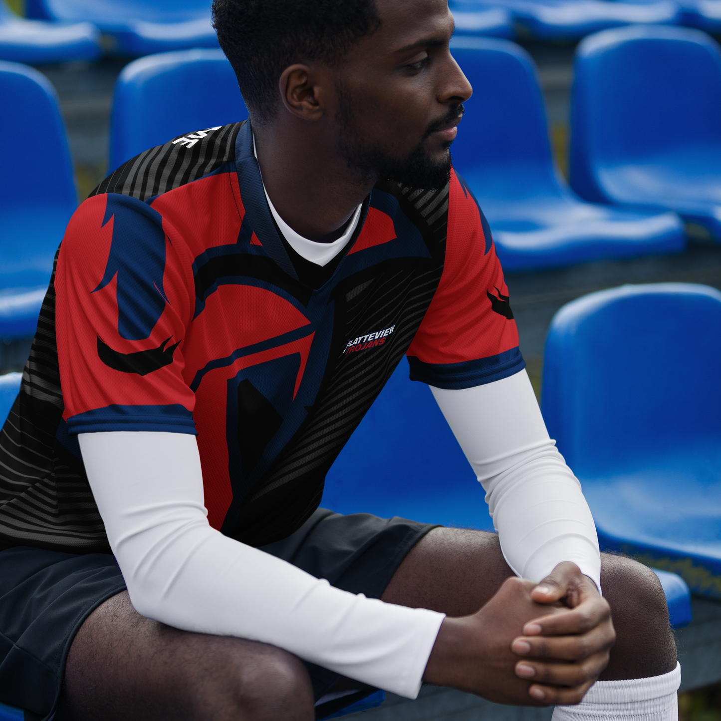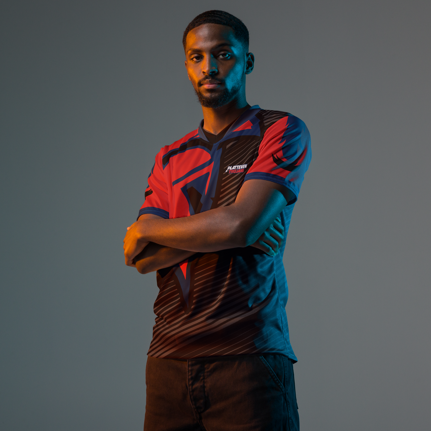 Looking for the perfect sports jersey? We have you covered—made of 100% recycled polyester fabric, this shirt is breathable, moisture-wicking, and has a double-layered v-neck collar that creates a premium look.