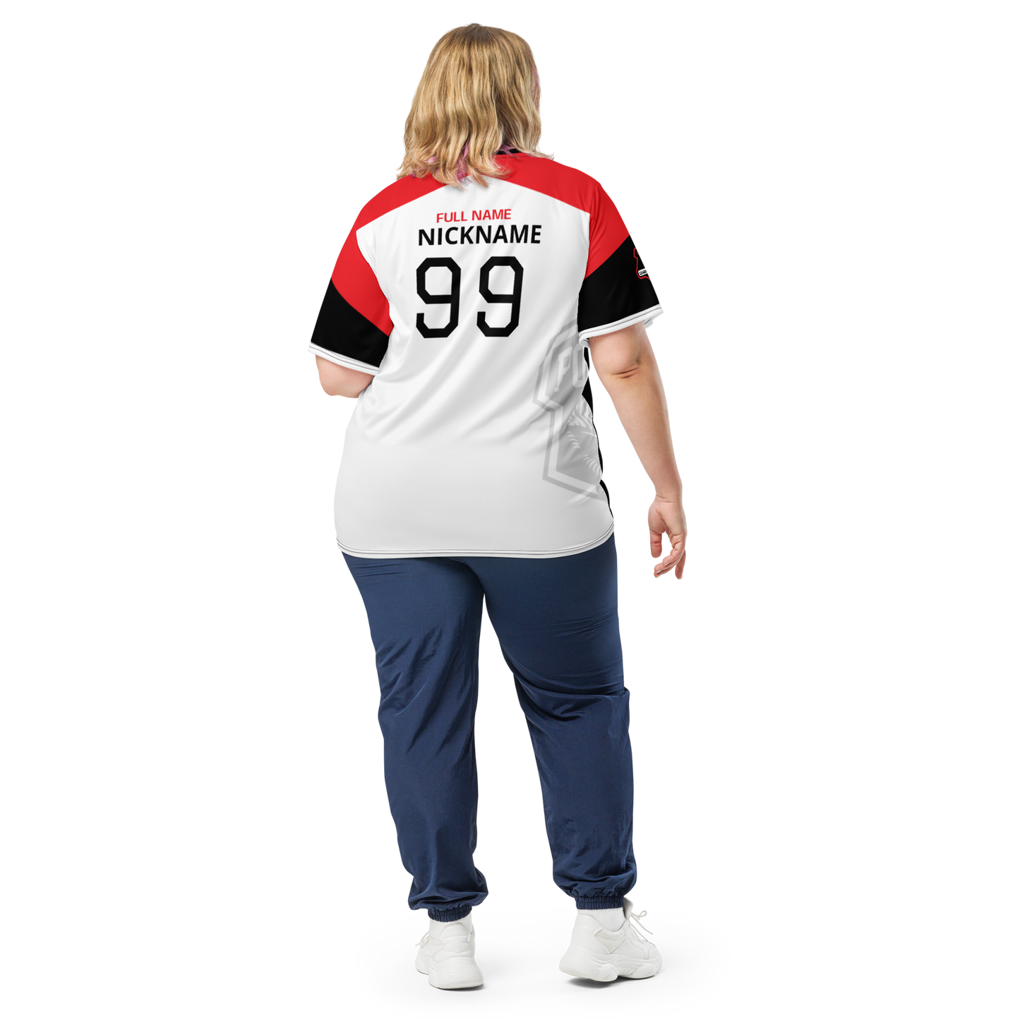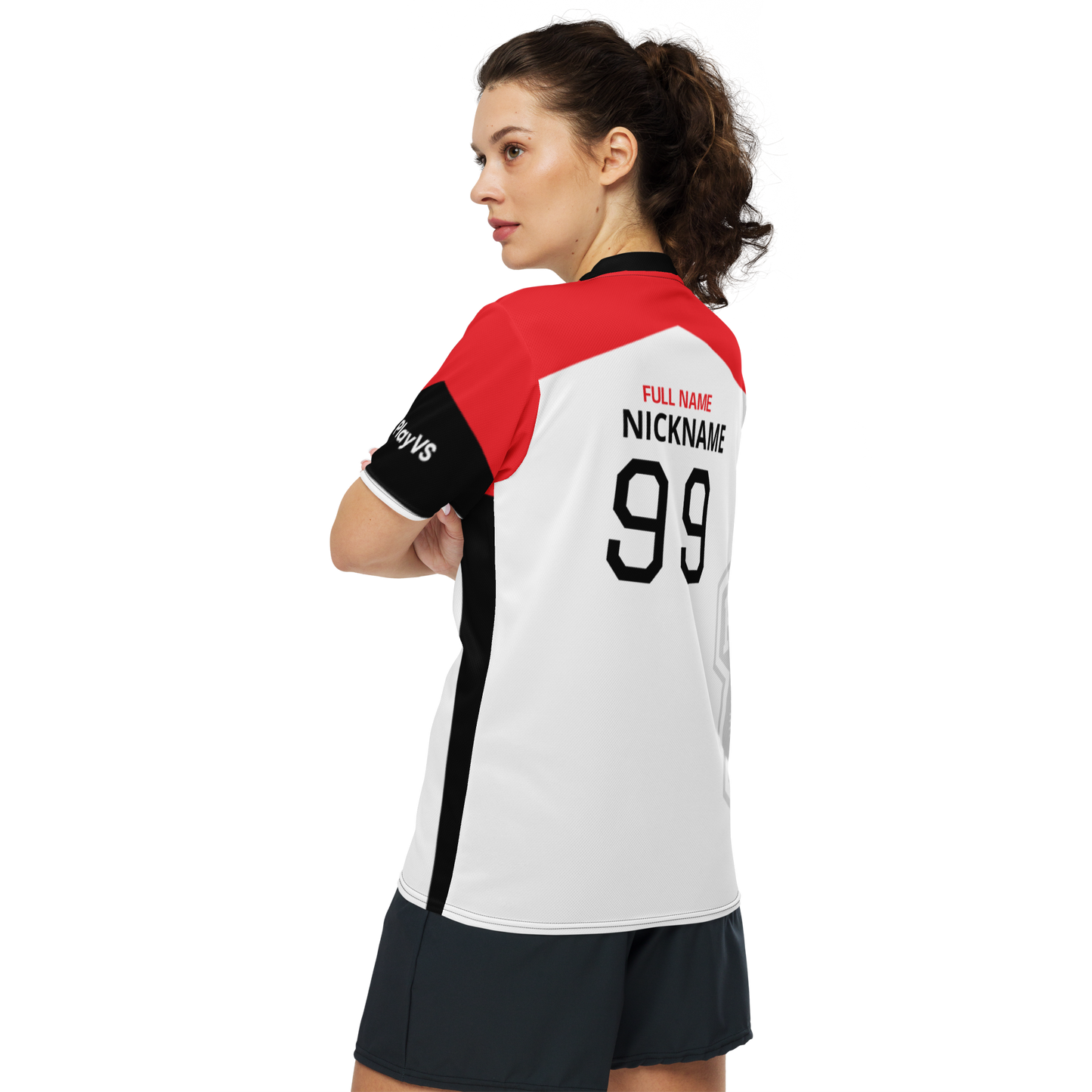 Looking for the perfect sports jersey? We have you covered—made of 100% recycled polyester fabric, this shirt is breathable, moisture-wicking, and has a double-layered v-neck collar that creates a premium look.