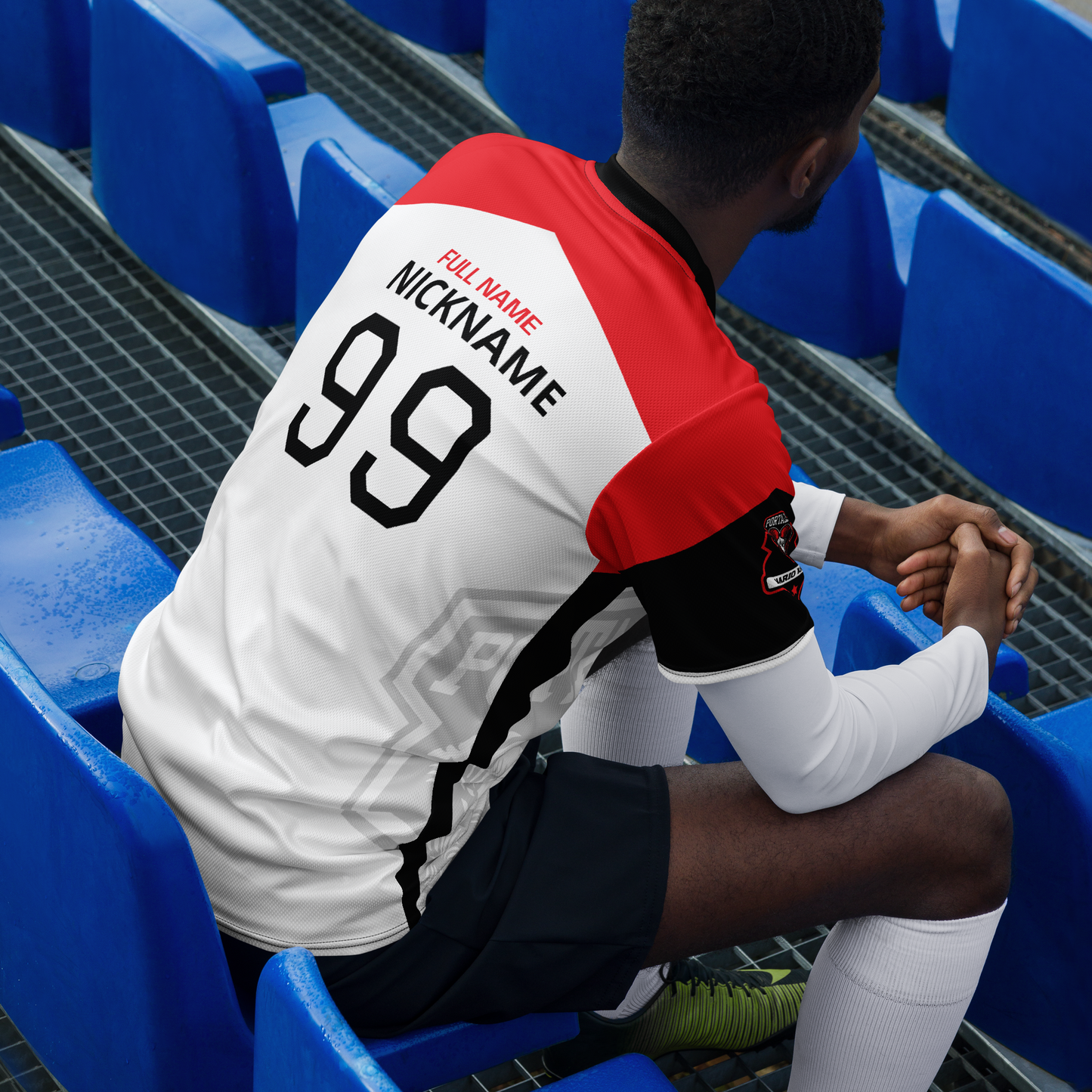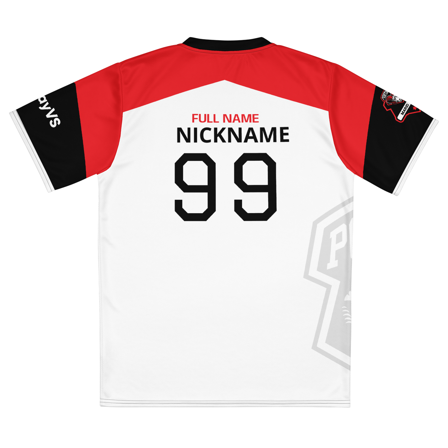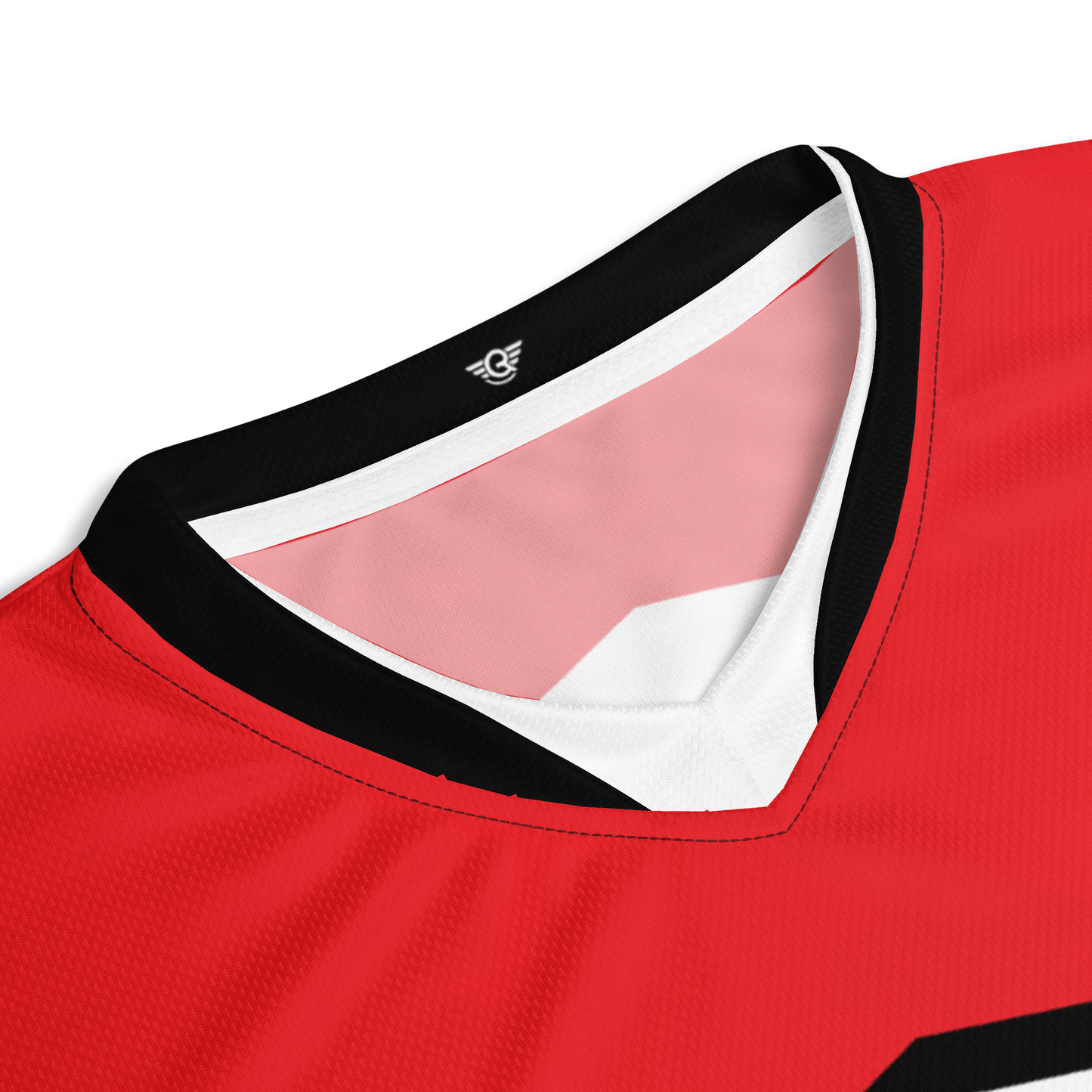 Looking for the perfect sports jersey? We have you covered—made of 100% recycled polyester fabric, this shirt is breathable, moisture-wicking, and has a double-layered v-neck collar that creates a premium look.