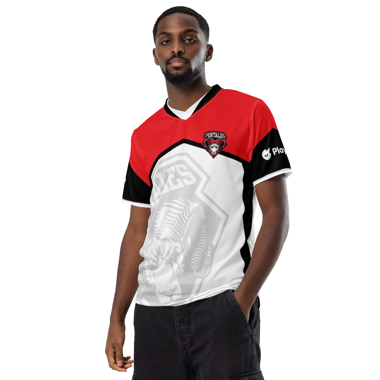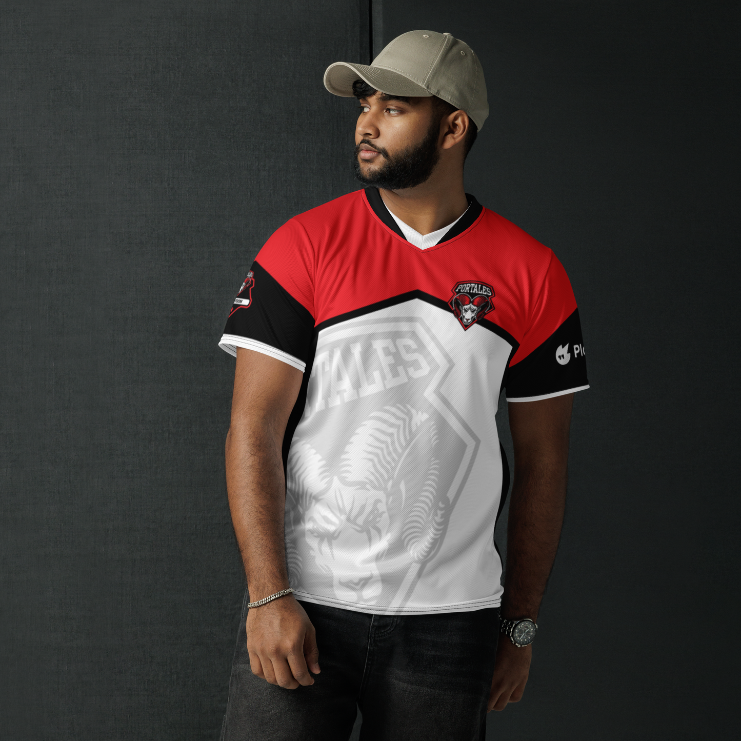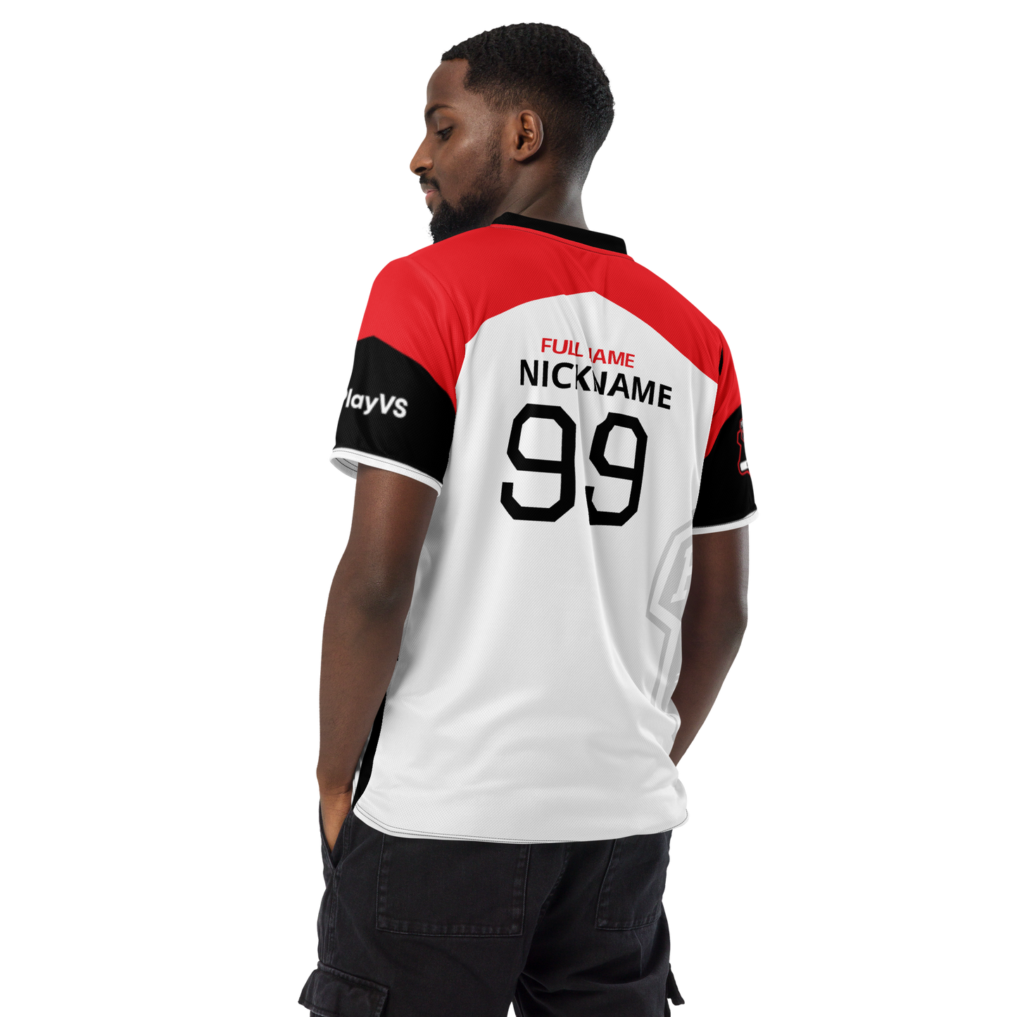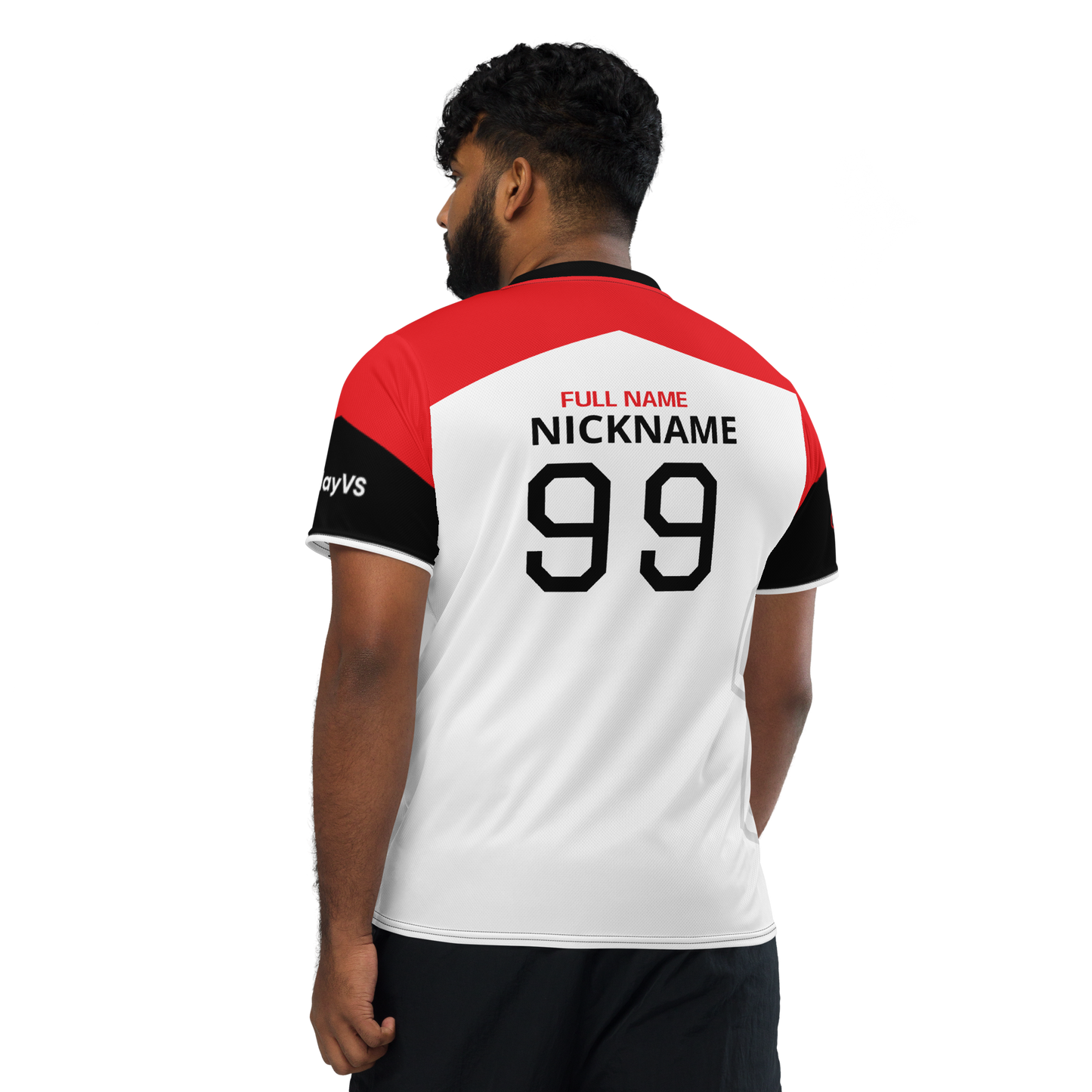 Looking for the perfect sports jersey? We have you covered—made of 100% recycled polyester fabric, this shirt is breathable, moisture-wicking, and has a double-layered v-neck collar that creates a premium look.
