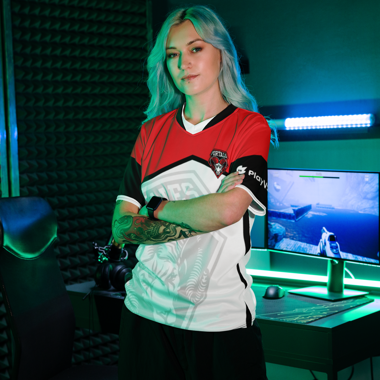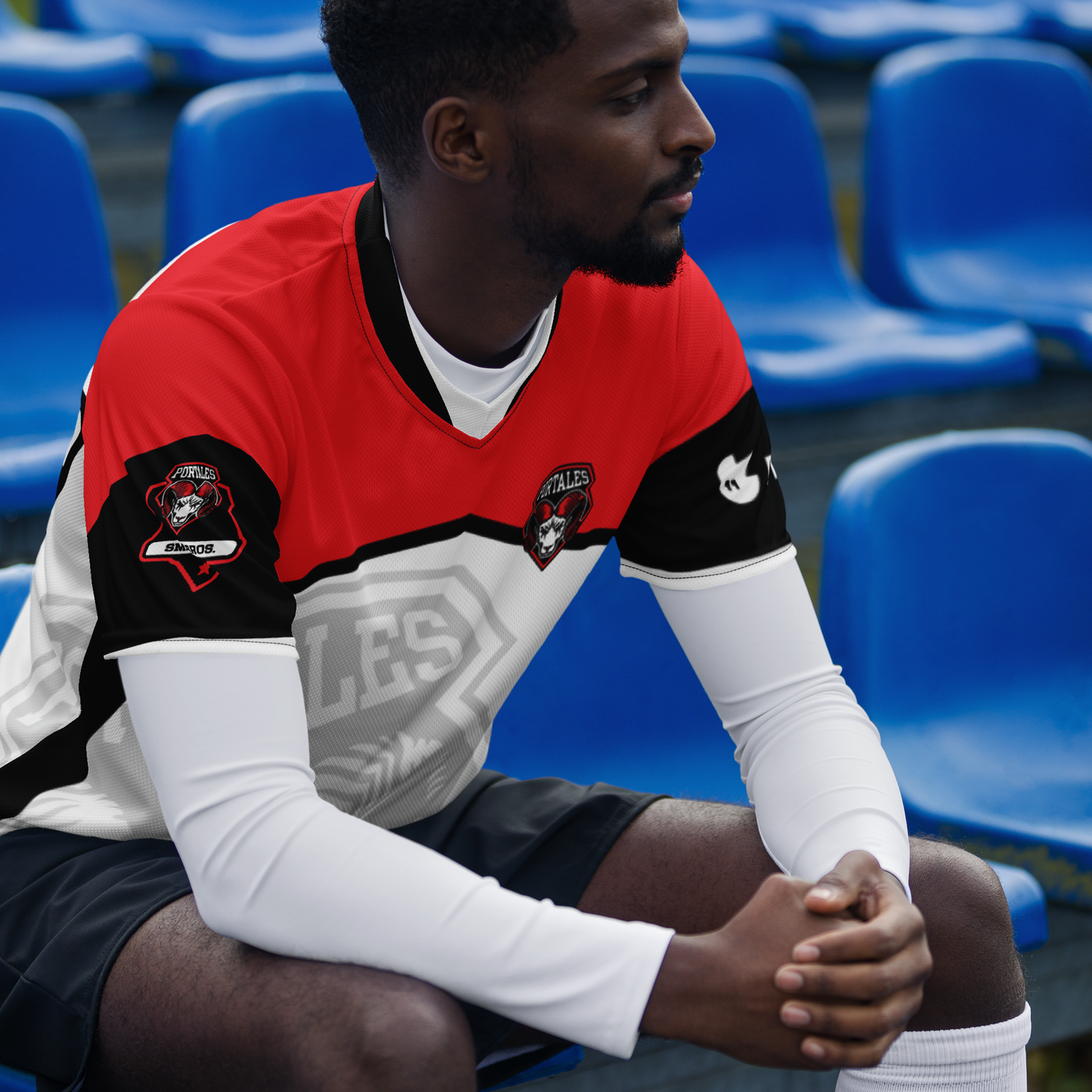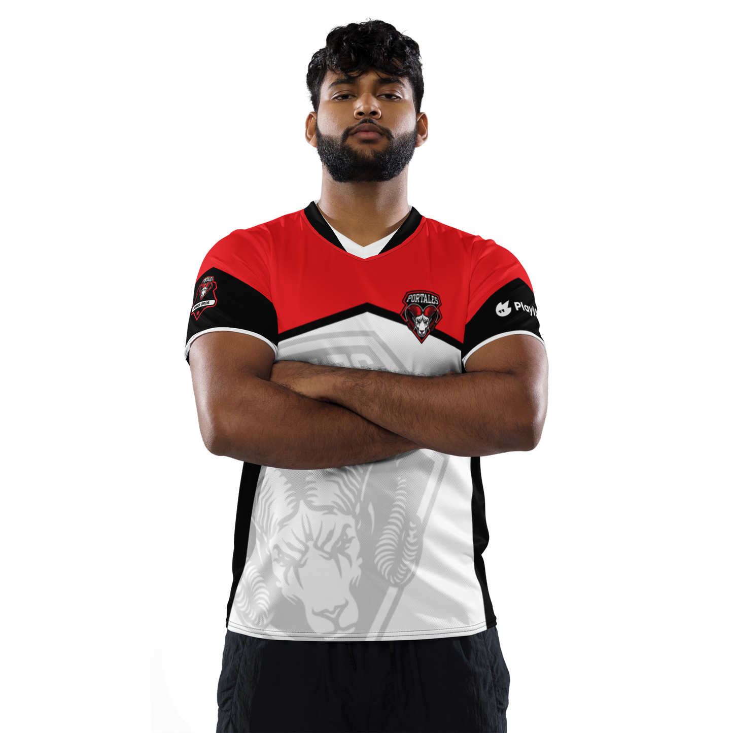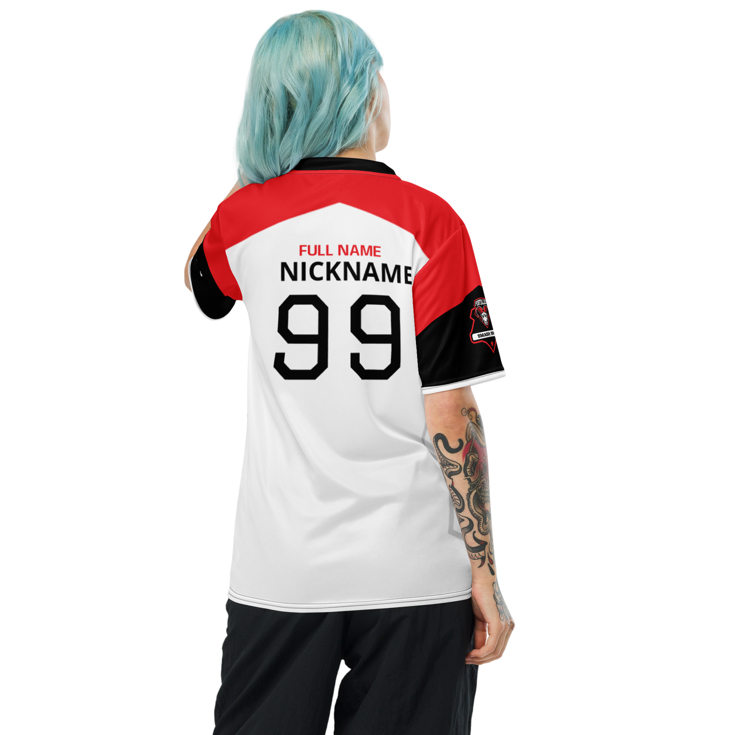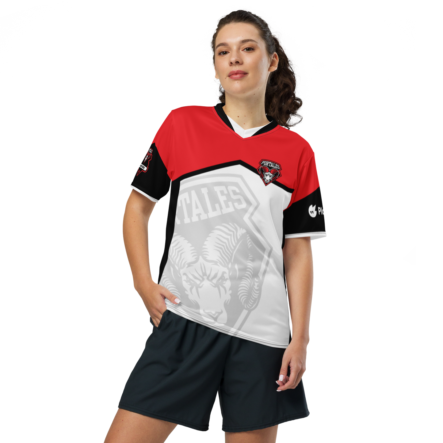 Looking for the perfect sports jersey? We have you covered—made of 100% recycled polyester fabric, this shirt is breathable, moisture-wicking, and has a double-layered v-neck collar that creates a premium look.