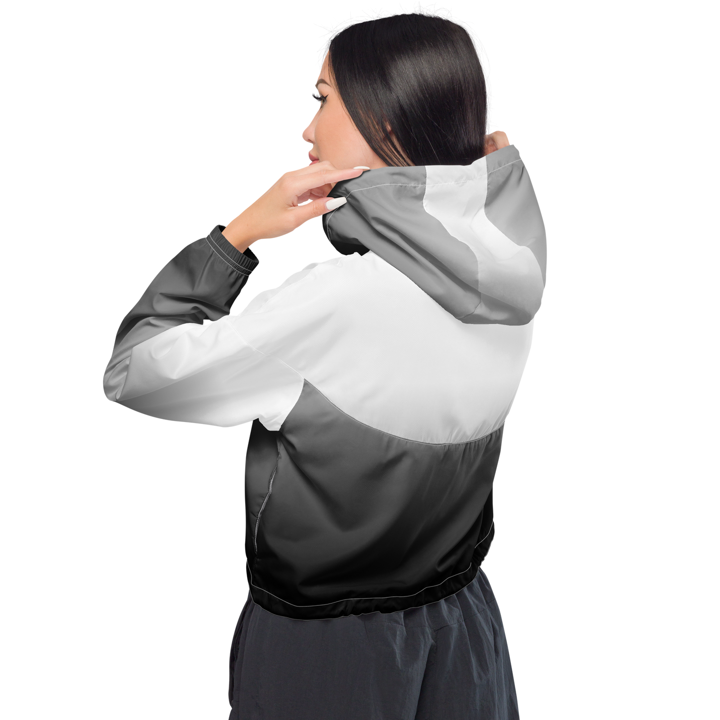 Hike in style without the rain getting in the way—this cropped windbreaker is lightweight, waterproof, and suitable for every kind of adventure. Features include side-slit pockets, breathable mesh lining, and adjustable drawcords on the hood and waist to support all your stylish outdoor looks.