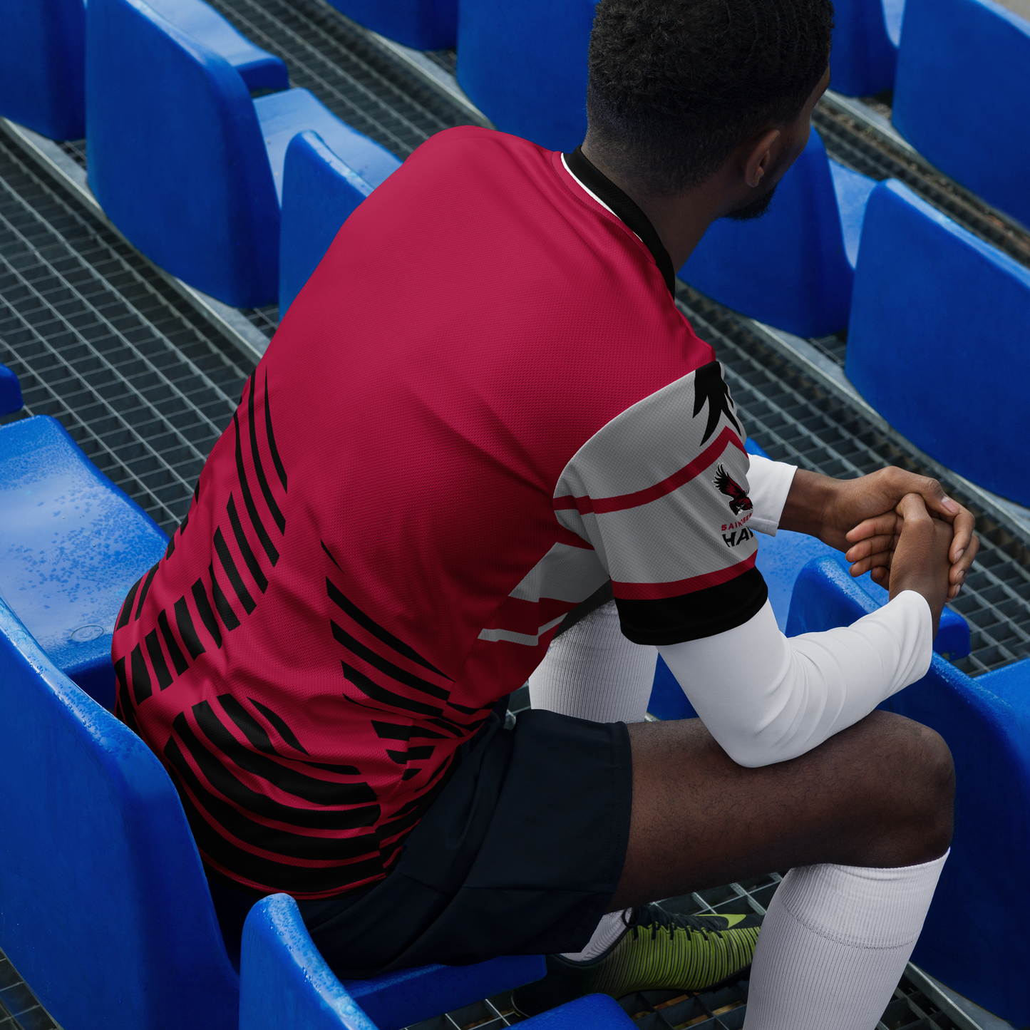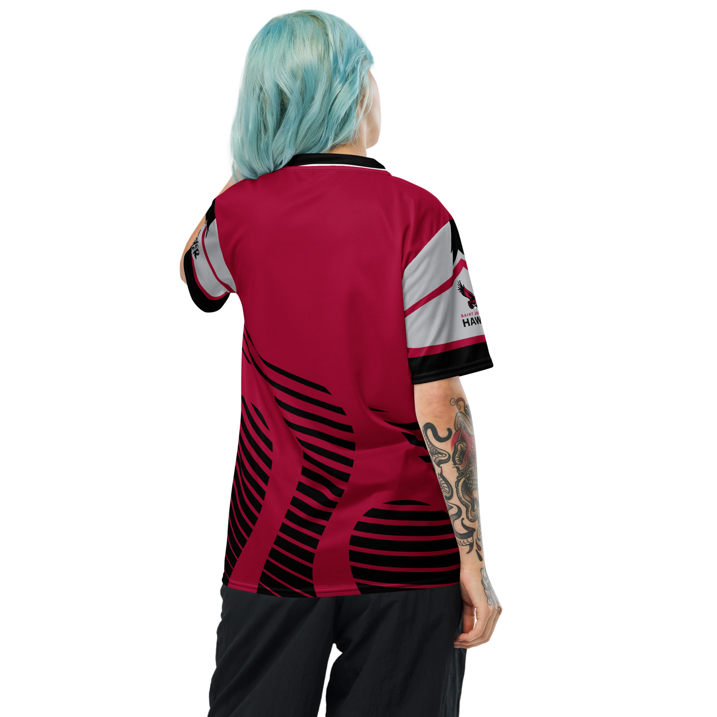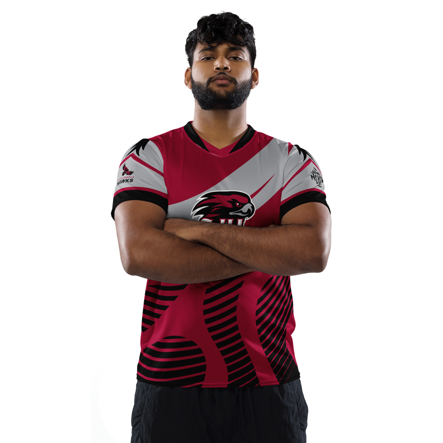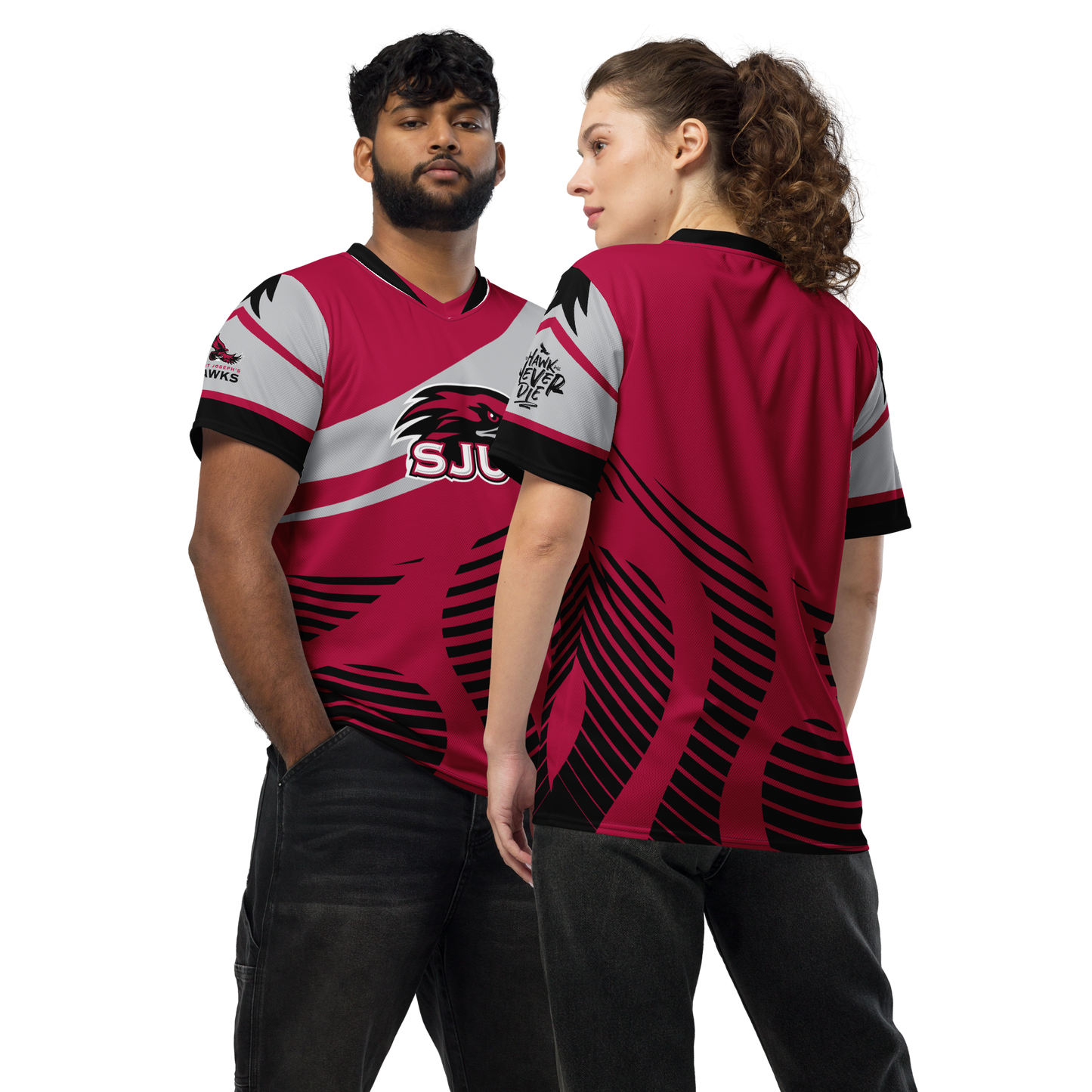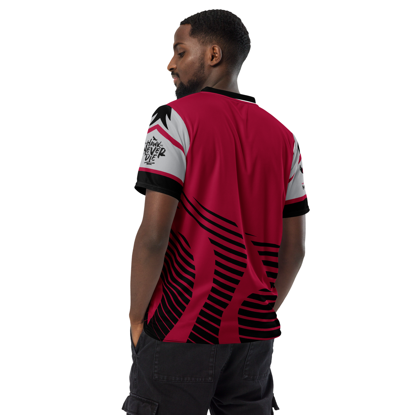 Looking for the perfect sports jersey? We have you covered—made of 100% recycled polyester fabric, this shirt is breathable, moisture-wicking, and has a double-layered v-neck collar that creates a premium look.