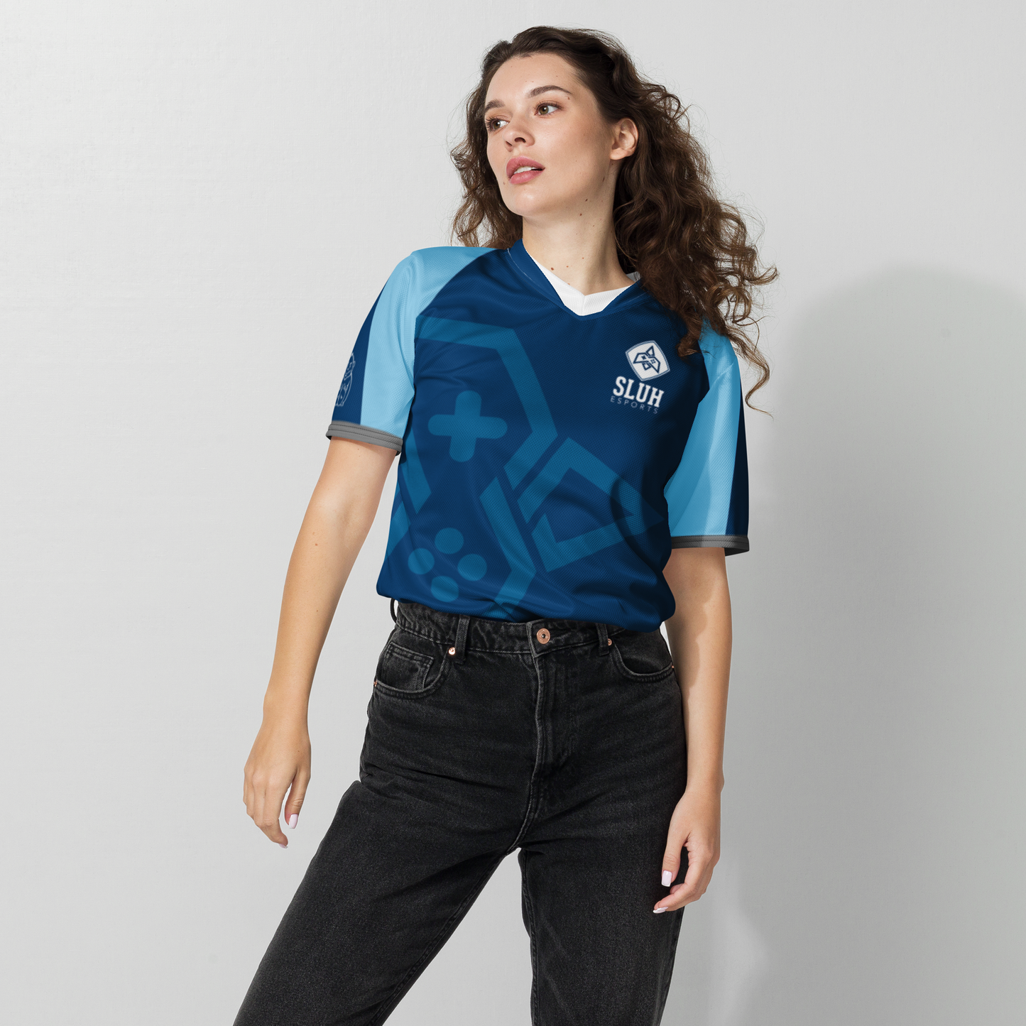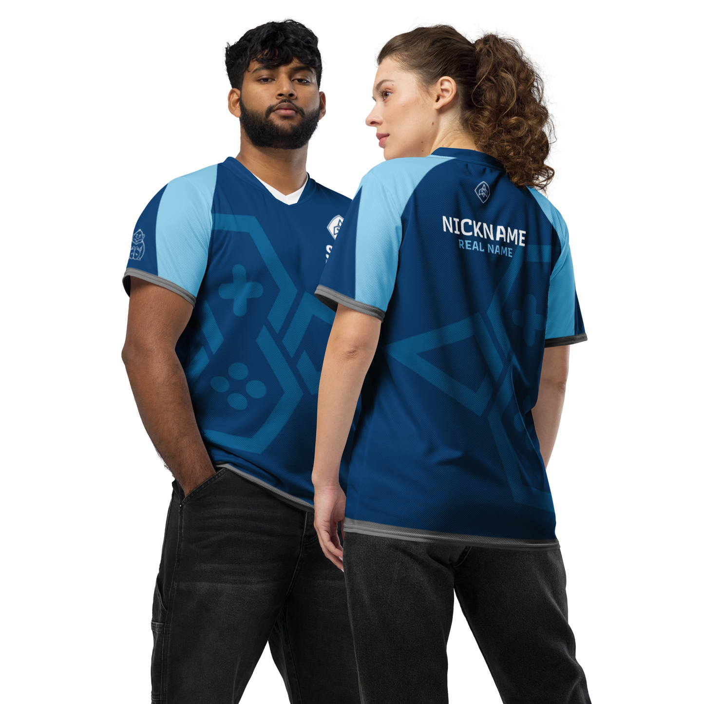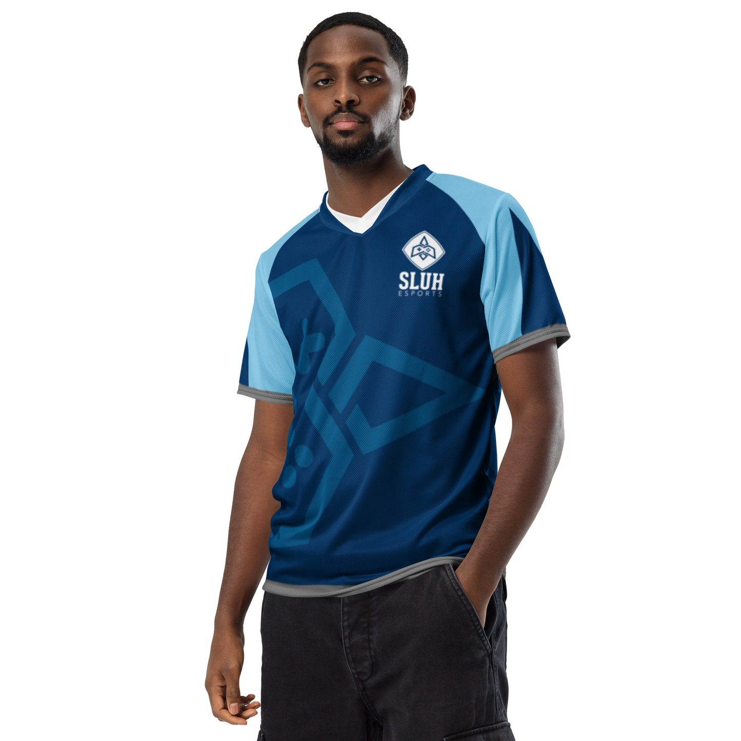 Looking for the perfect sports jersey? We have you covered—made of 100% recycled polyester fabric, this shirt is breathable, moisture-wicking, and has a double-layered v-neck collar that creates a premium look.