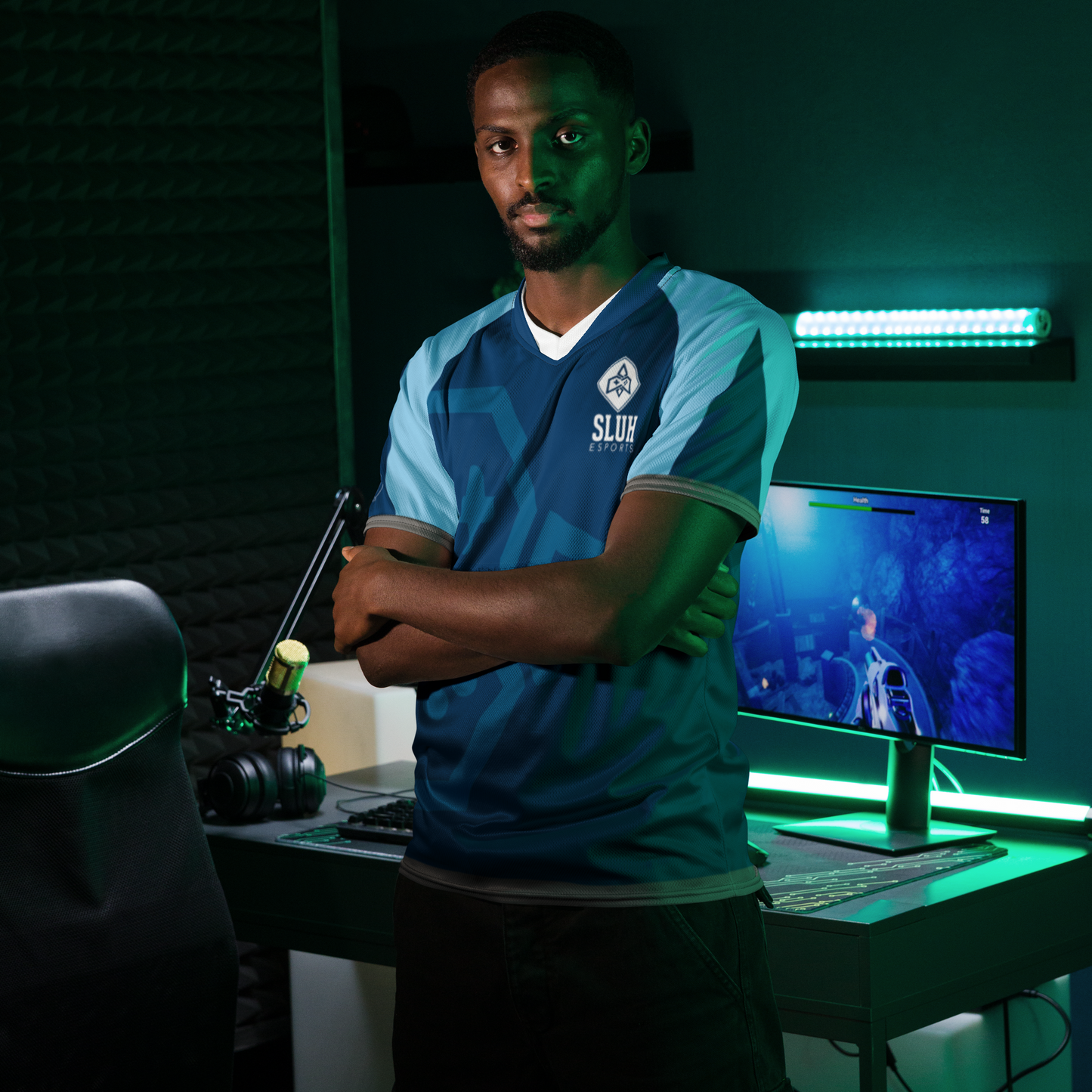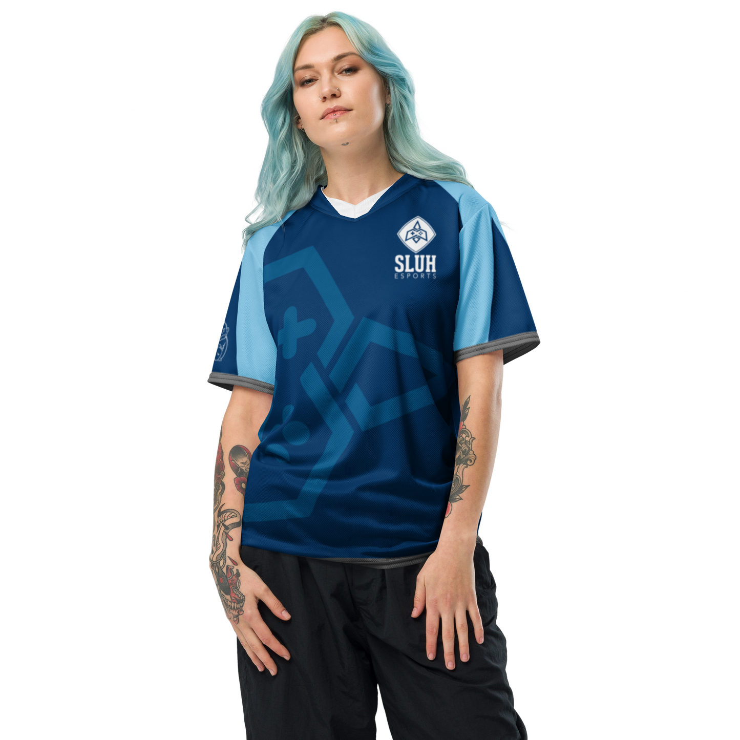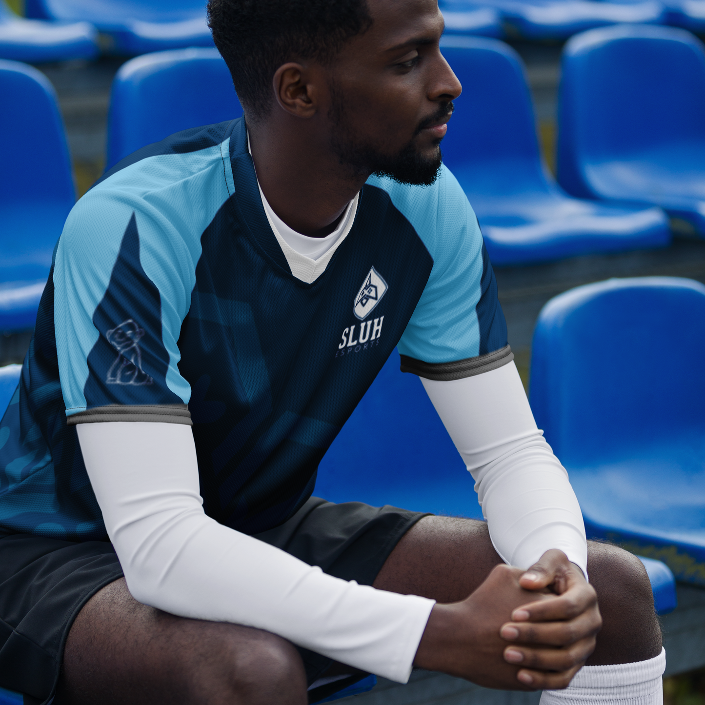 Looking for the perfect sports jersey? We have you covered—made of 100% recycled polyester fabric, this shirt is breathable, moisture-wicking, and has a double-layered v-neck collar that creates a premium look.