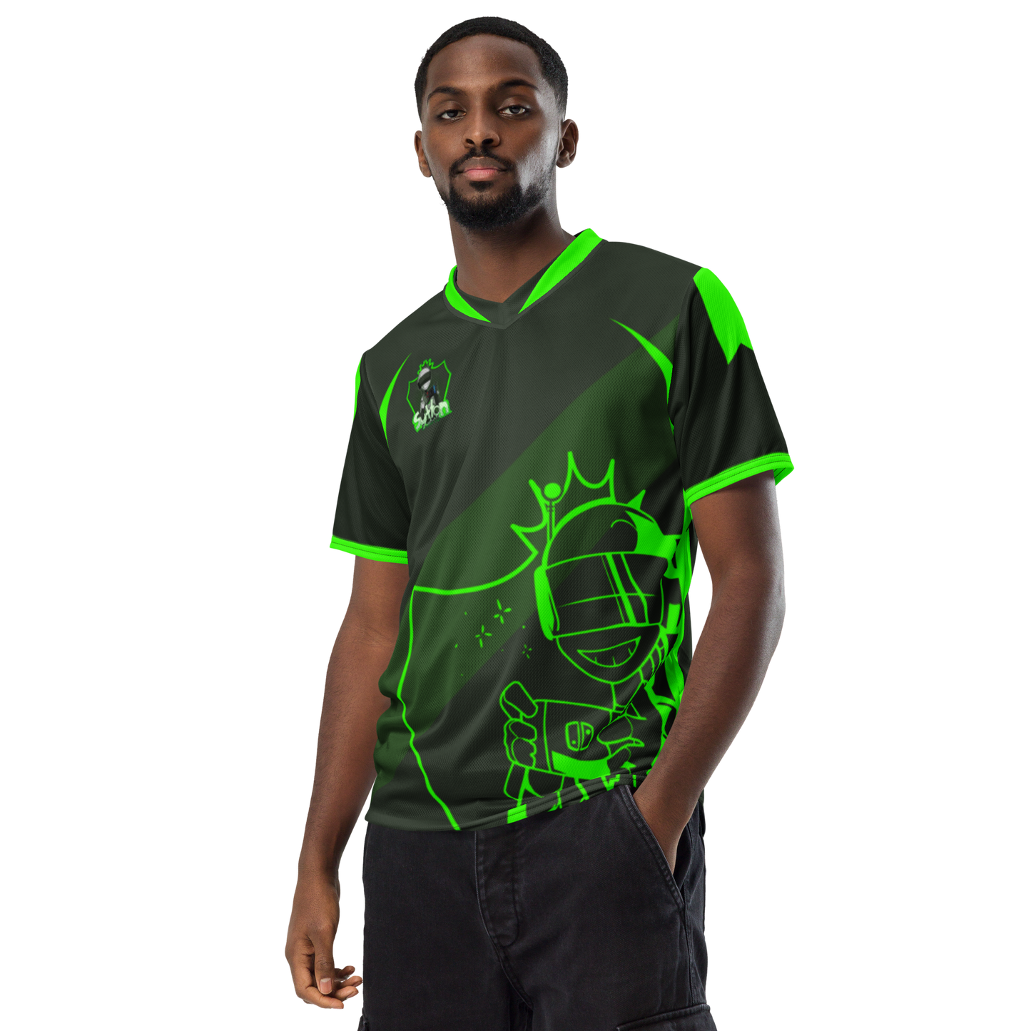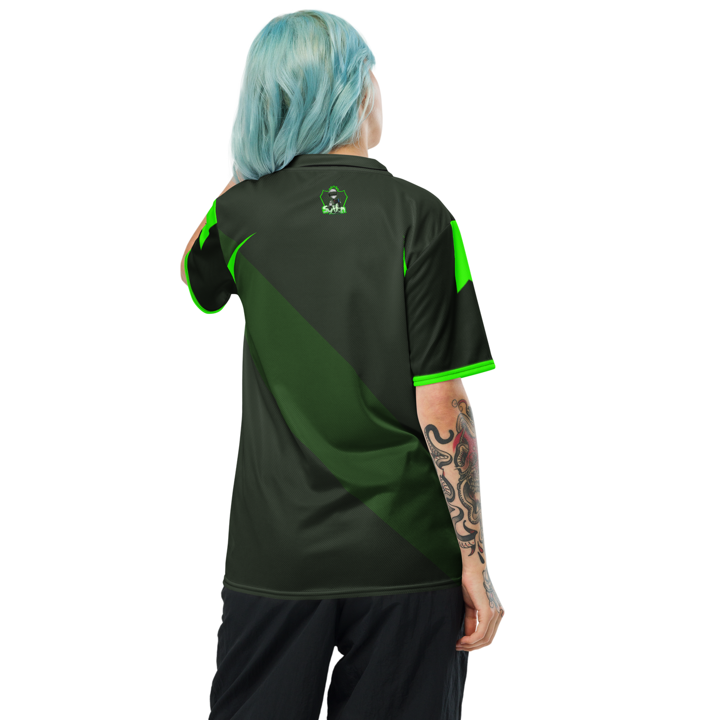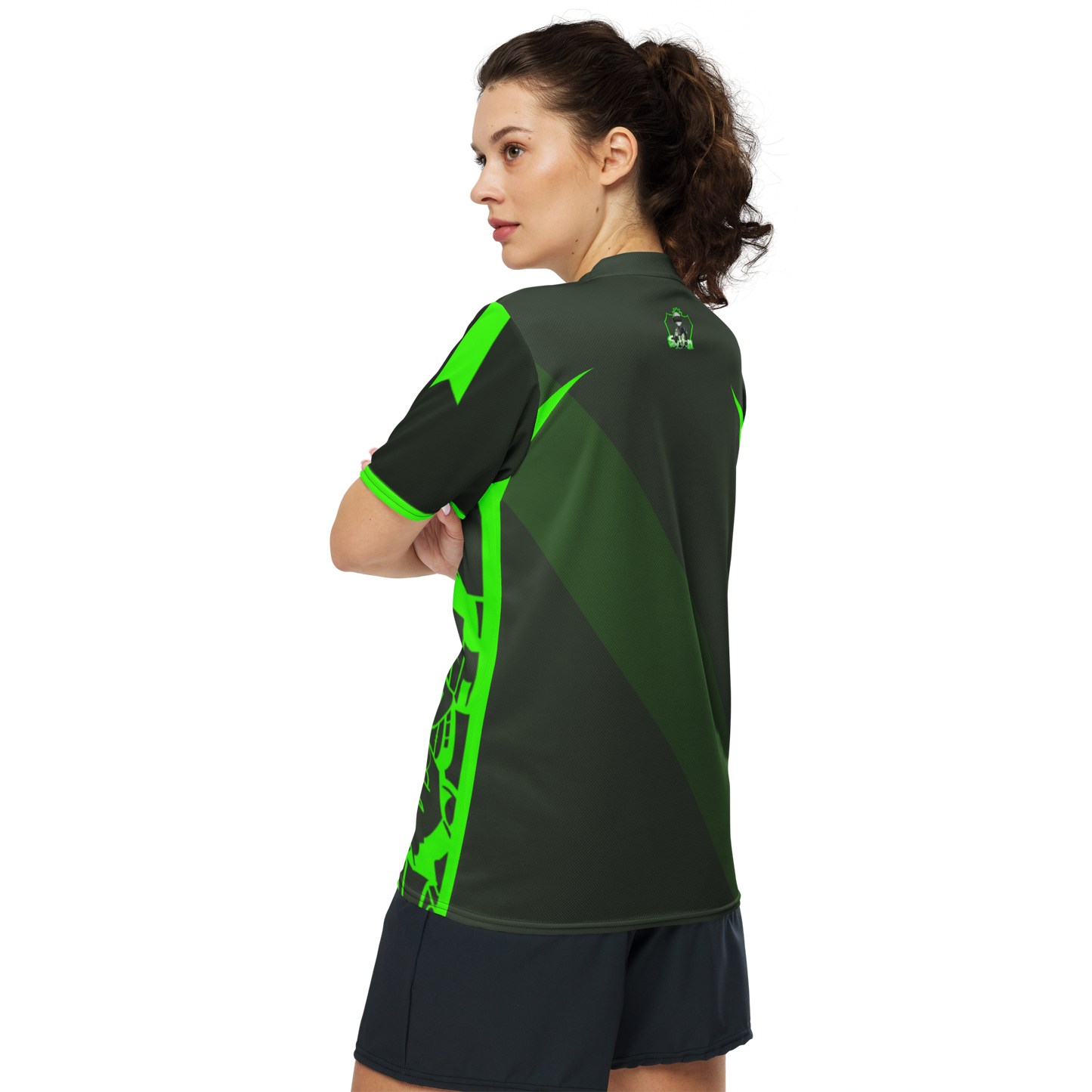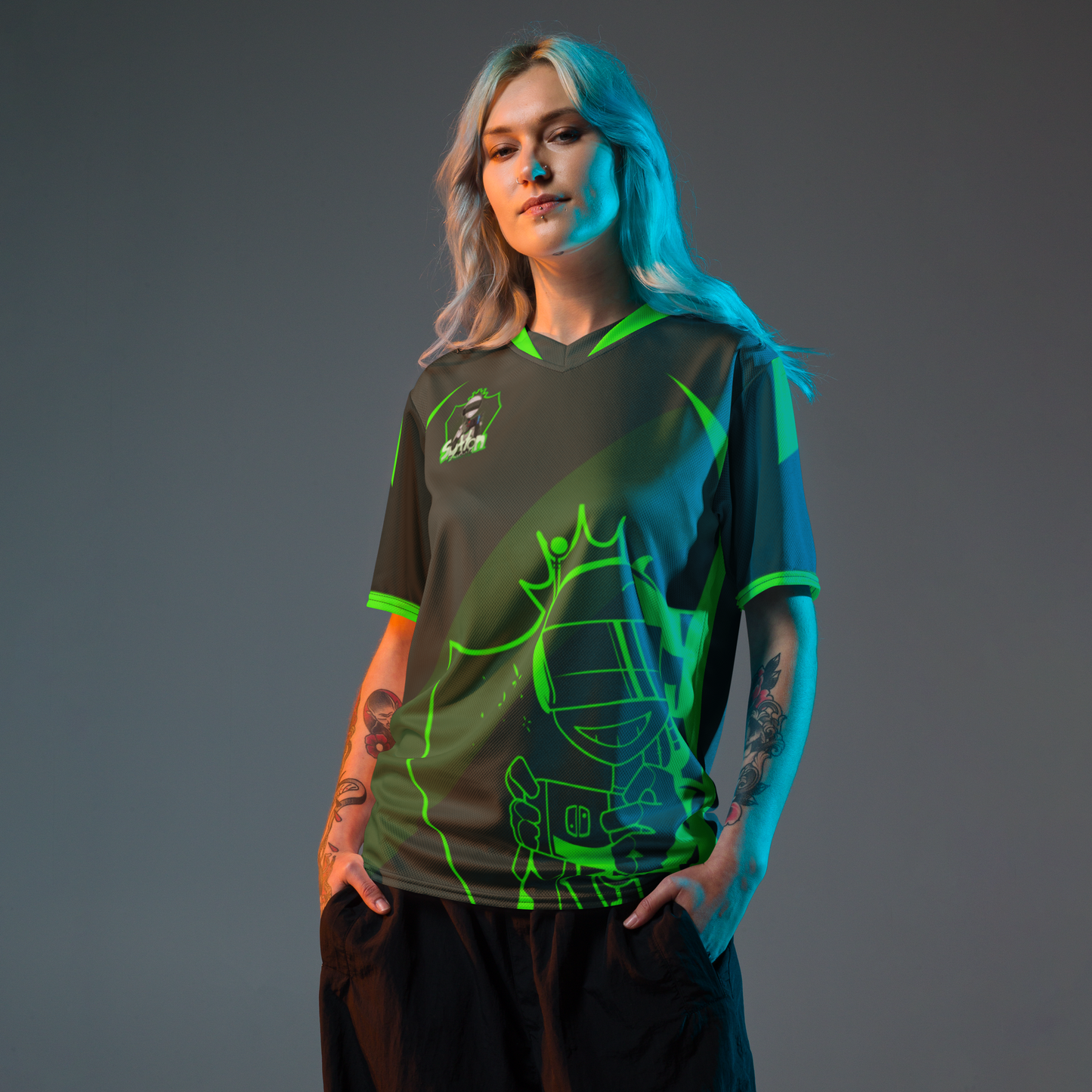 Looking for the perfect sports jersey? We have you covered—made of 100% recycled polyester fabric, this shirt is breathable, moisture-wicking, and has a double-layered v-neck collar that creates a premium look.
