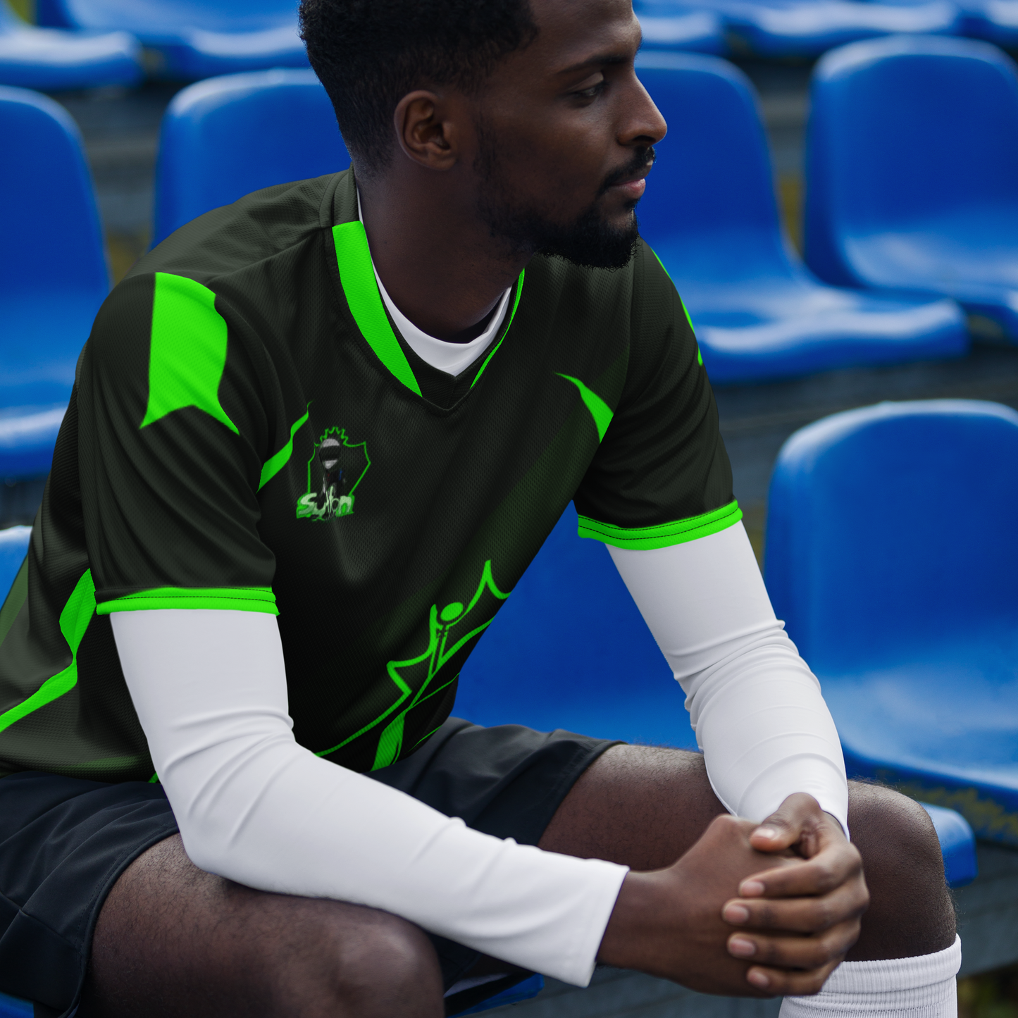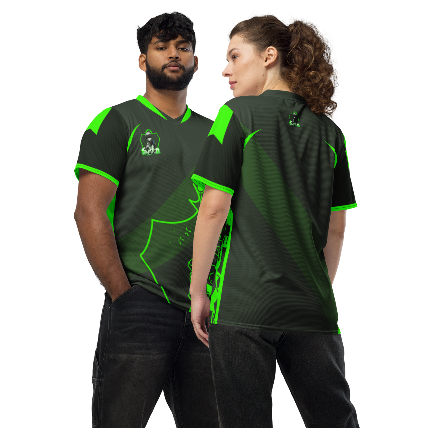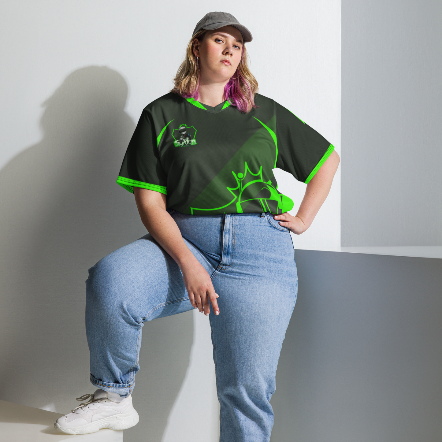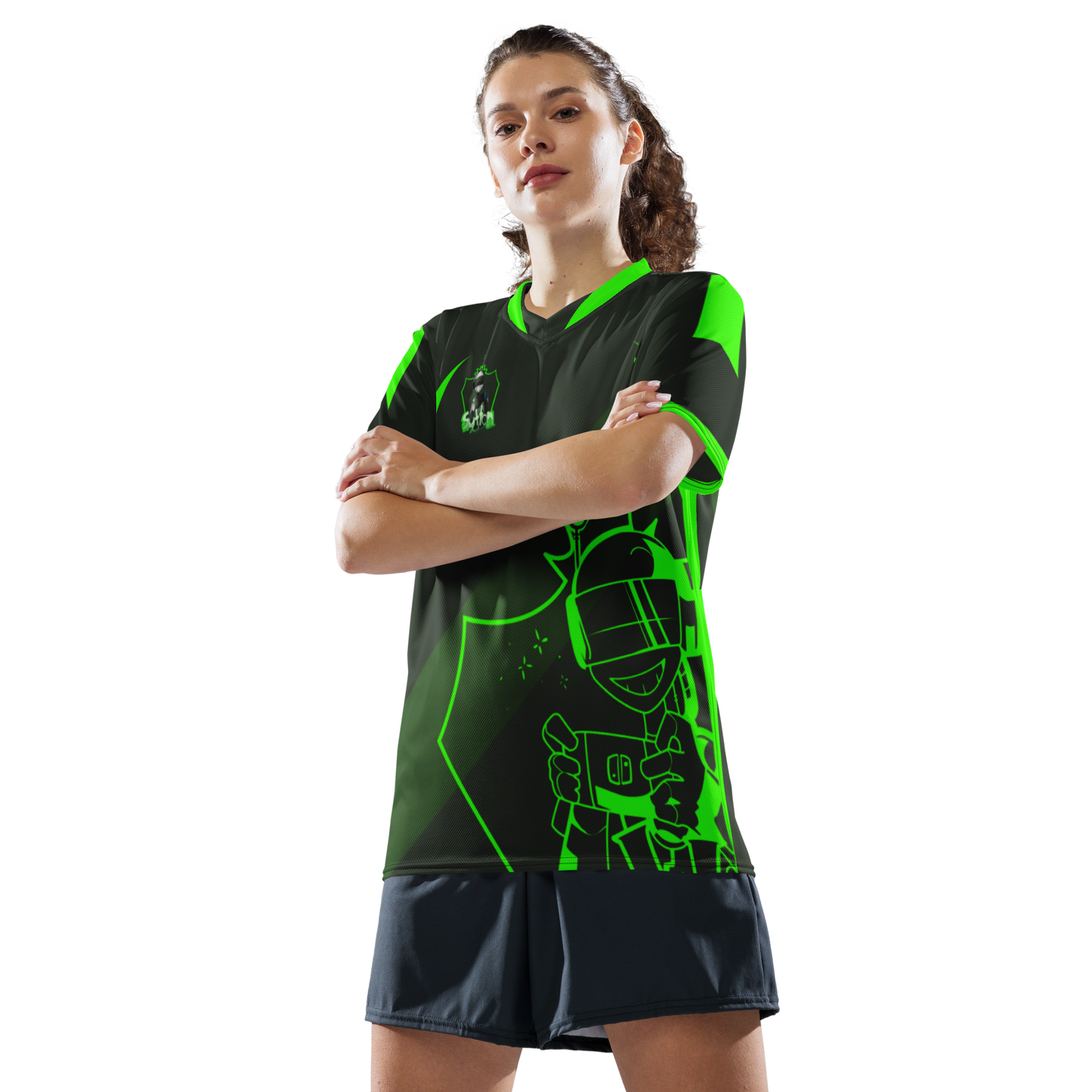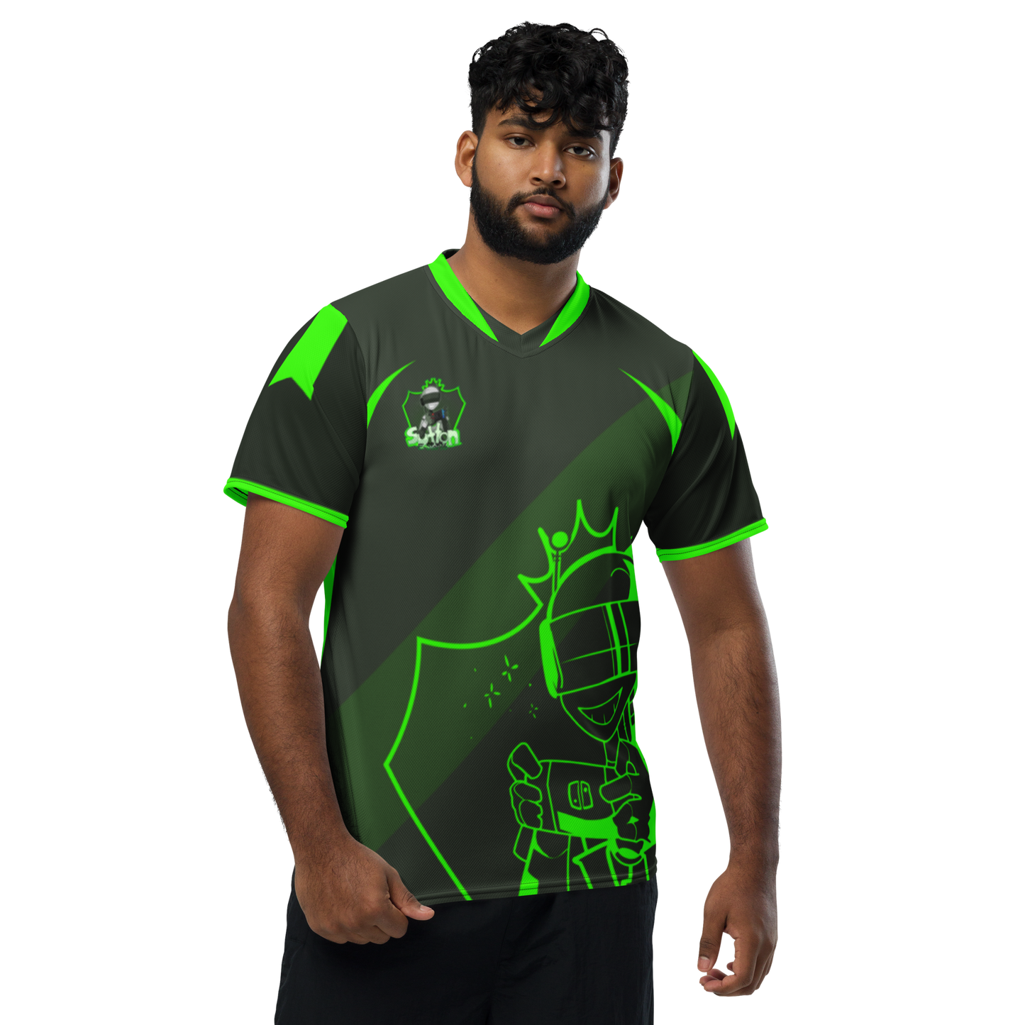 Looking for the perfect sports jersey? We have you covered—made of 100% recycled polyester fabric, this shirt is breathable, moisture-wicking, and has a double-layered v-neck collar that creates a premium look.