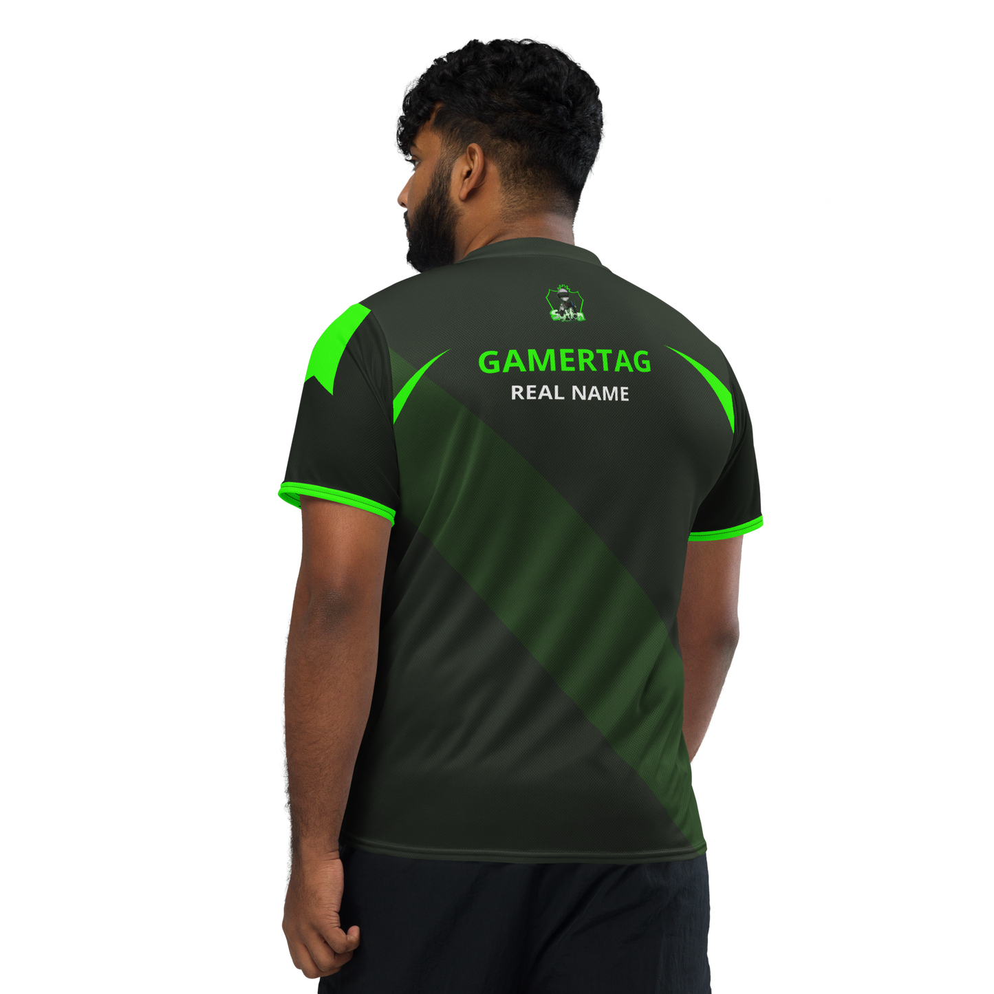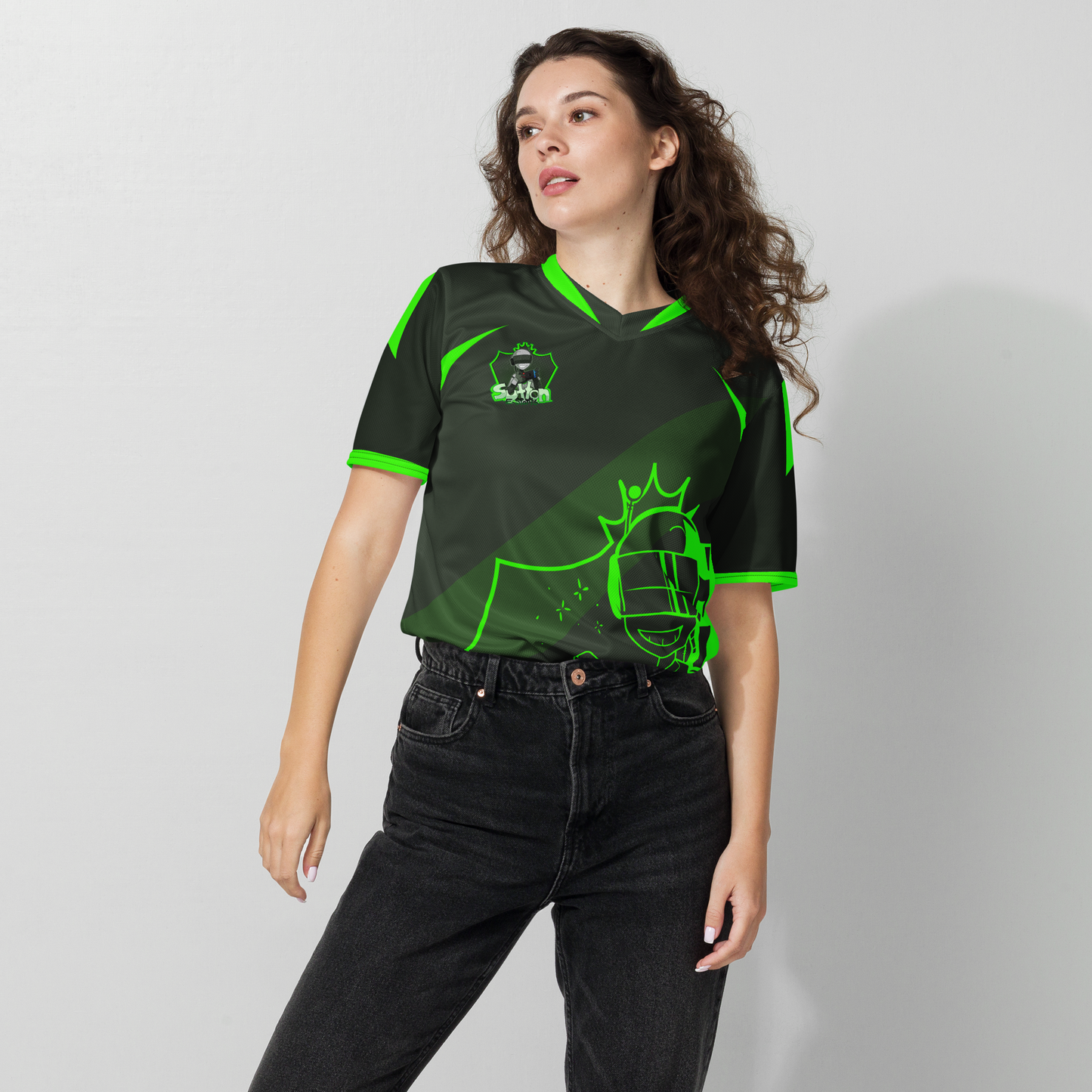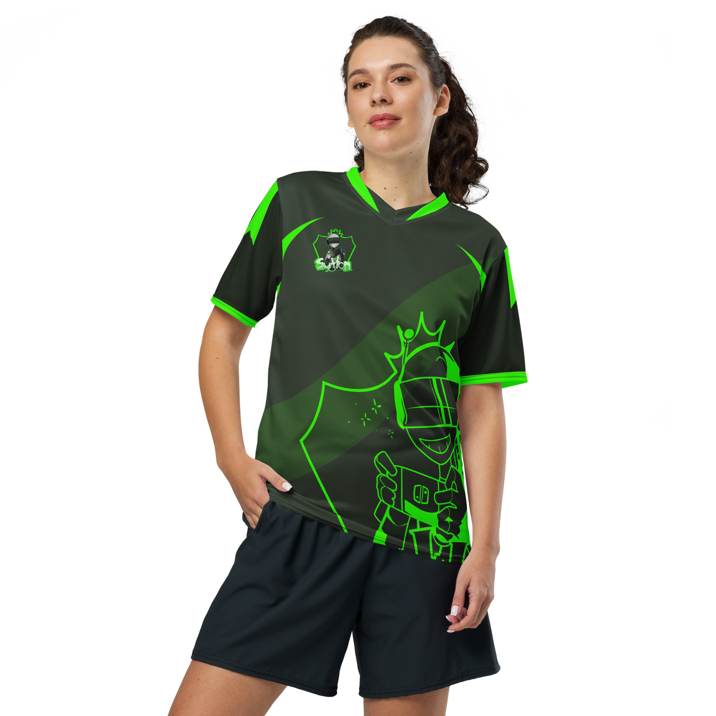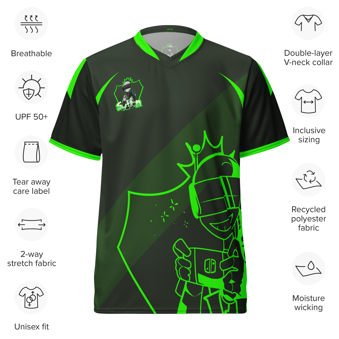 Looking for the perfect sports jersey? We have you covered—made of 100% recycled polyester fabric, this shirt is breathable, moisture-wicking, and has a double-layered v-neck collar that creates a premium look.
