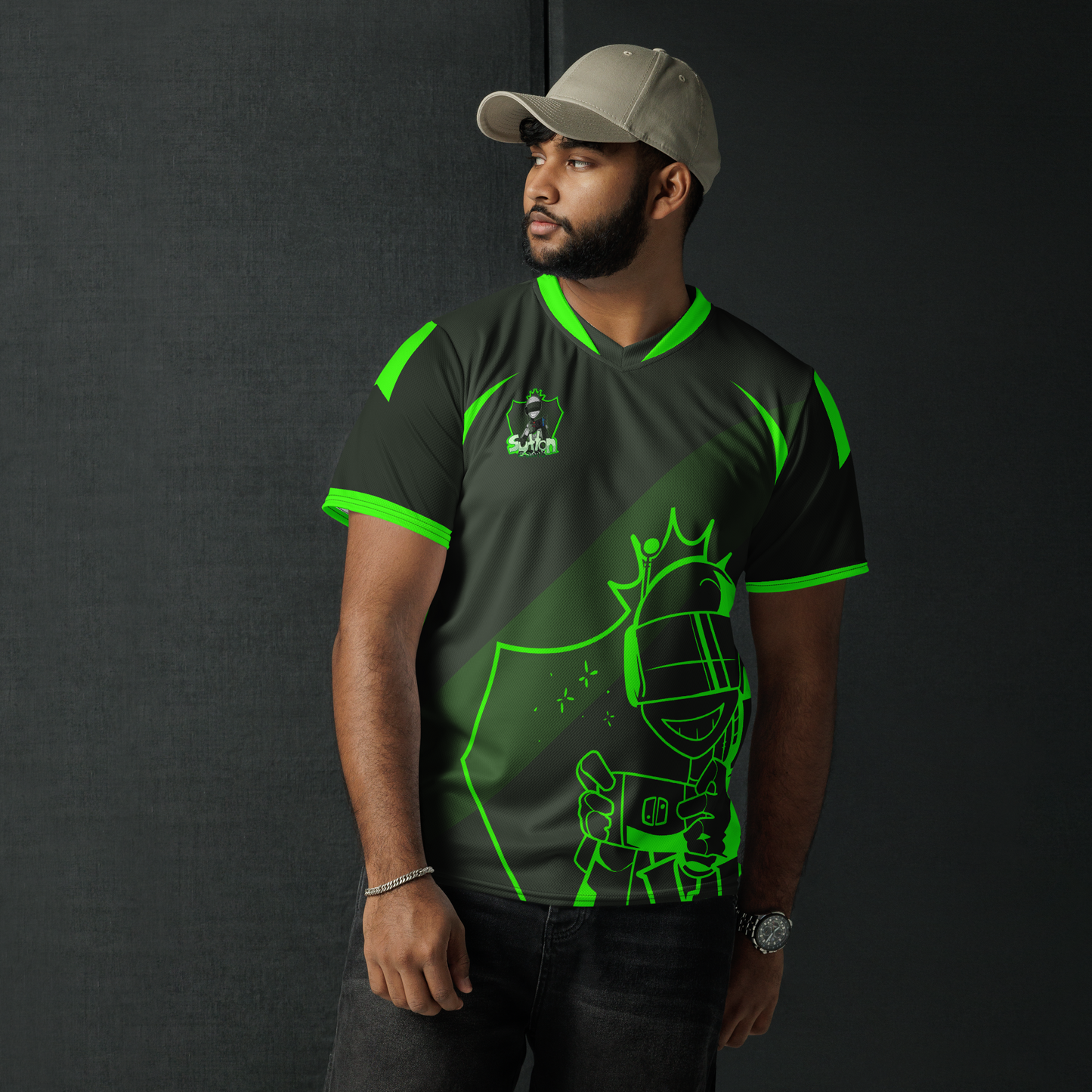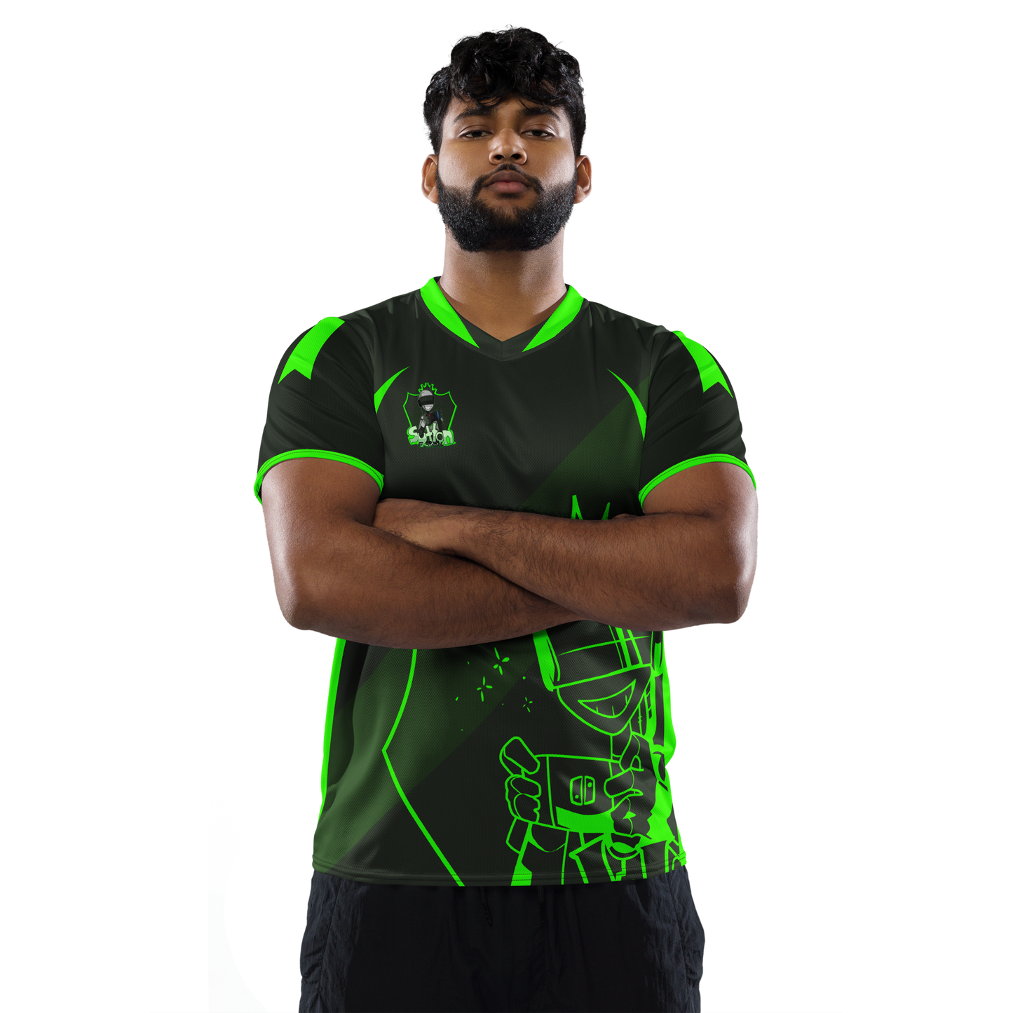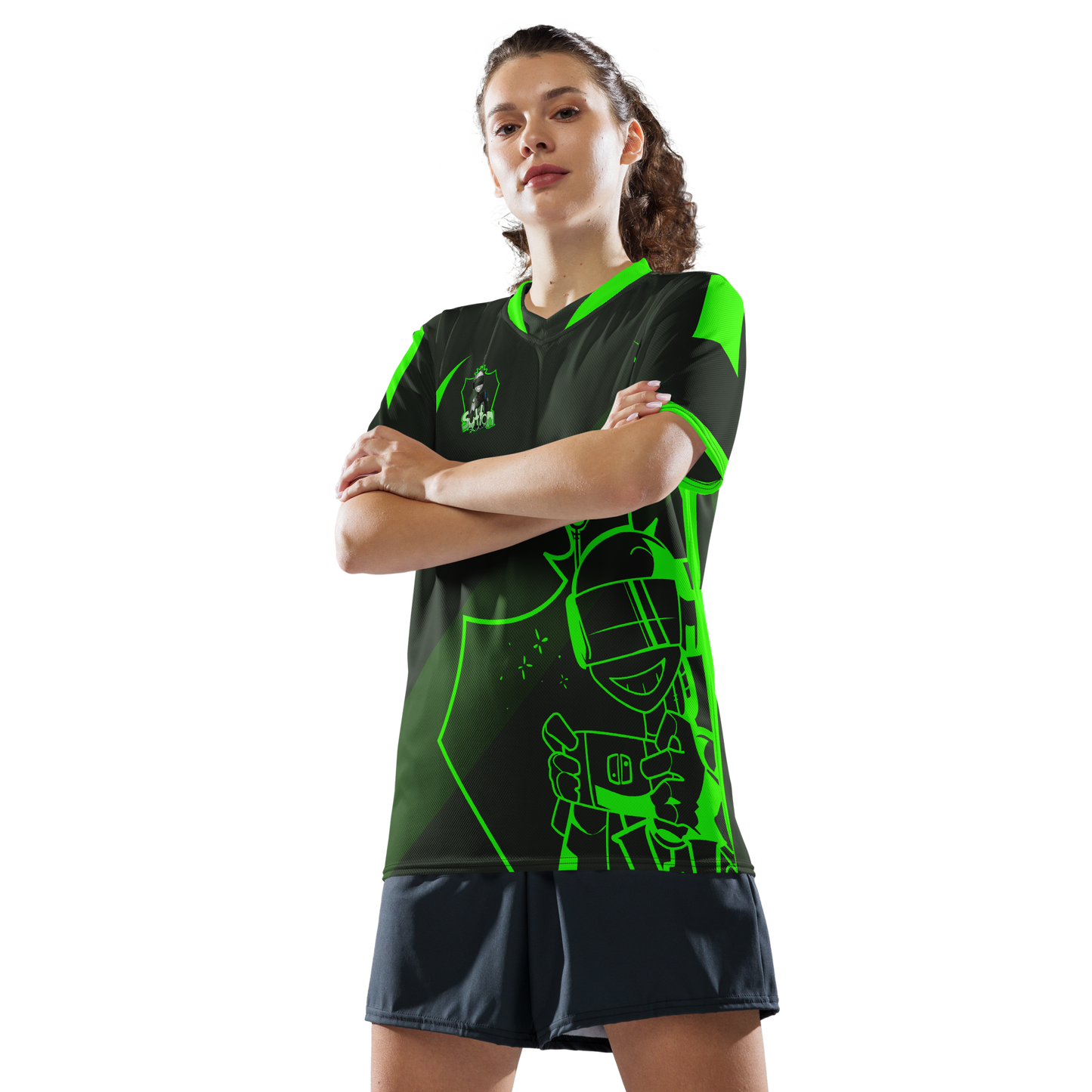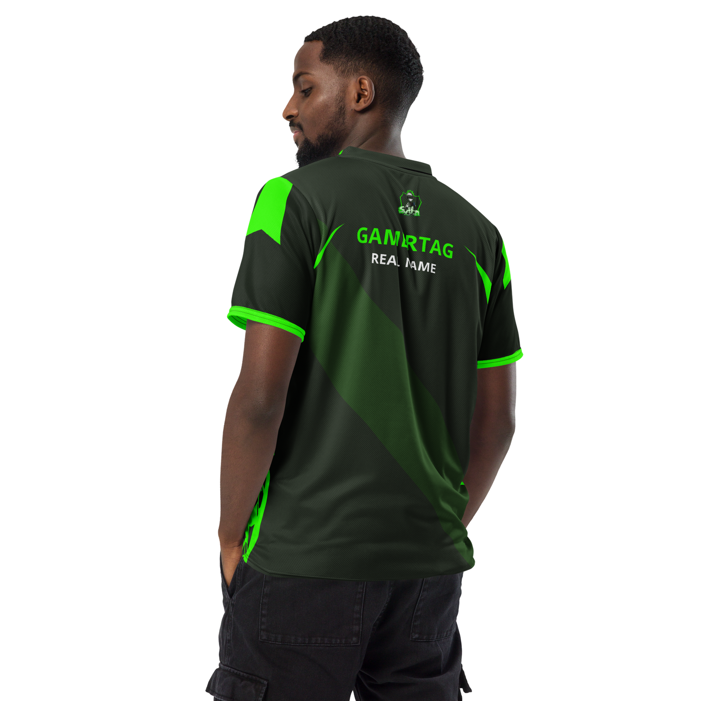 Looking for the perfect sports jersey? We have you covered—made of 100% recycled polyester fabric, this shirt is breathable, moisture-wicking, and has a double-layered v-neck collar that creates a premium look.