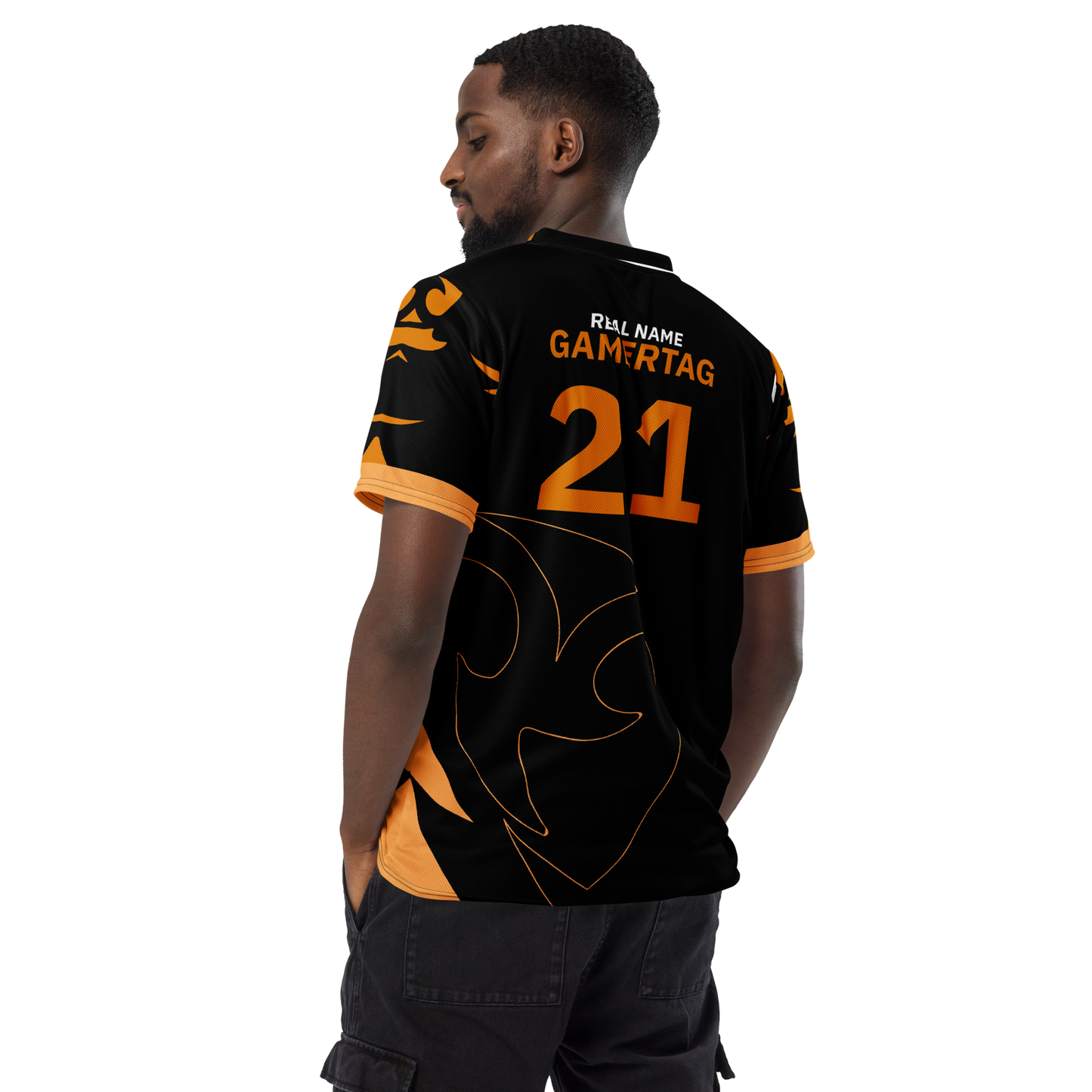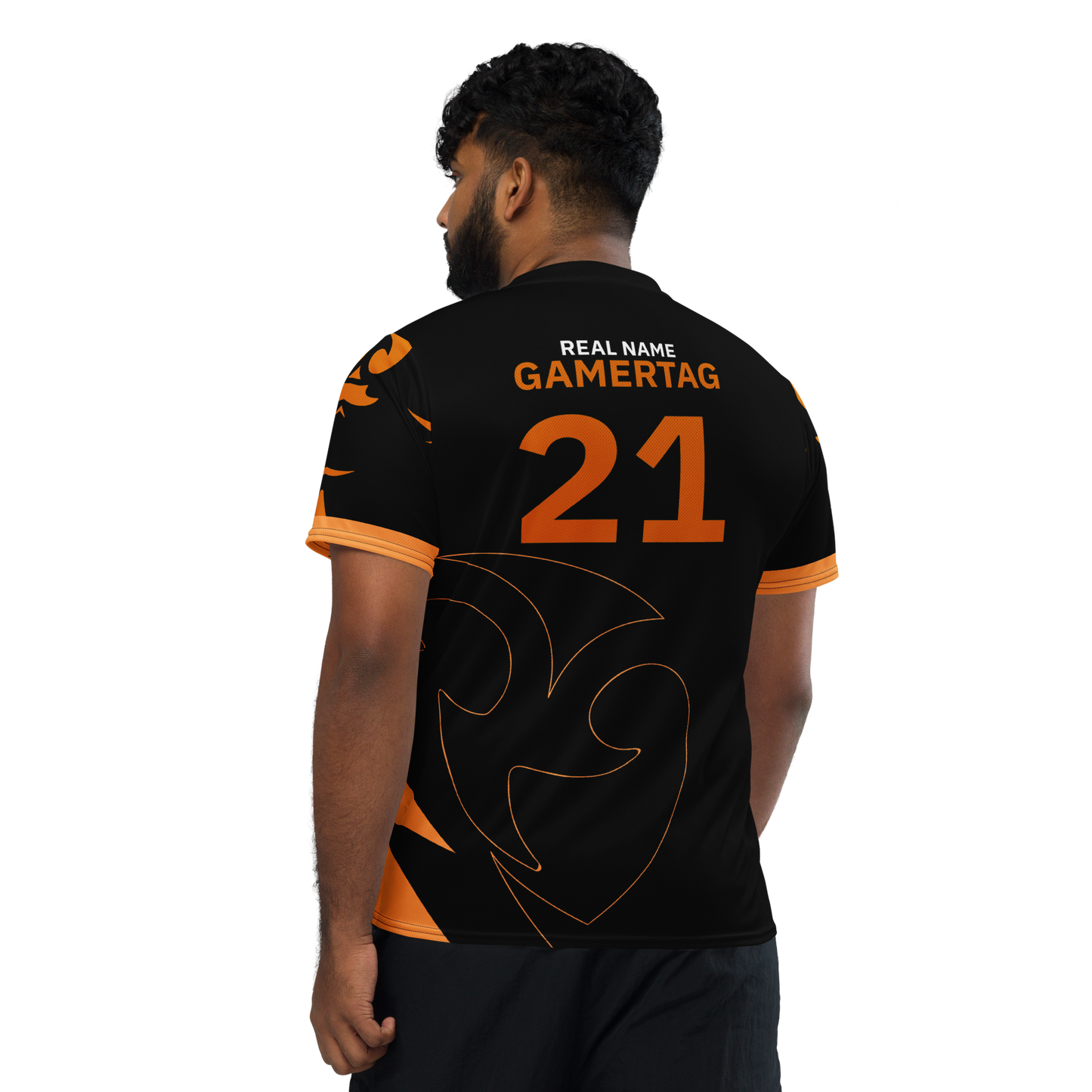 Looking for the perfect sports jersey? We have you covered—made of 100% recycled polyester fabric, this shirt is breathable, moisture-wicking, and has a double-layered v-neck collar that creates a premium look.
