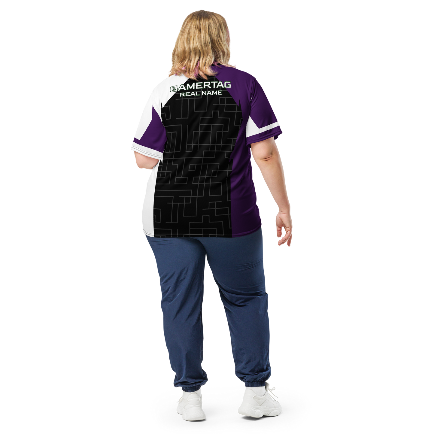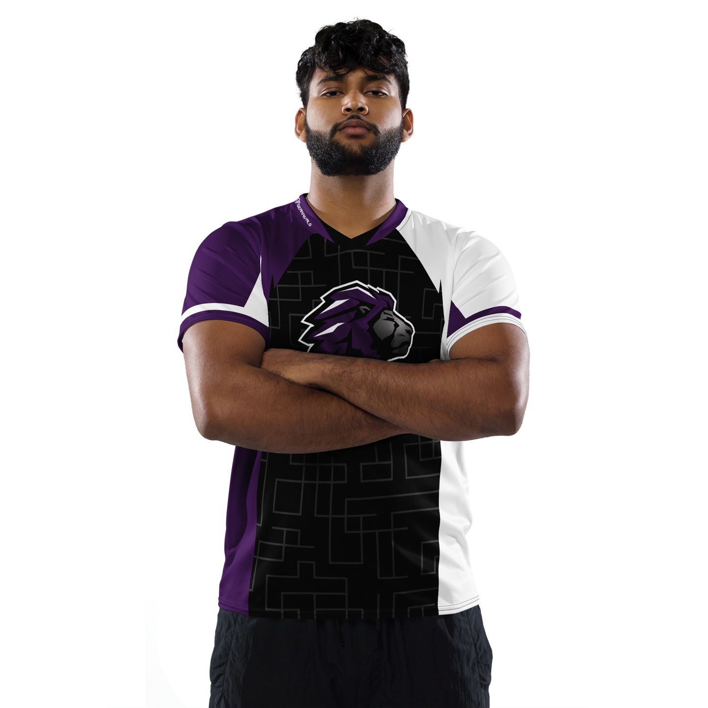 Looking for the perfect sports jersey? We have you covered—made of 100% recycled polyester fabric, this shirt is breathable, moisture-wicking, and has a double-layered v-neck collar that creates a premium look.