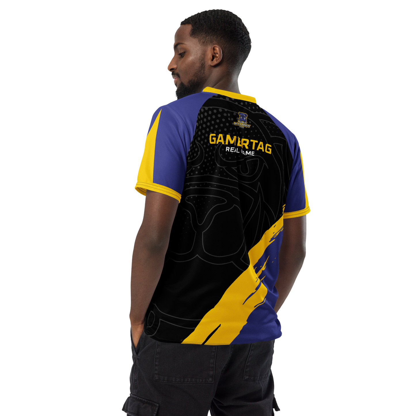 Looking for the perfect sports jersey? We have you covered—made of 100% recycled polyester fabric, this shirt is breathable, moisture-wicking, and has a double-layered v-neck collar that creates a premium look.