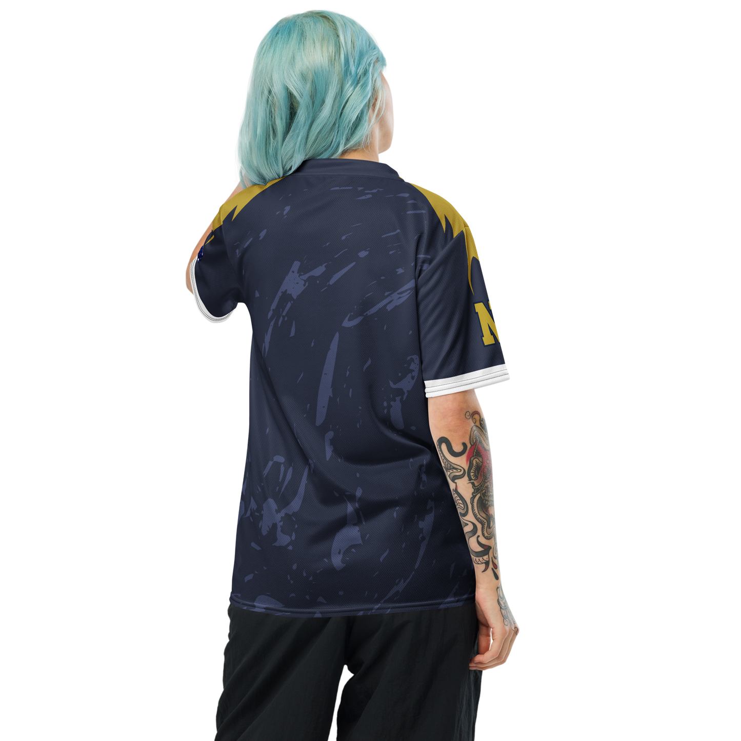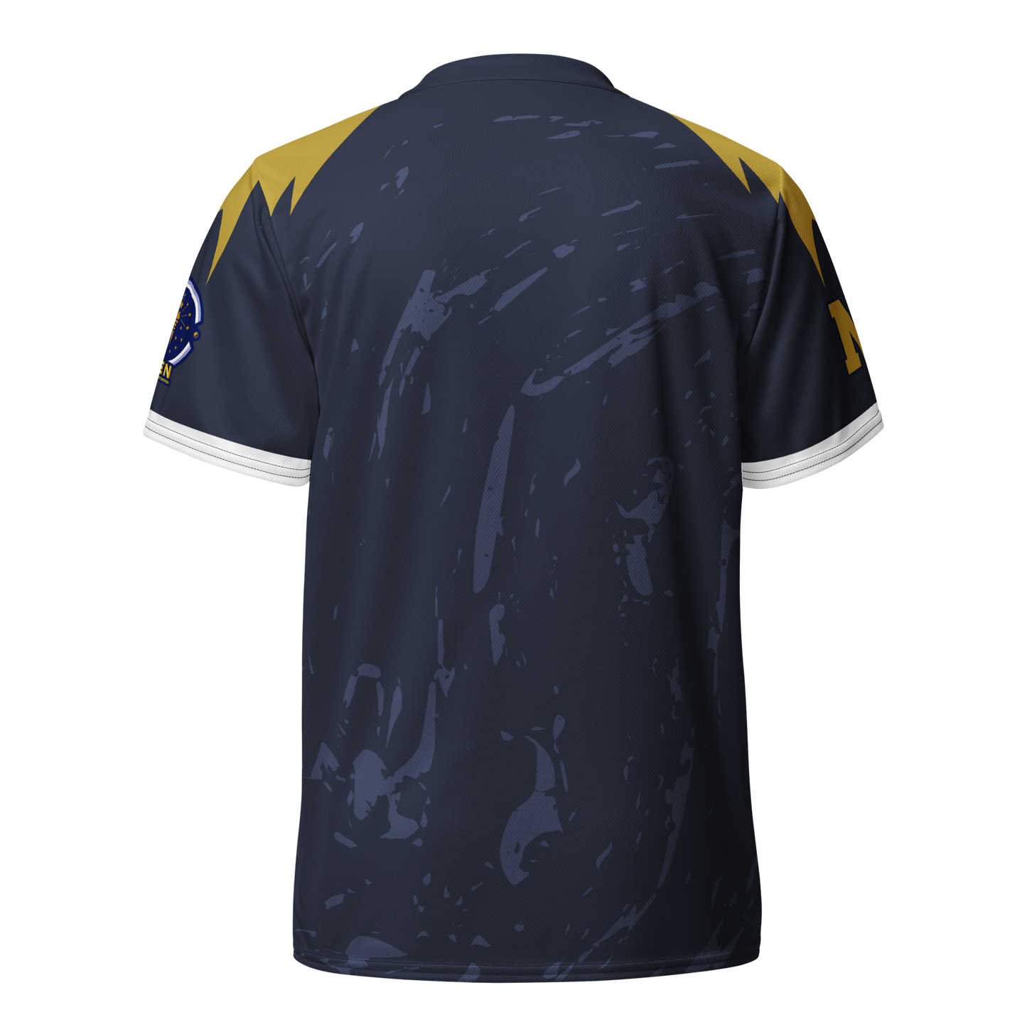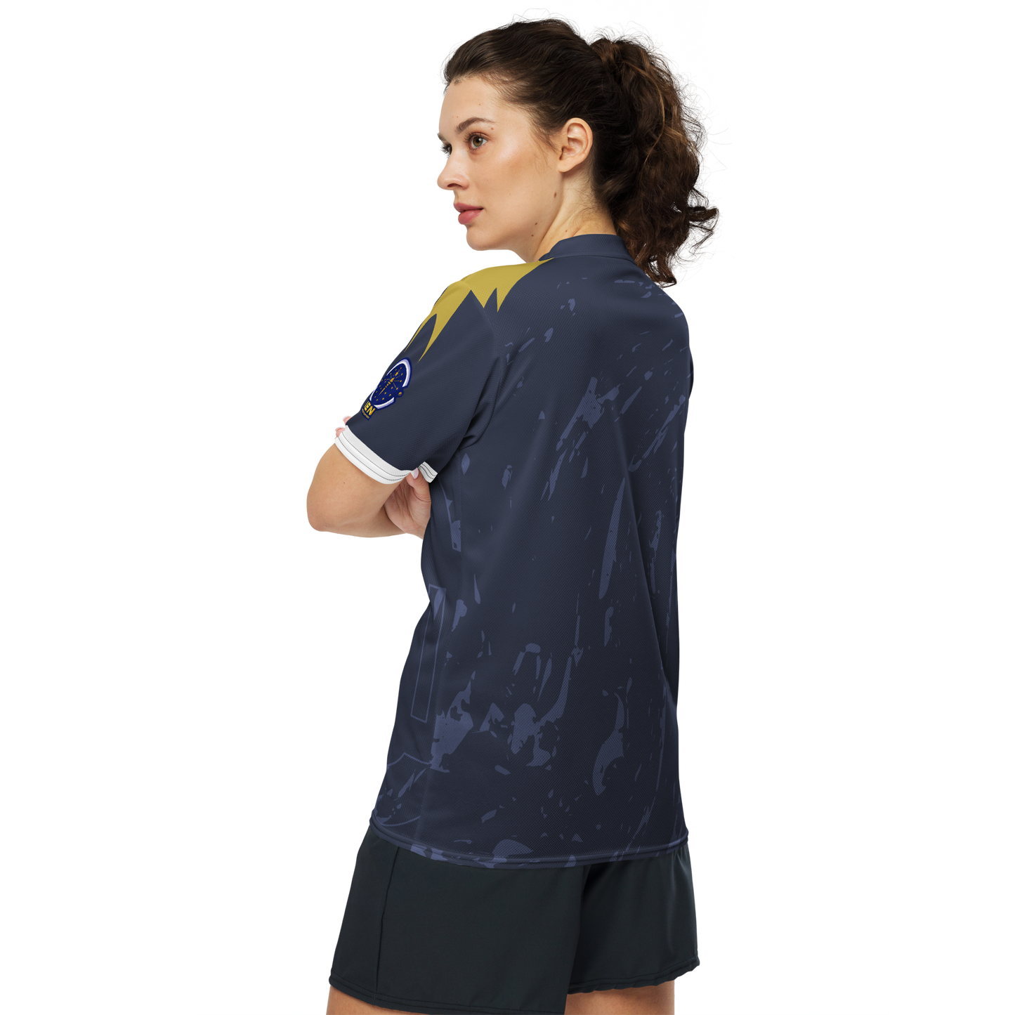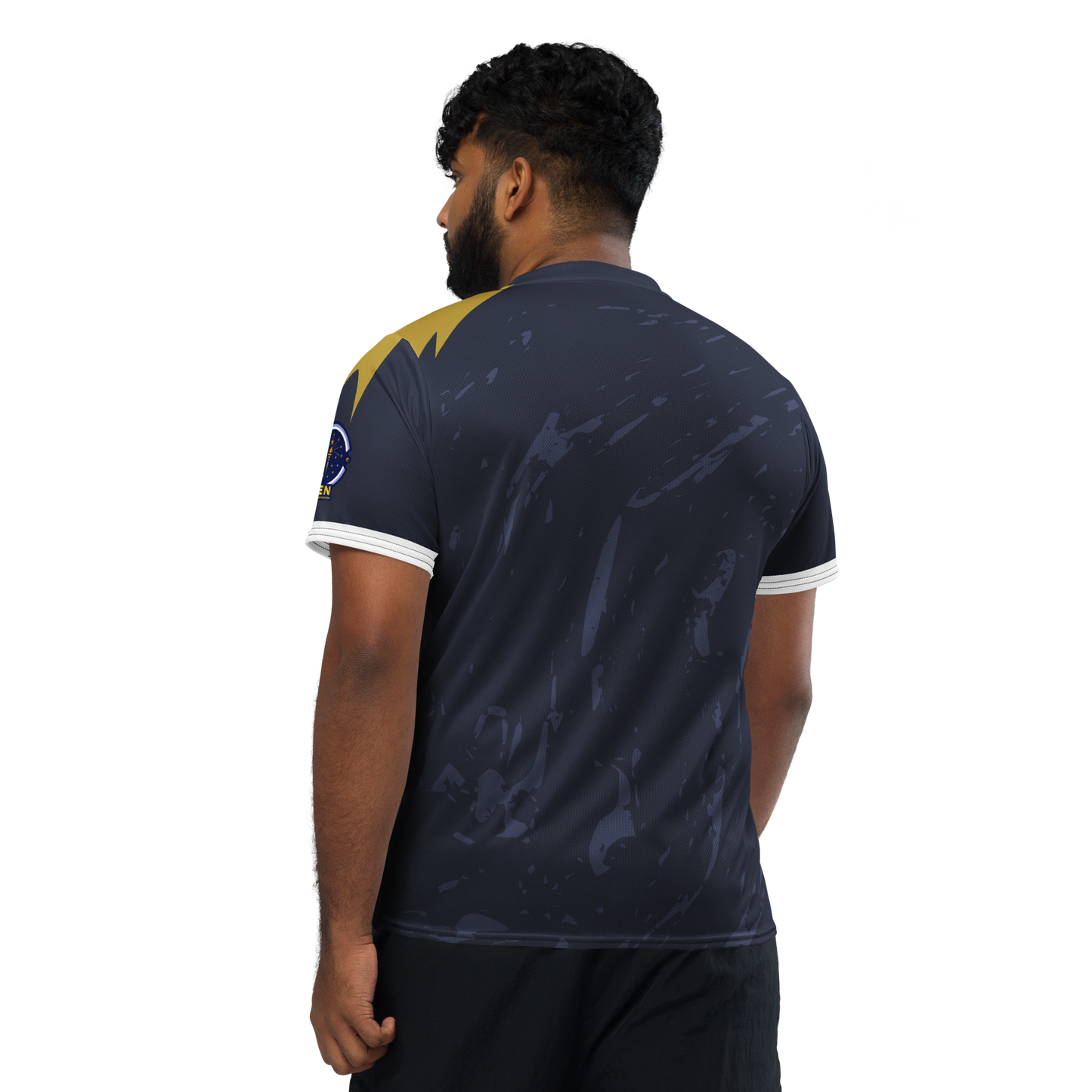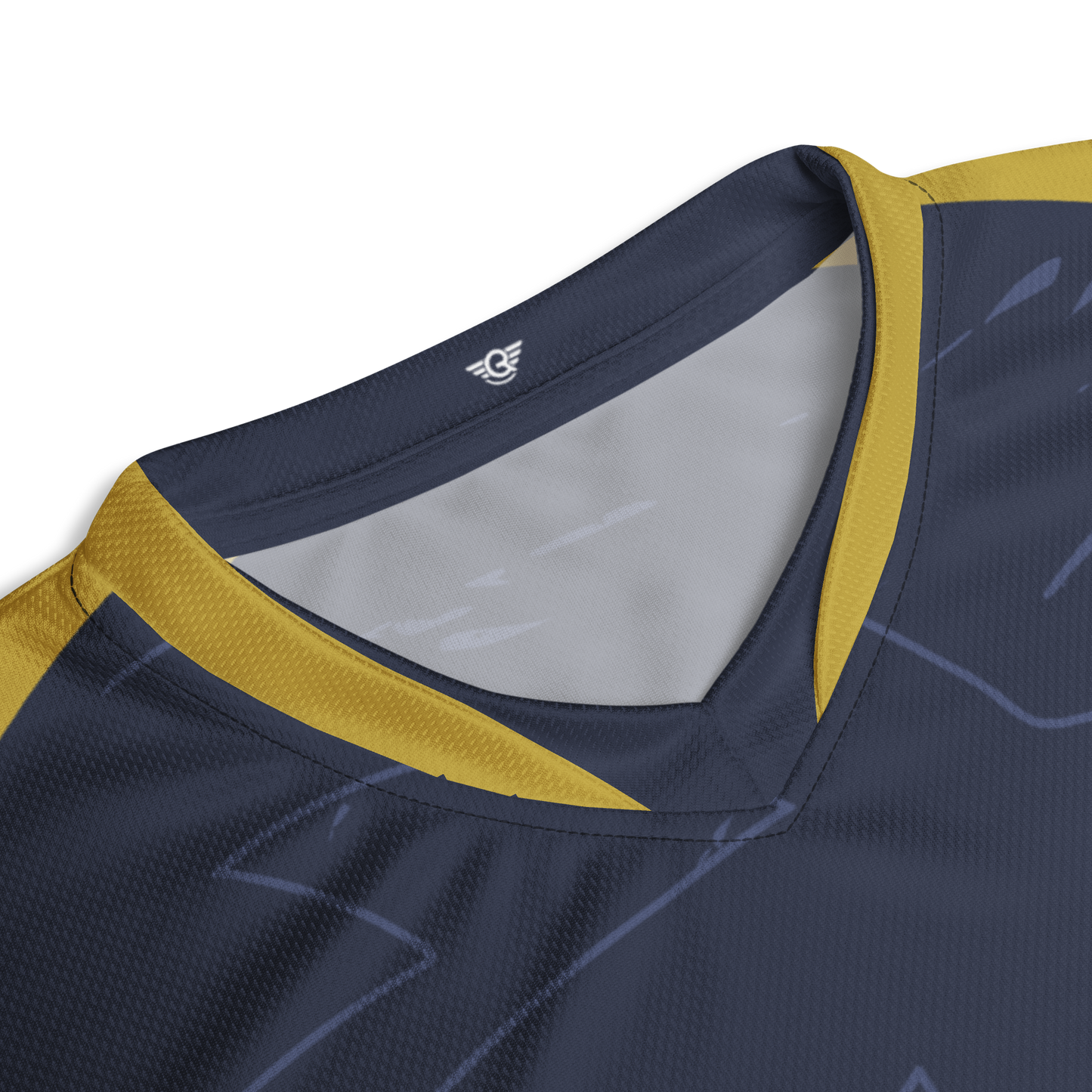 Looking for the perfect sports jersey? We have you covered—made of 100% recycled polyester fabric, this shirt is breathable, moisture-wicking, and has a double-layered v-neck collar that creates a premium look.